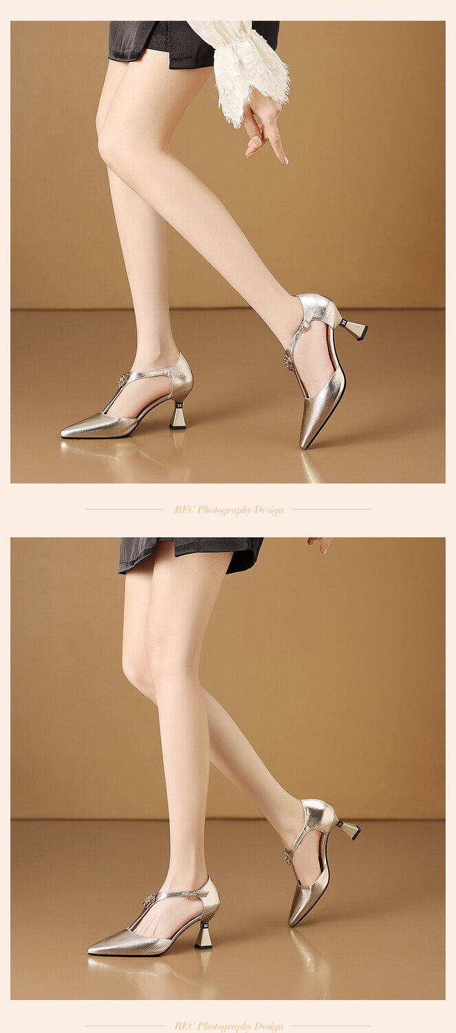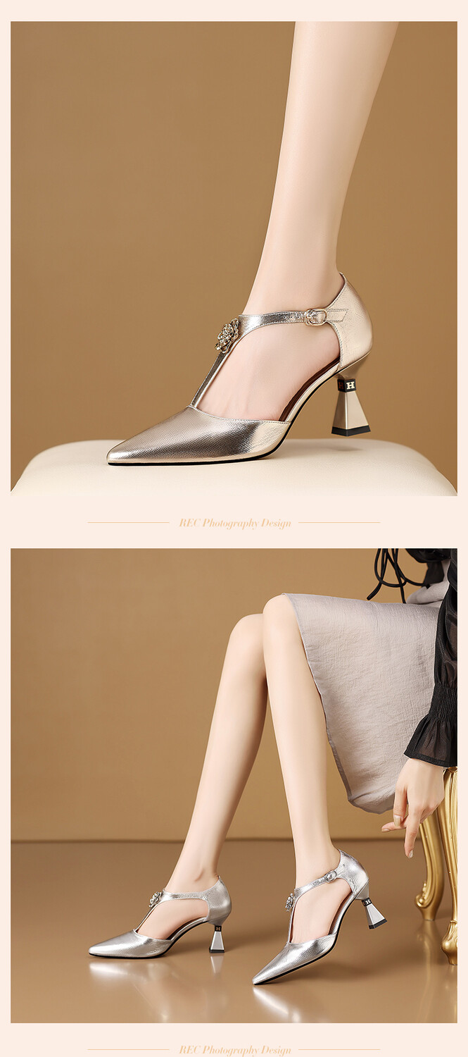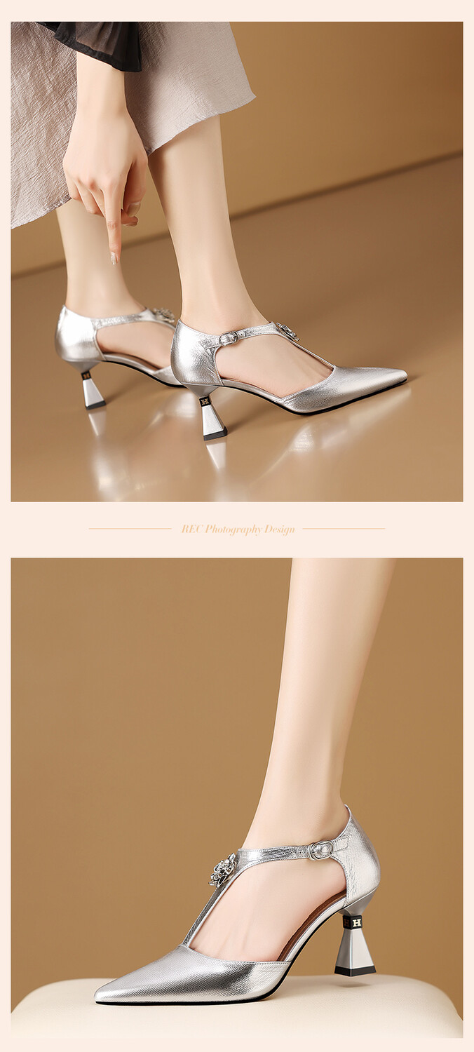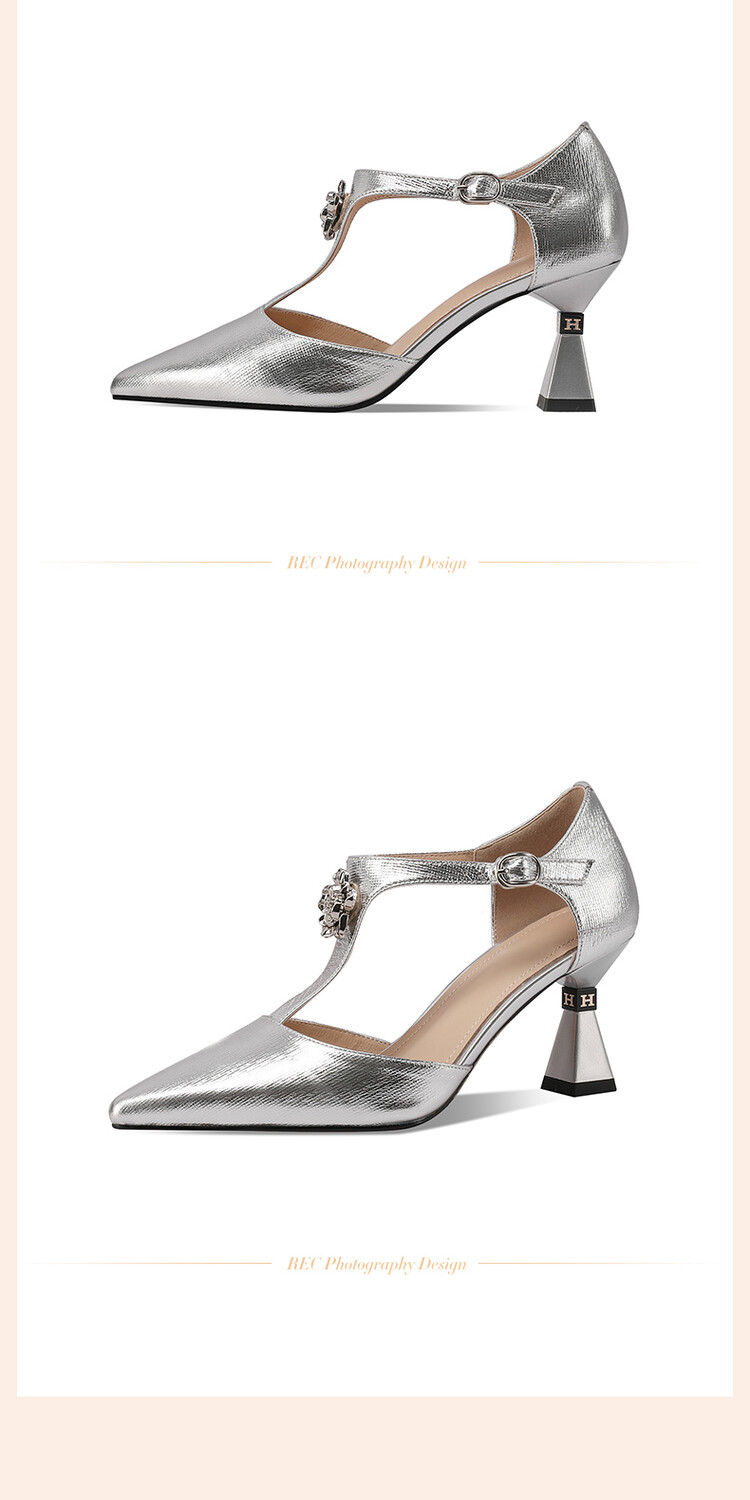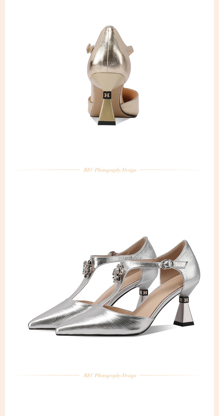 【预售5天】优雅性感尖头花朵中空包头镂空T字扣配裙子裤子百搭时尚单鞋HY&H3399