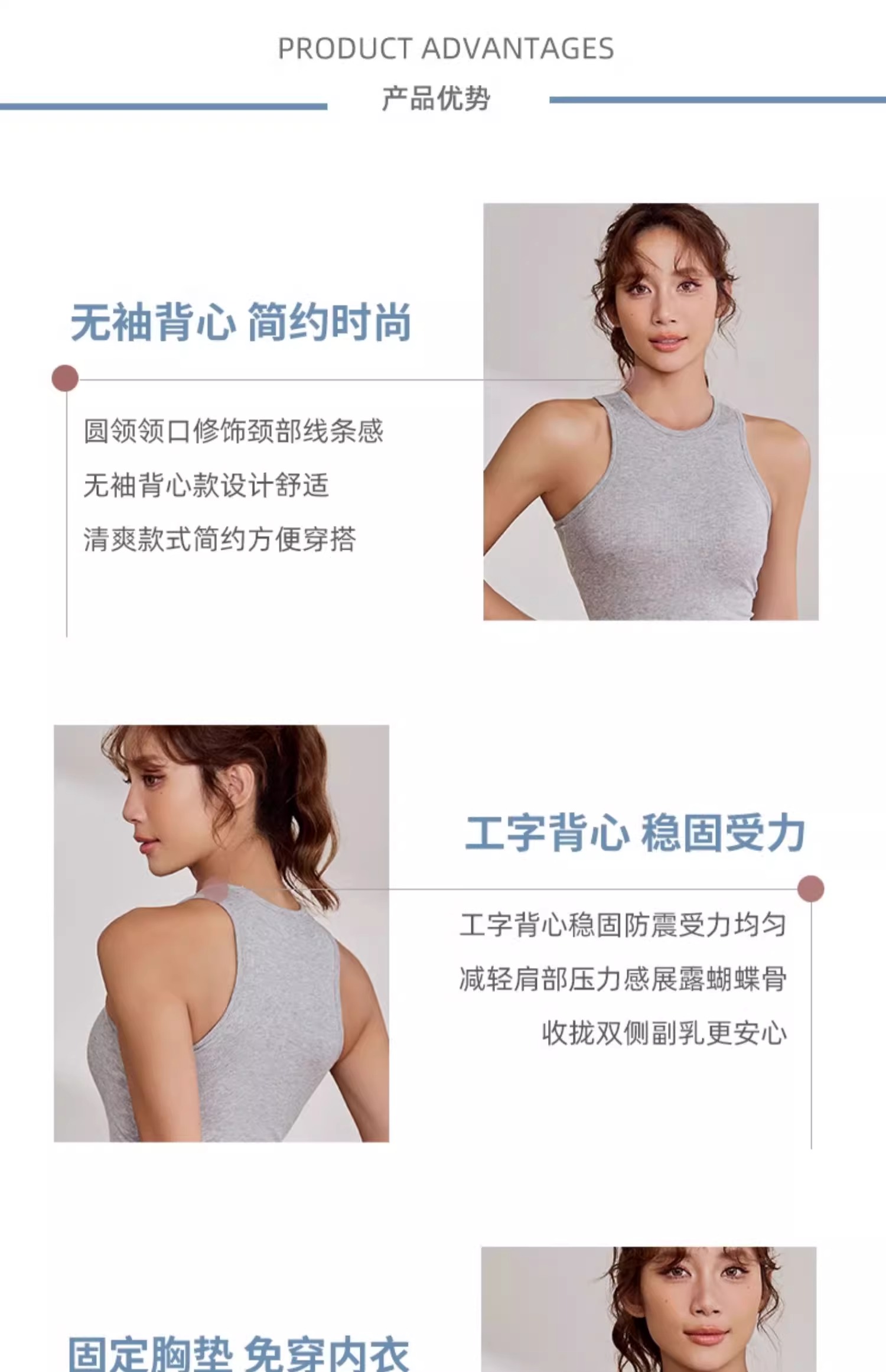 【3~5天发货】跃牌【美度空间】系列 莫代尔人棉罗纹可拆罩杯背心文胸ADWX42013