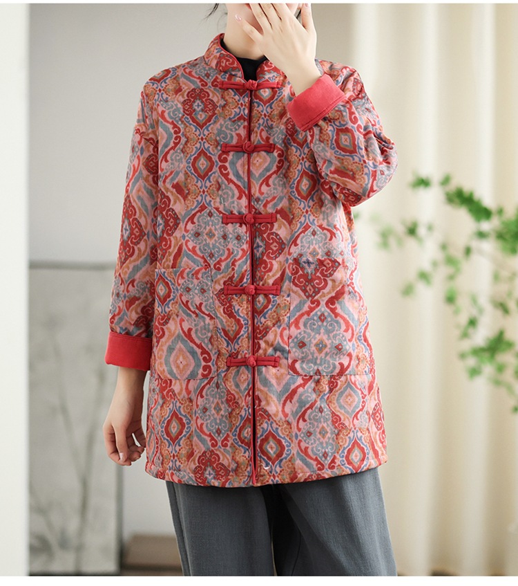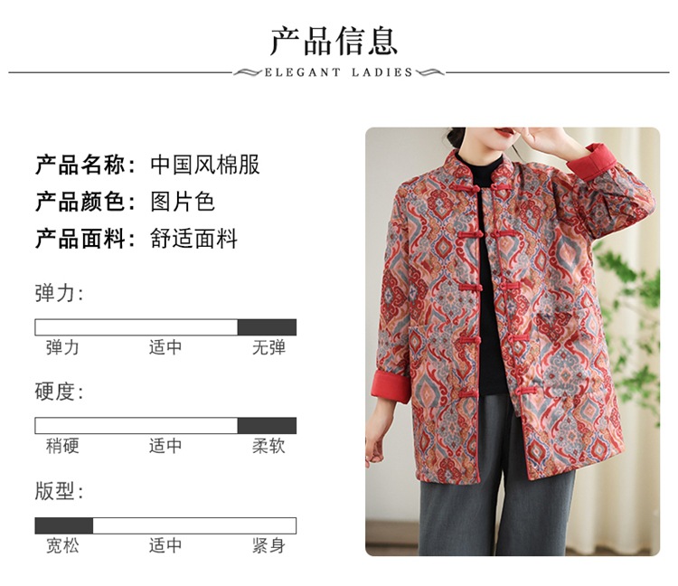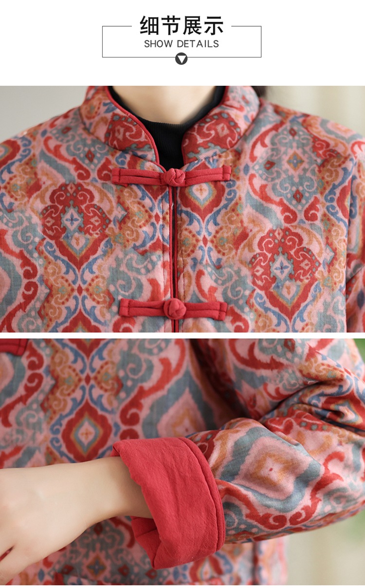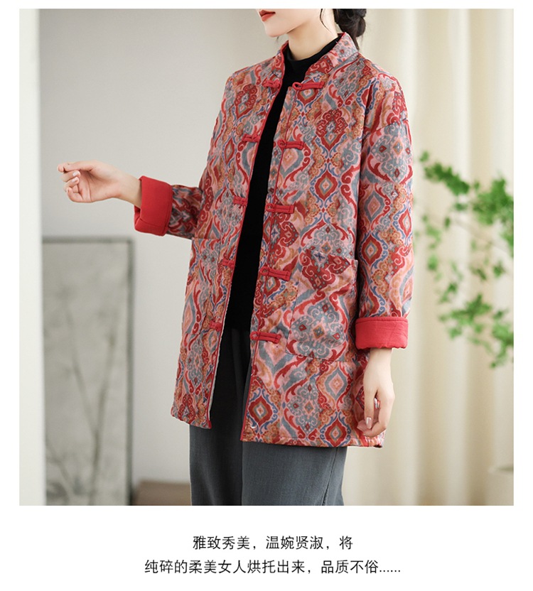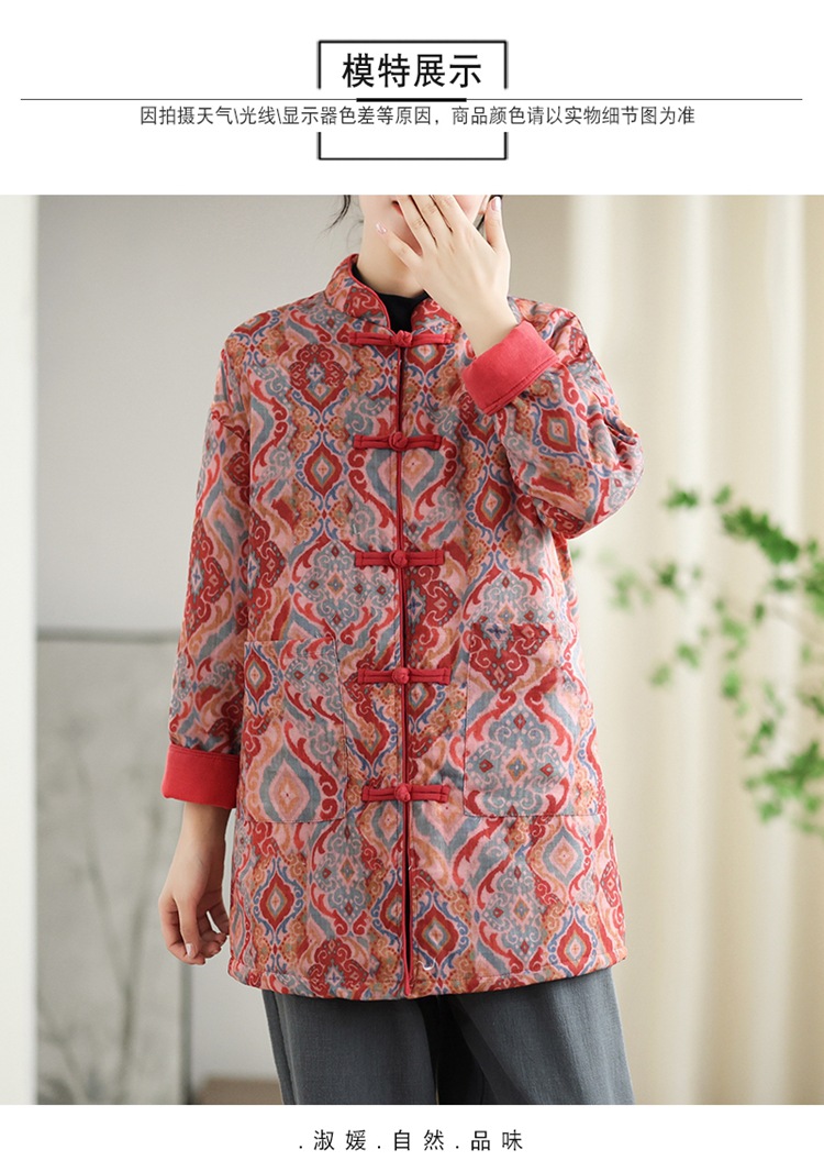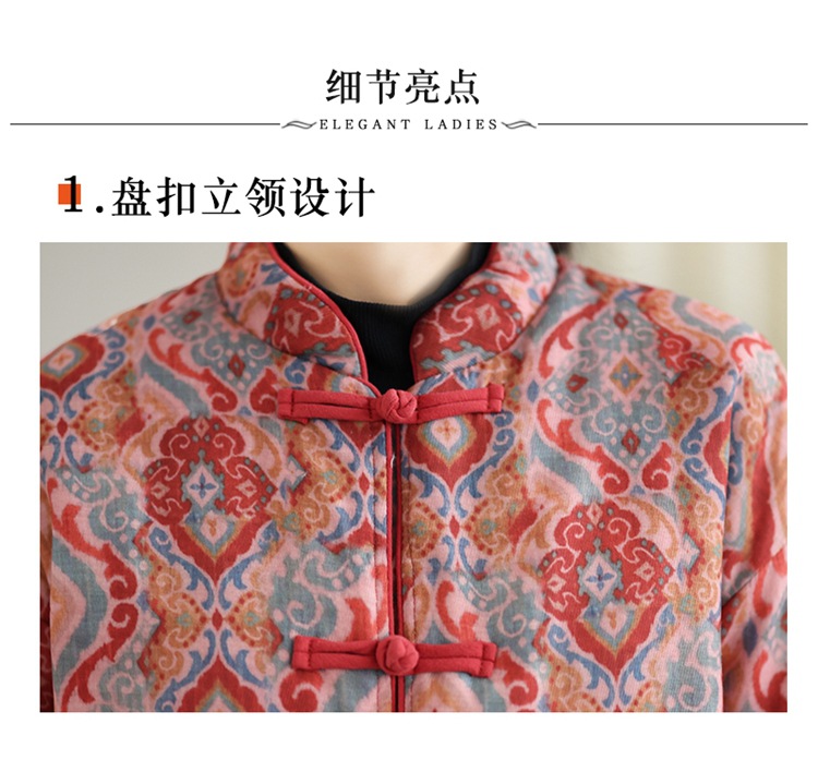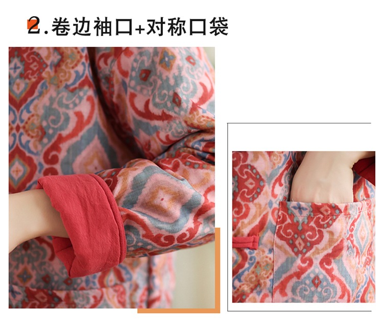 雀说冬装新款棉麻女装复古民族风中长款棉衣中式盘扣宽松大码棉袄ALW9655