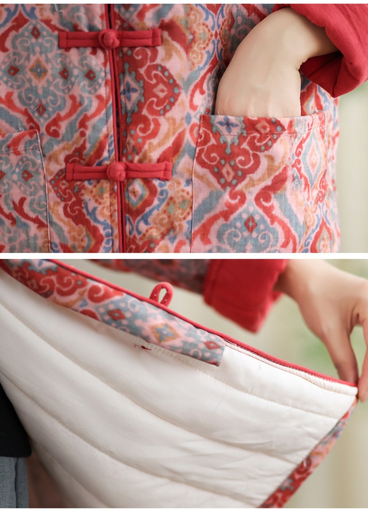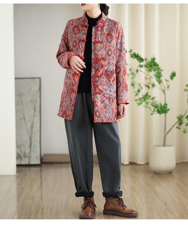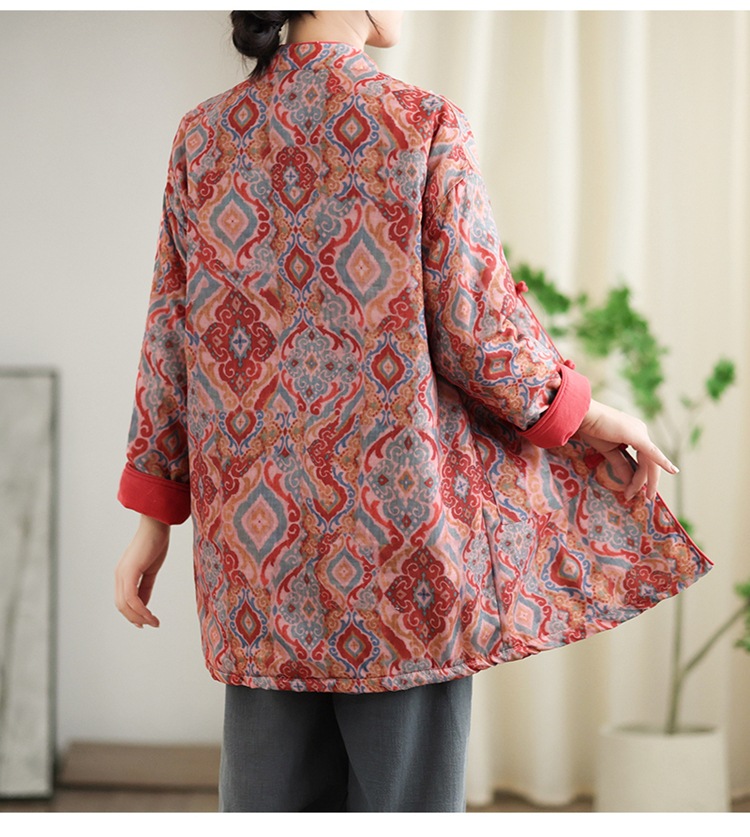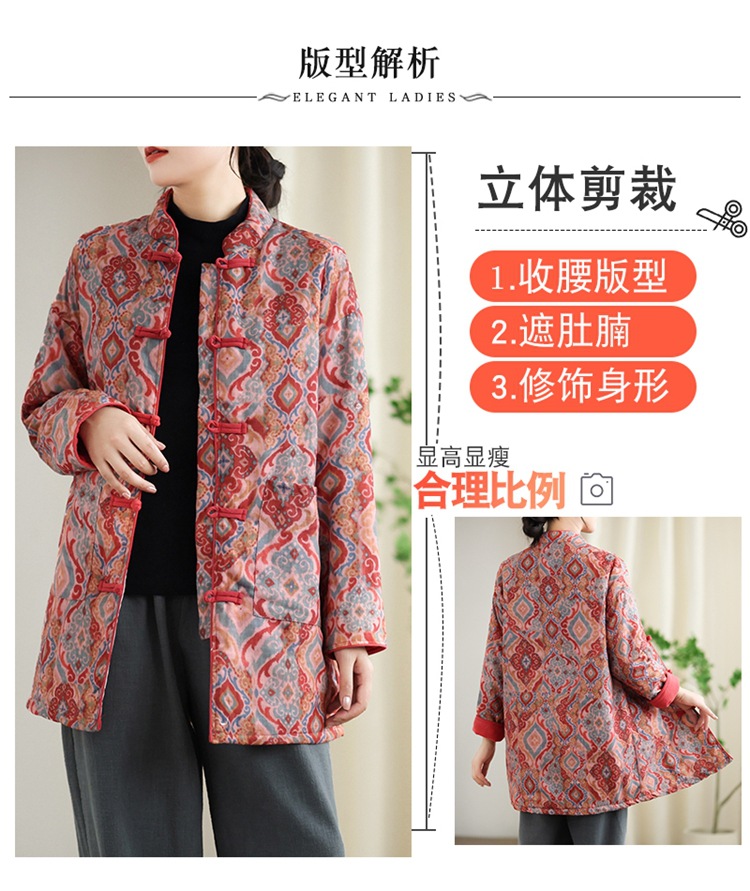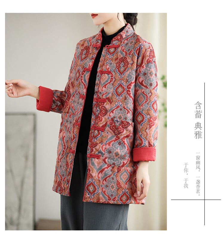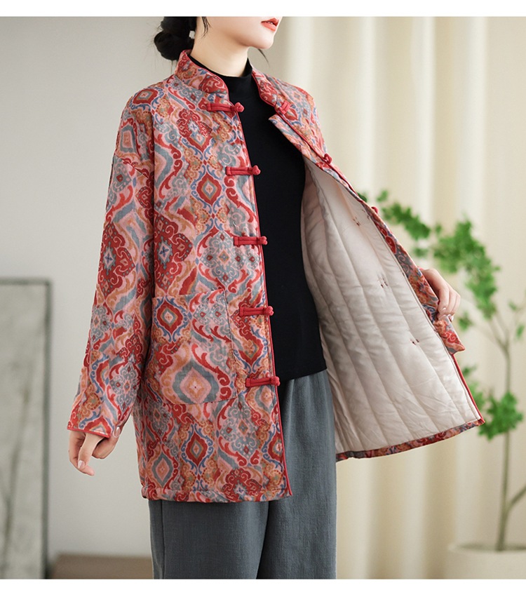 雀说冬装新款棉麻女装复古民族风中长款棉衣中式盘扣宽松大码棉袄ALW9655