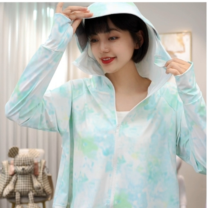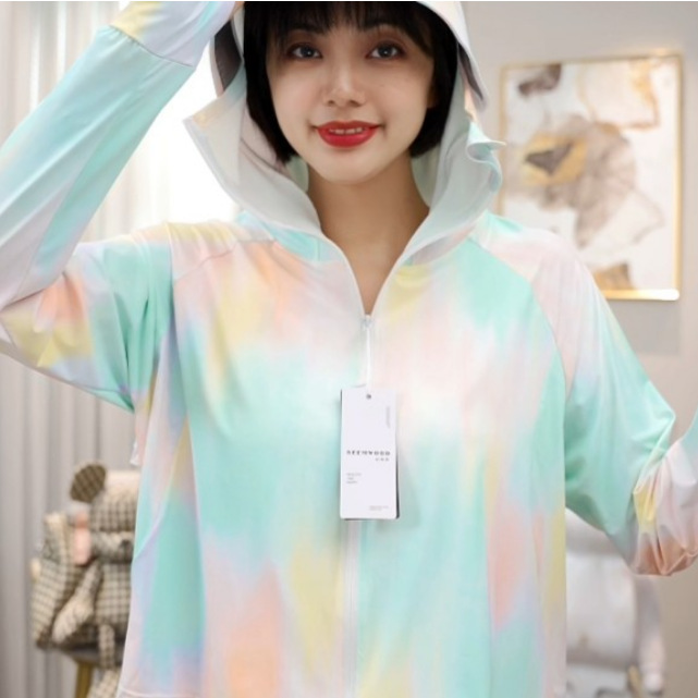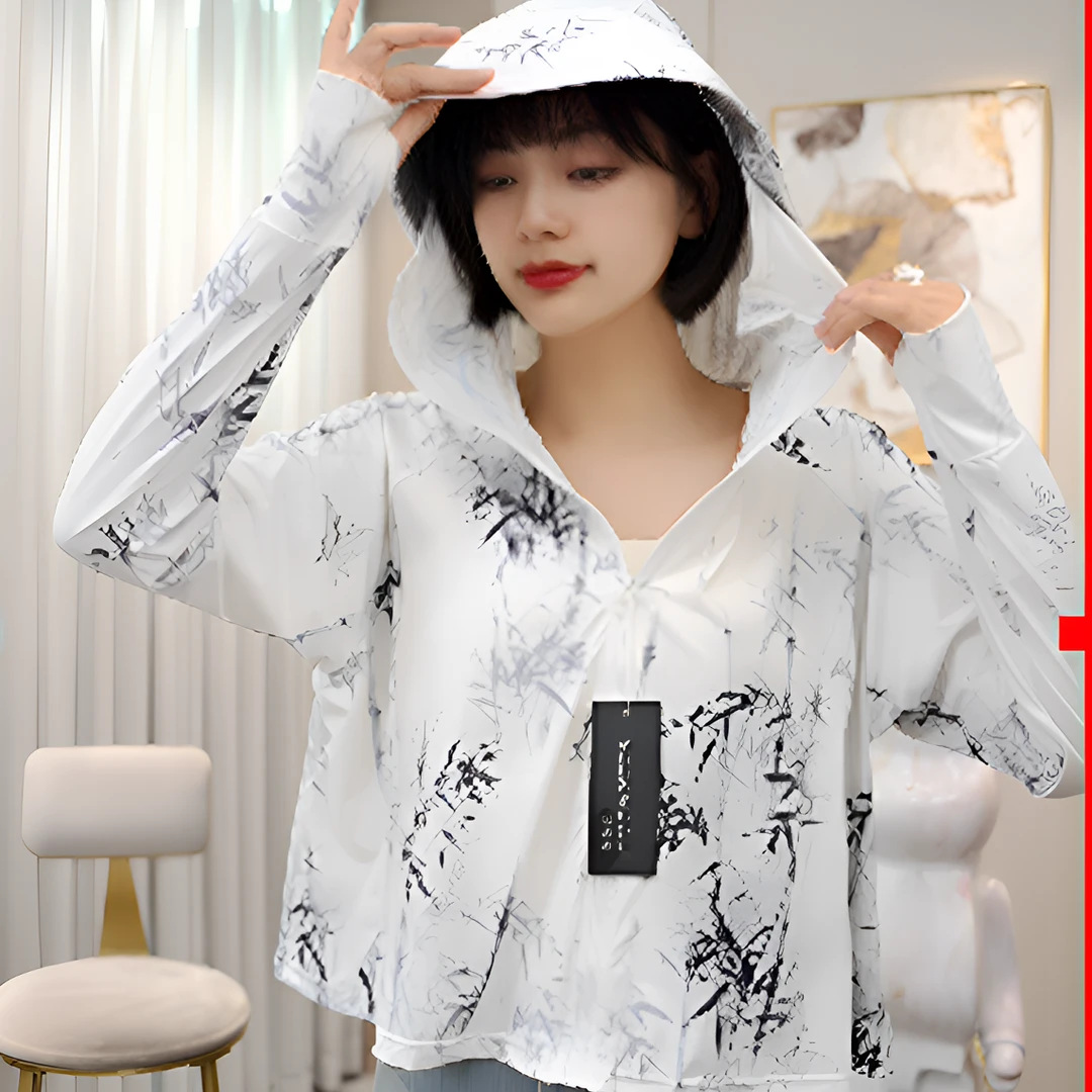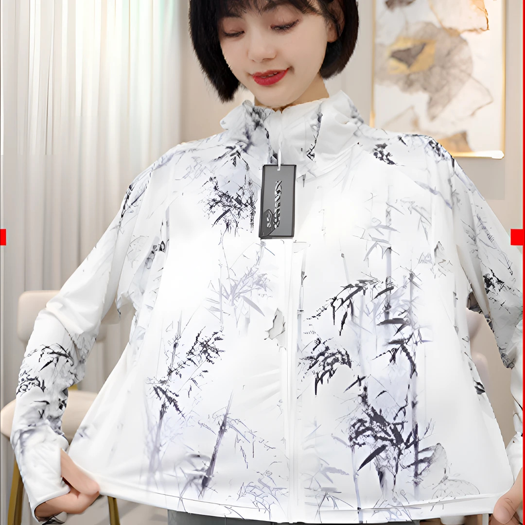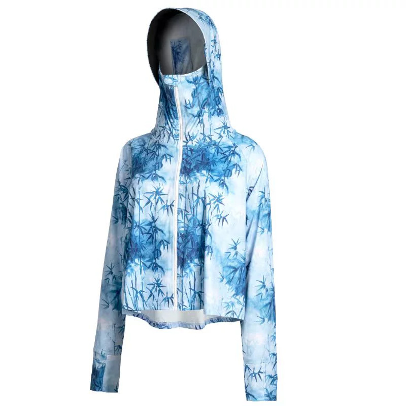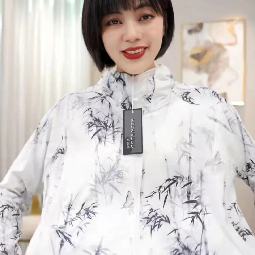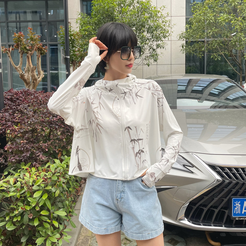 雀说夏季国风墨竹短款印花防晒衣冰丝连帽透气防晒服户外运动防晒外套ALF015