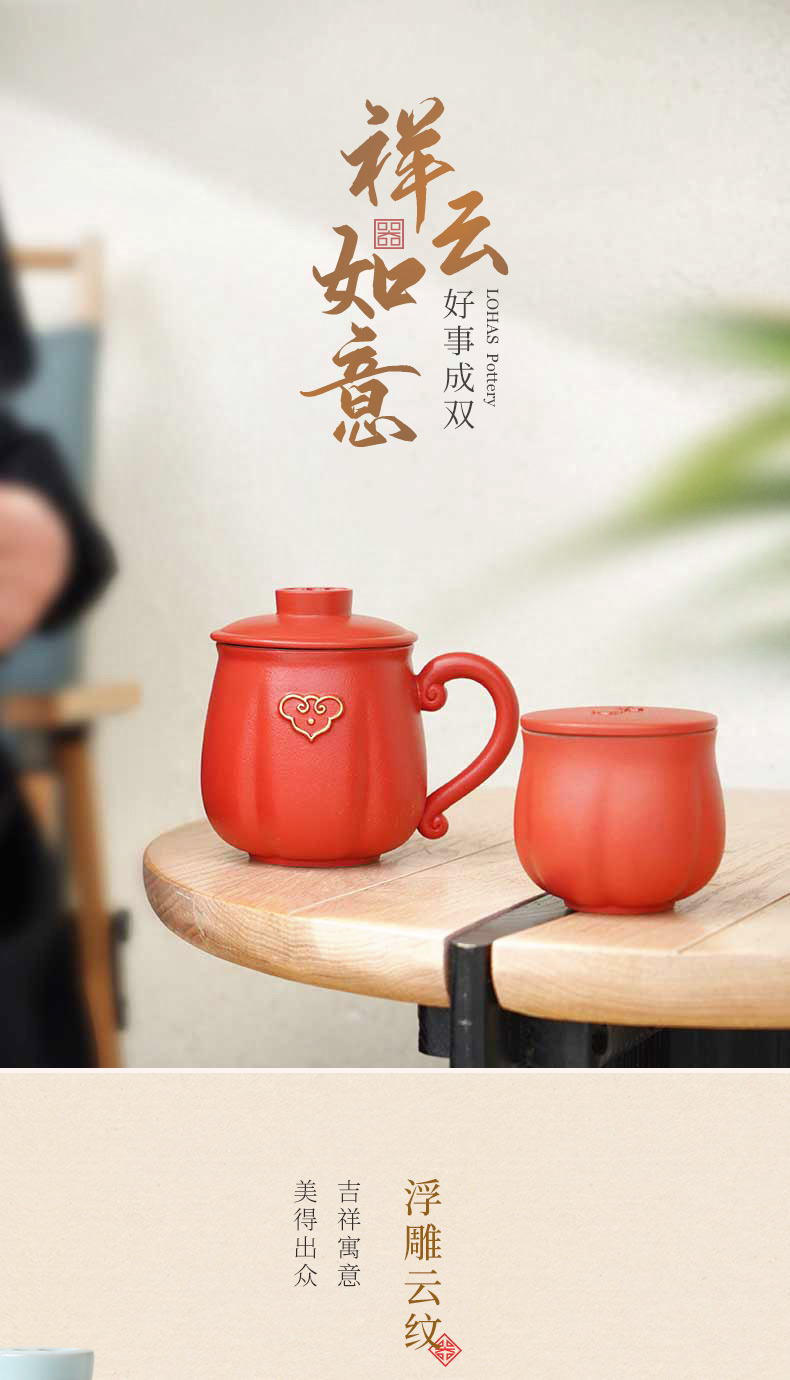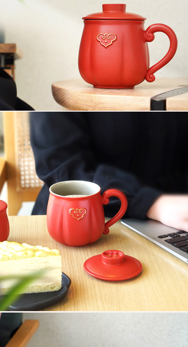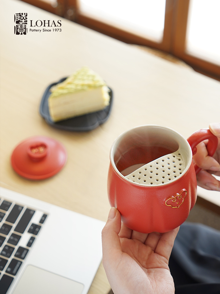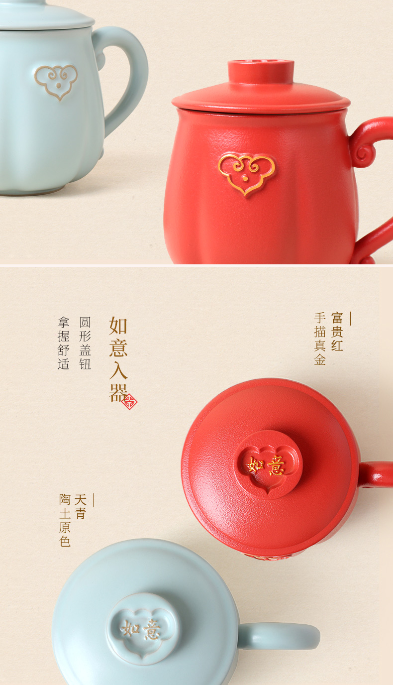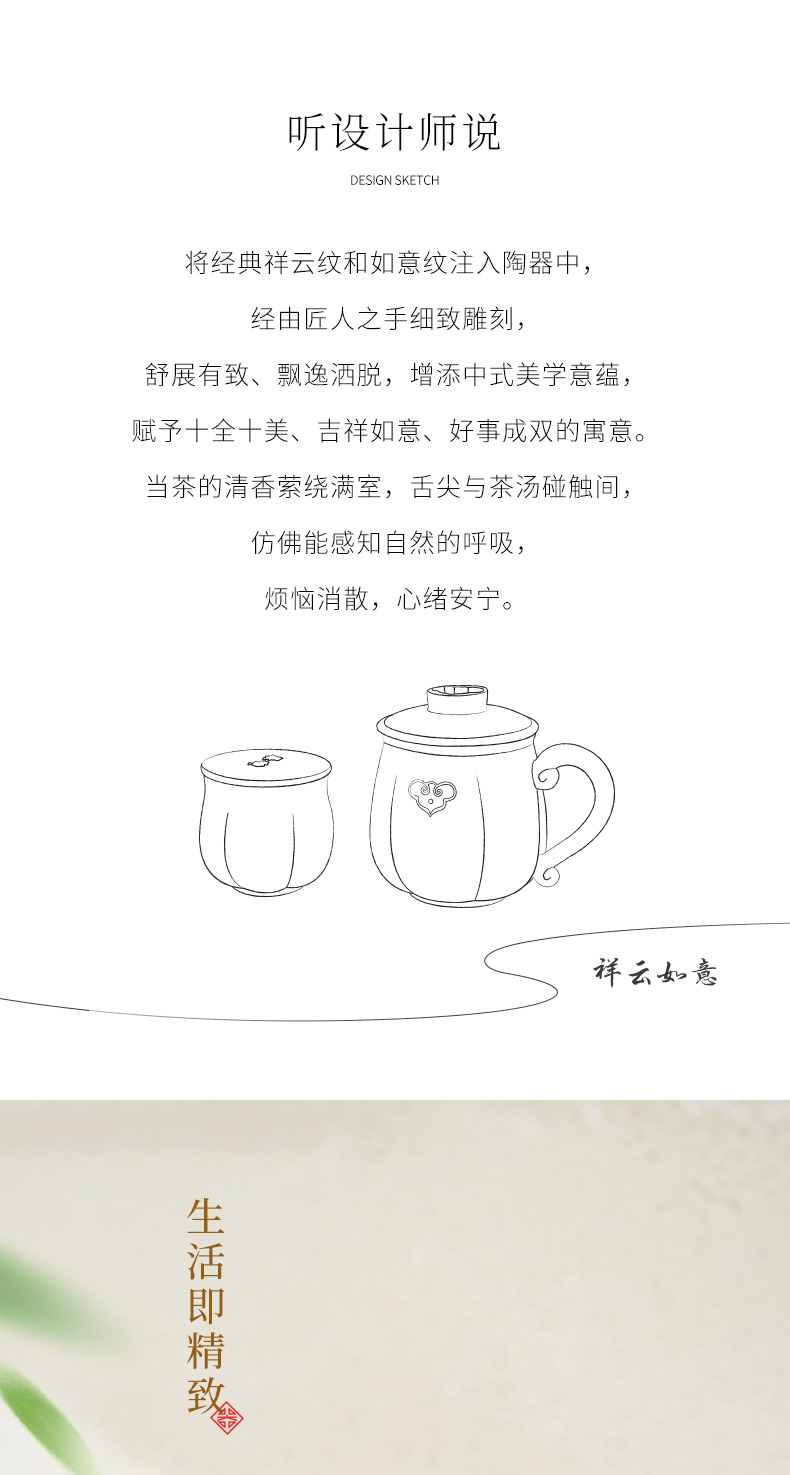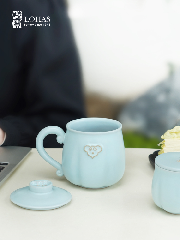 【彼达思】陆宝 祥云如意盖杯 陶瓷商务自带带茶隔办公家用