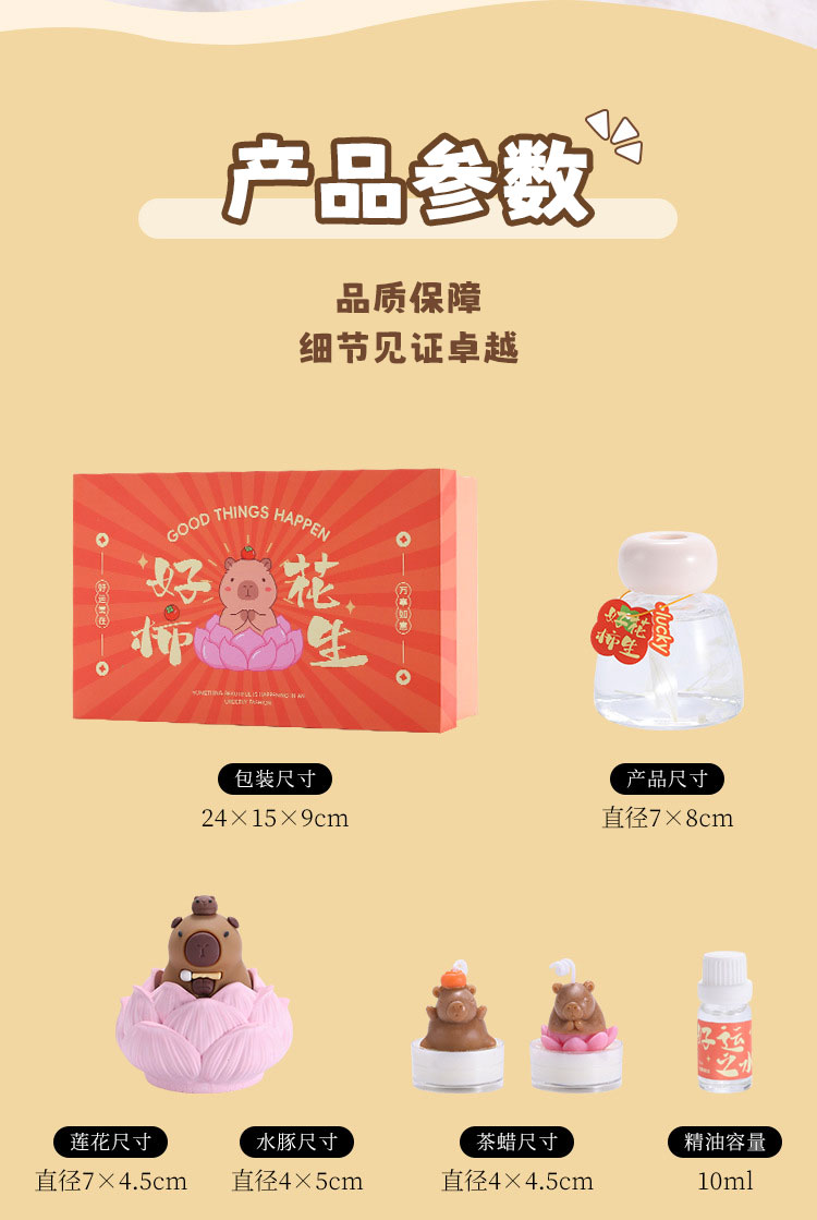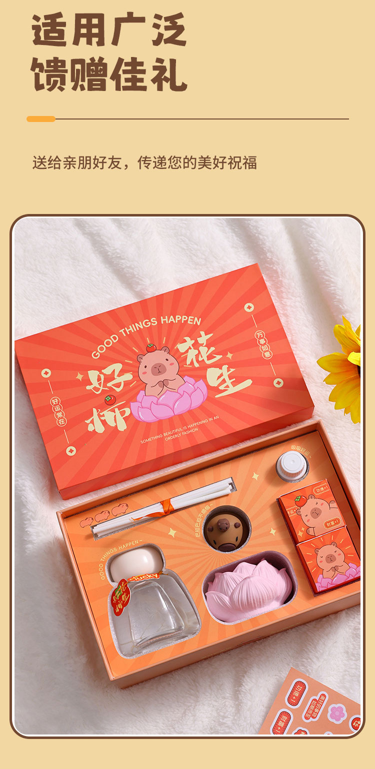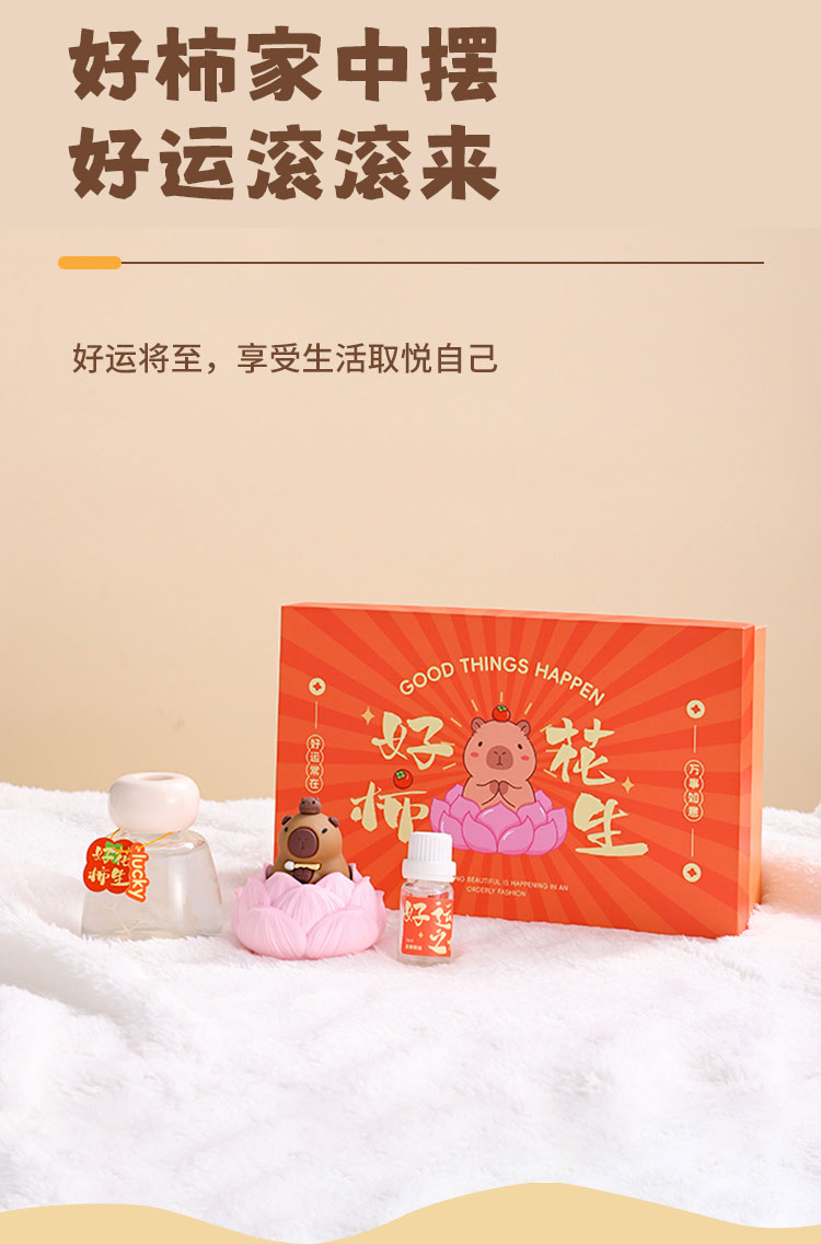 新年好柿花生卡皮巴拉水豚可爱卡通香薰蜡烛摆件礼盒送女朋友节日礼物