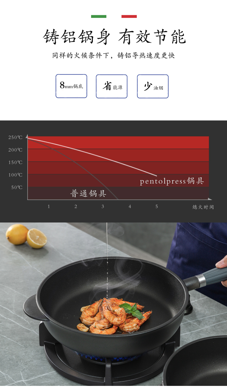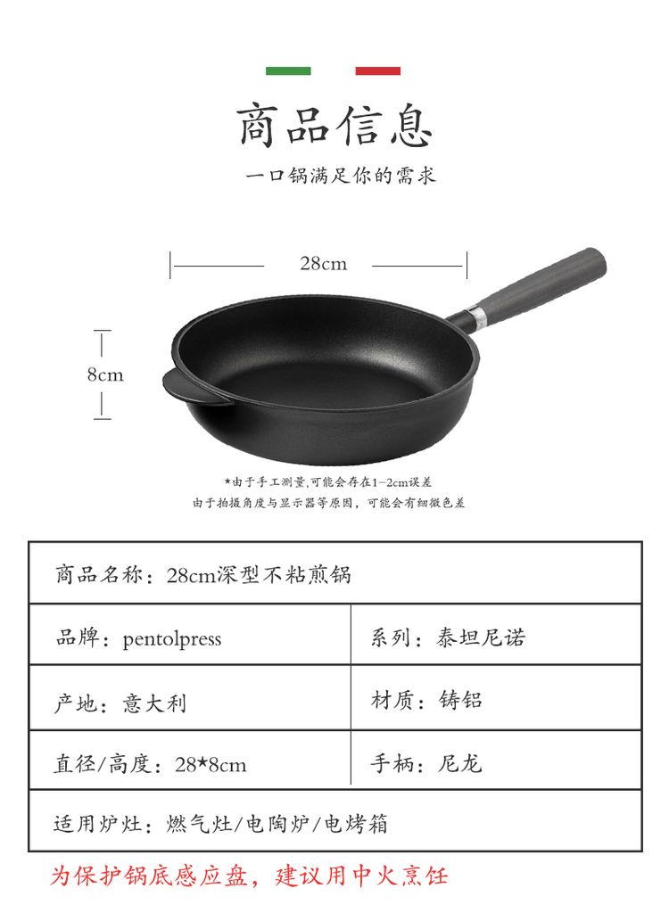 【PENTOLPRESS】意大利原产泰坦尼诺系列煎炒锅24cm/28cm(燃气款)不含锅盖