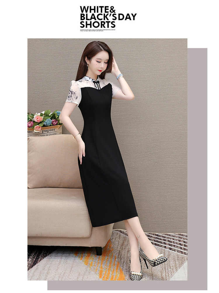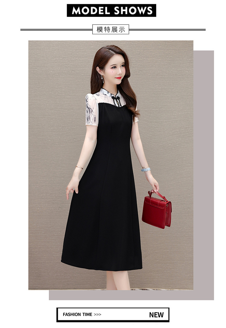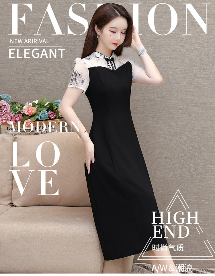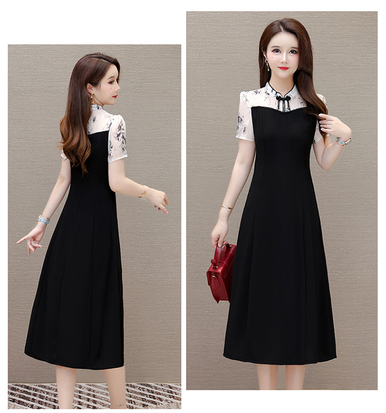 新中式国风连衣裙,拼结中长款改良旗袍裙QYM-LRX-SL28136-Y