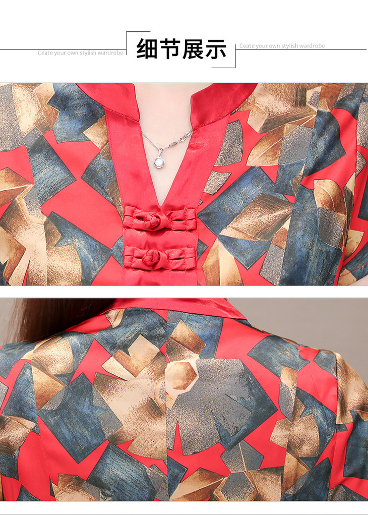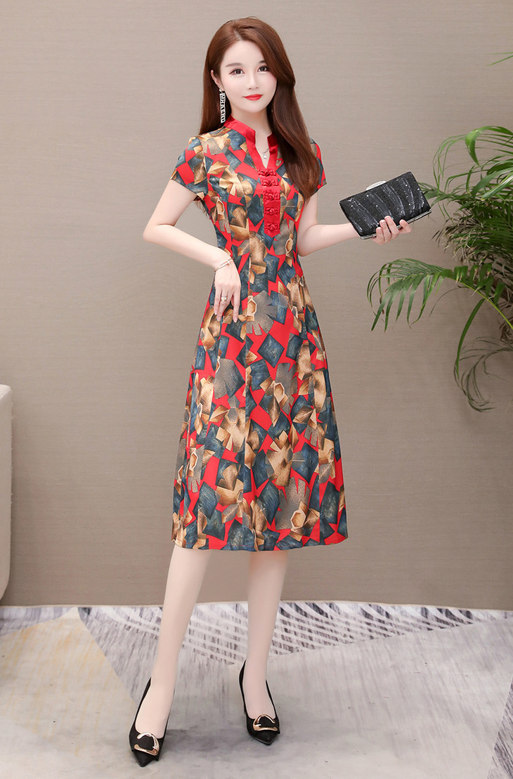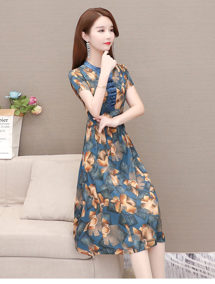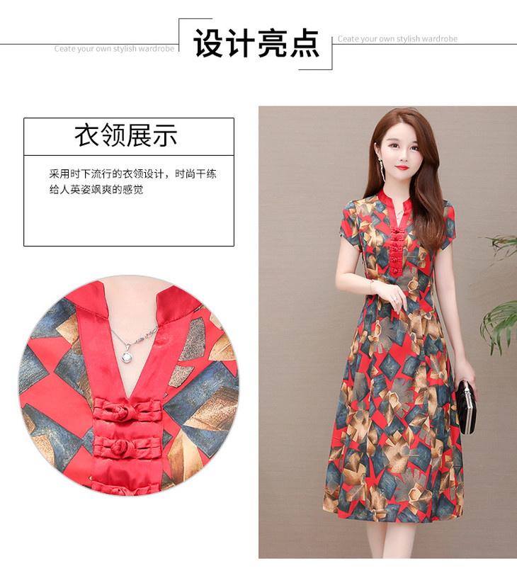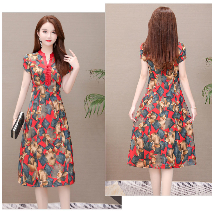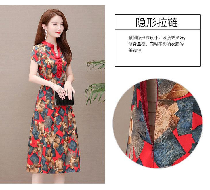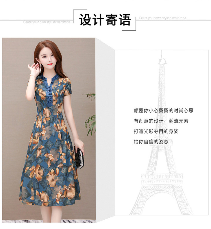 YW-JMYS992修身舒适,短袖气质改良版印花连衣裙