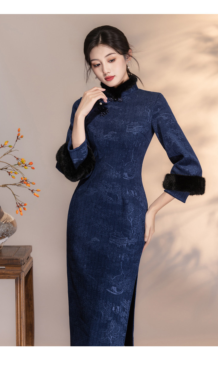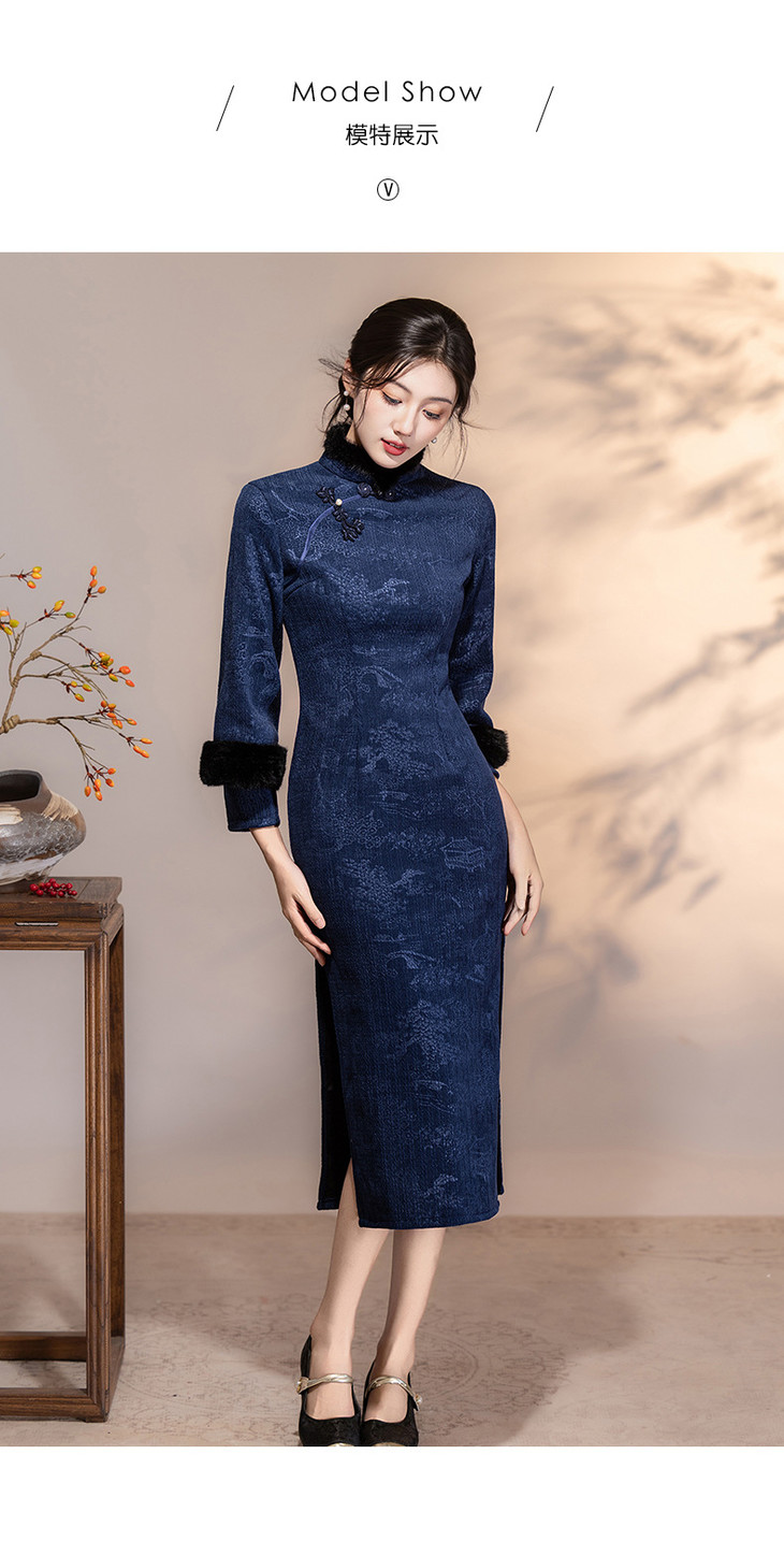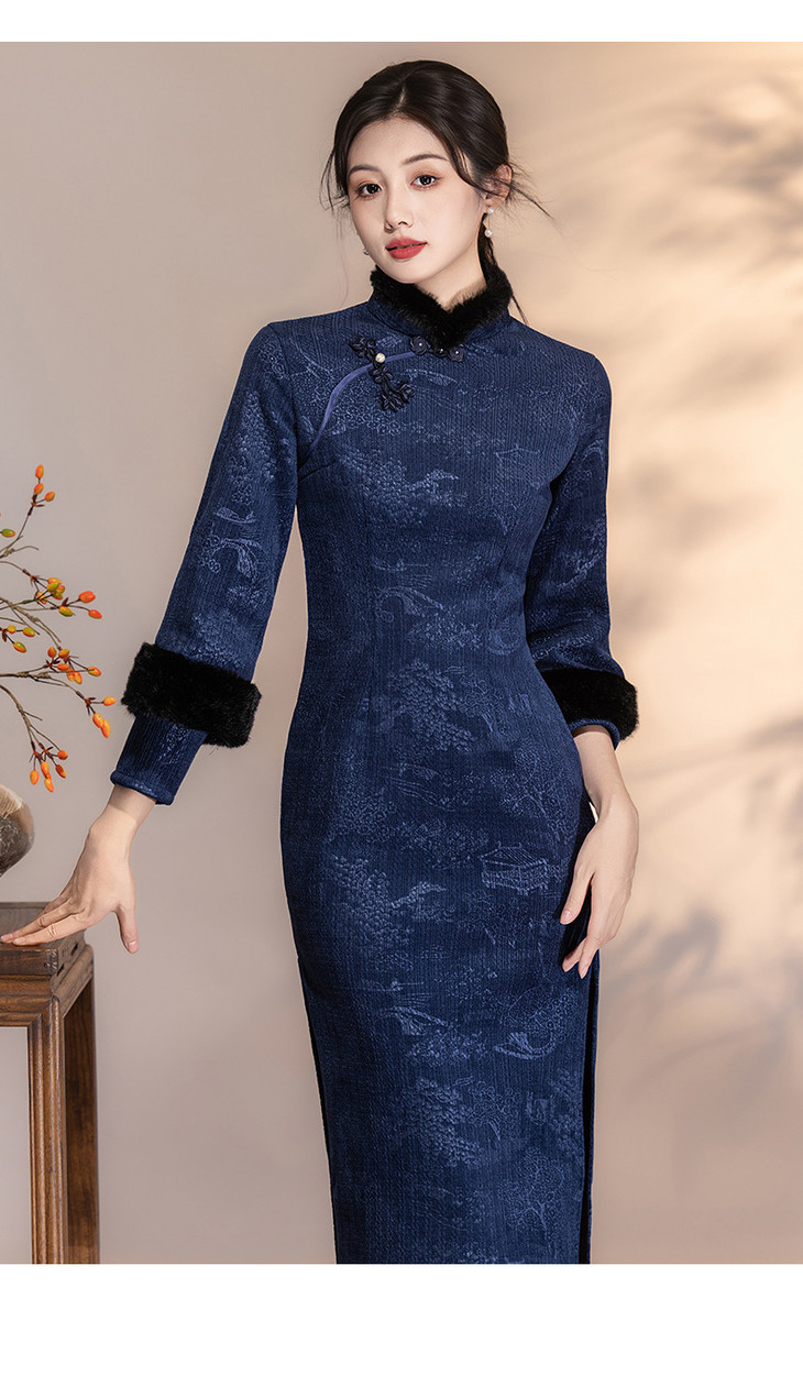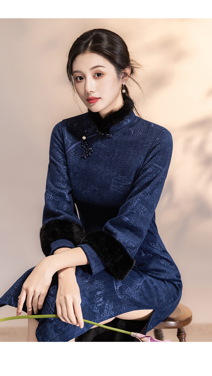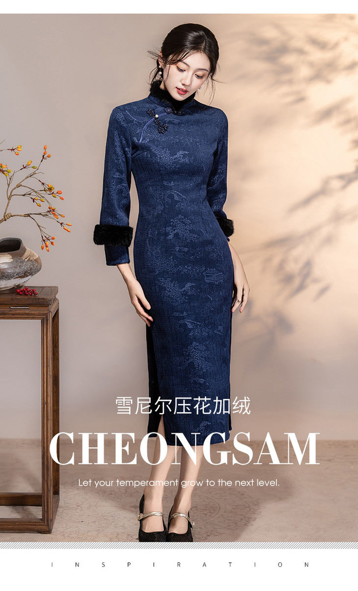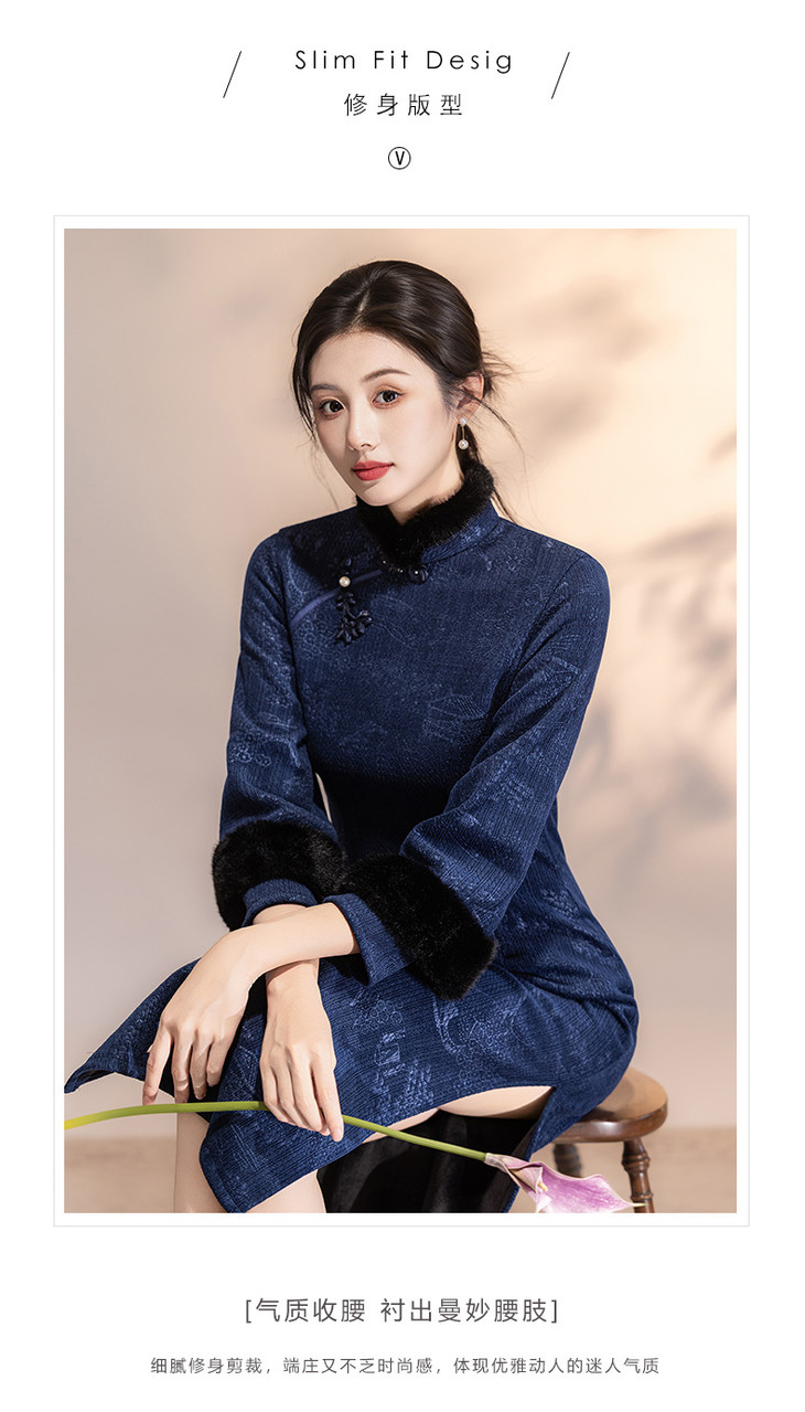 深蓝色加绒加厚,新中式连衣裙日常可穿LSB4166