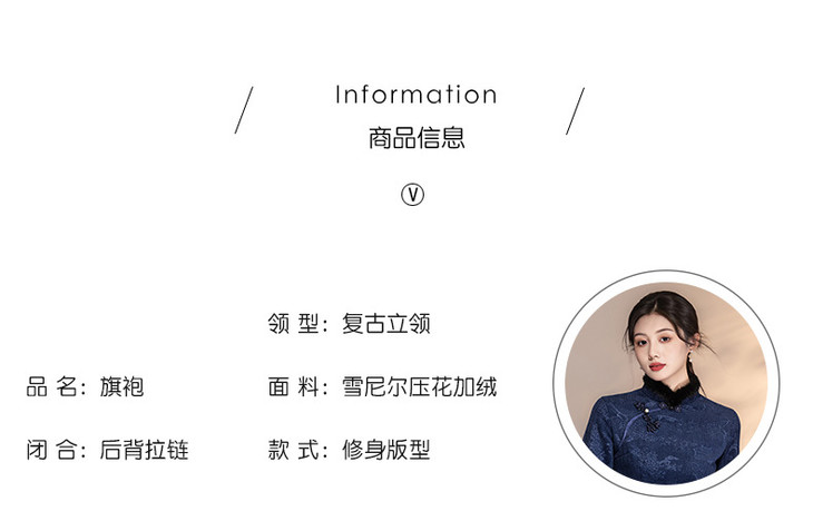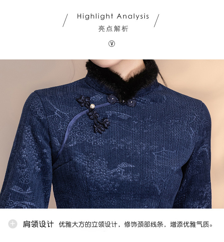 深蓝色加绒加厚,新中式连衣裙日常可穿LSB4166 商品图2