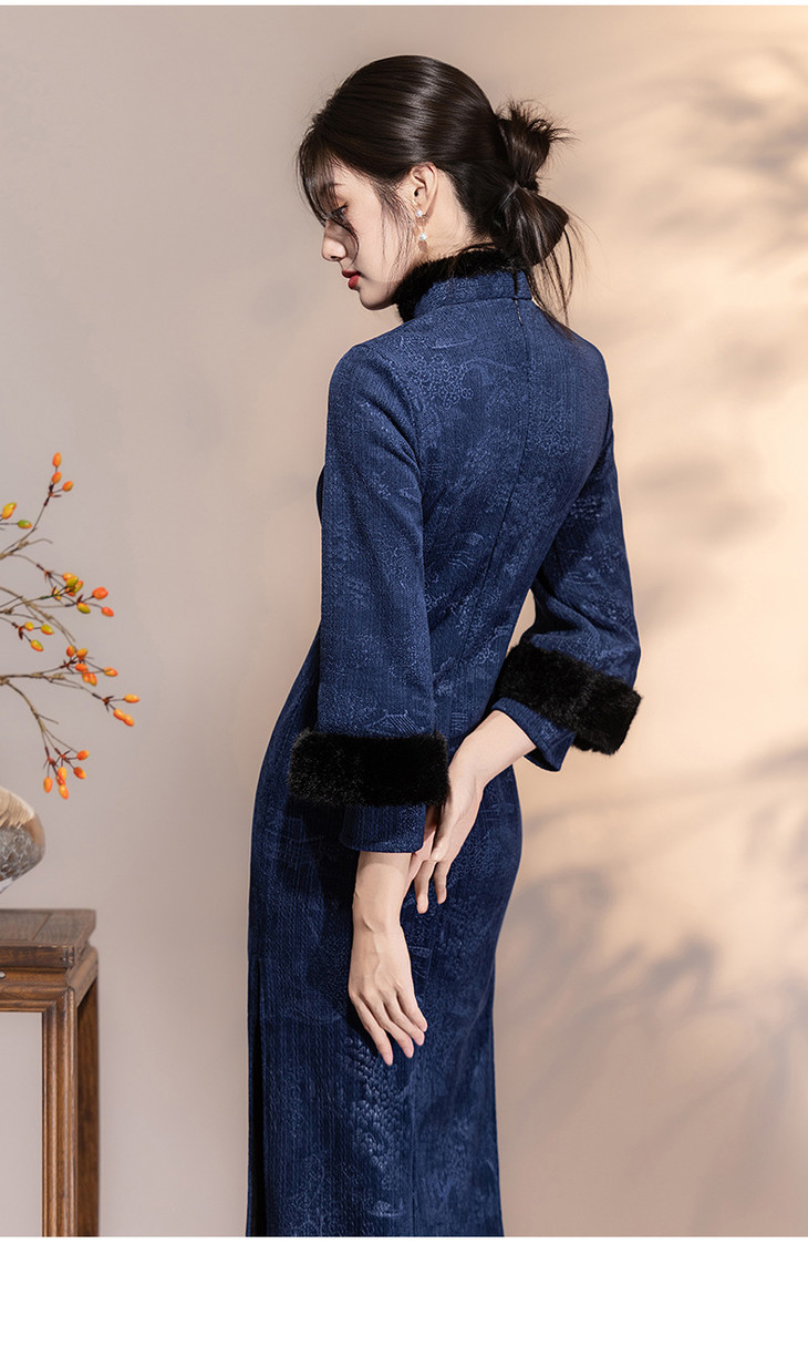 深蓝色加绒加厚,新中式连衣裙日常可穿LSB4166 商品图3