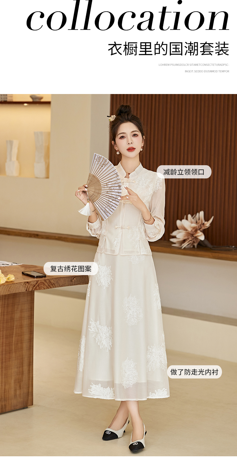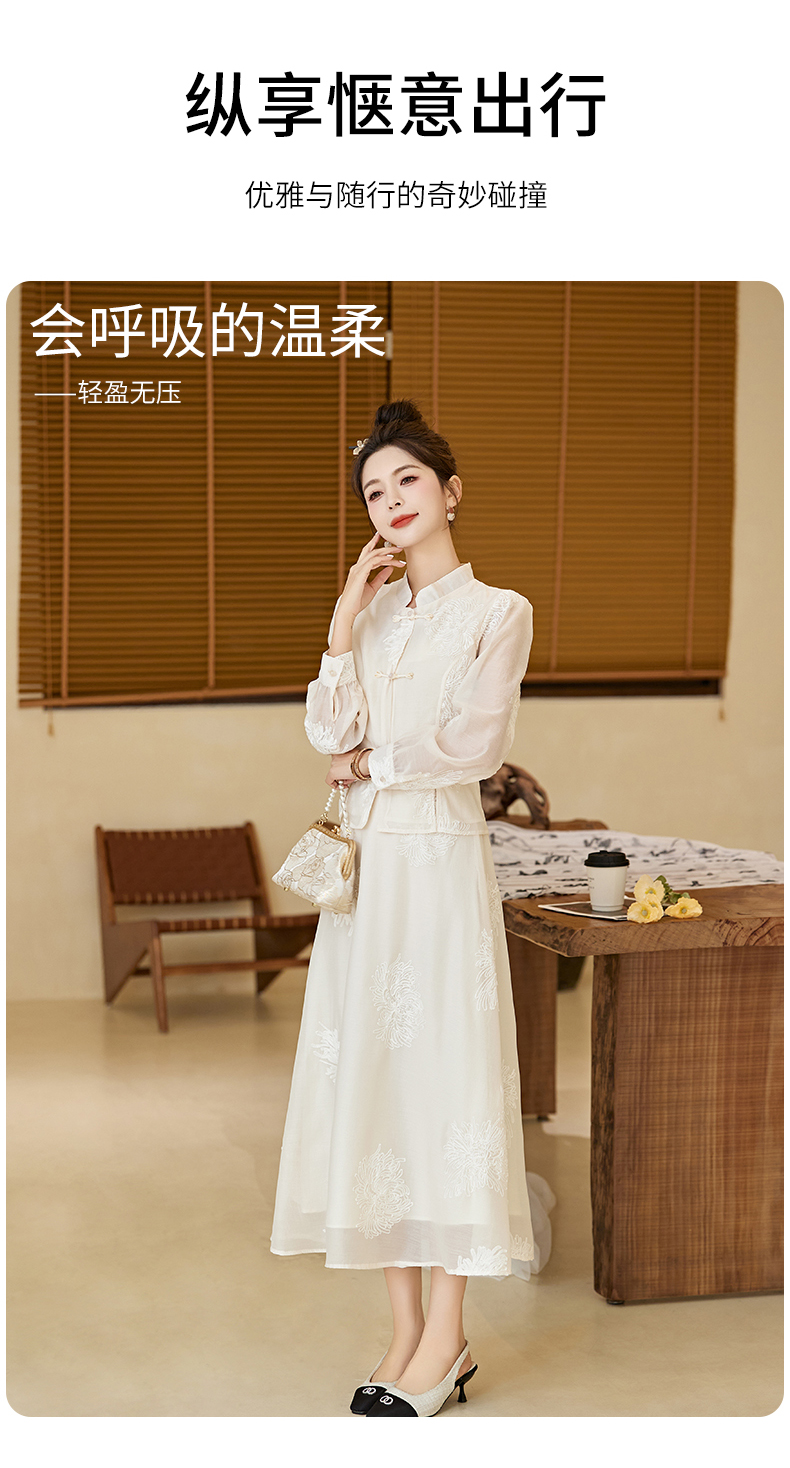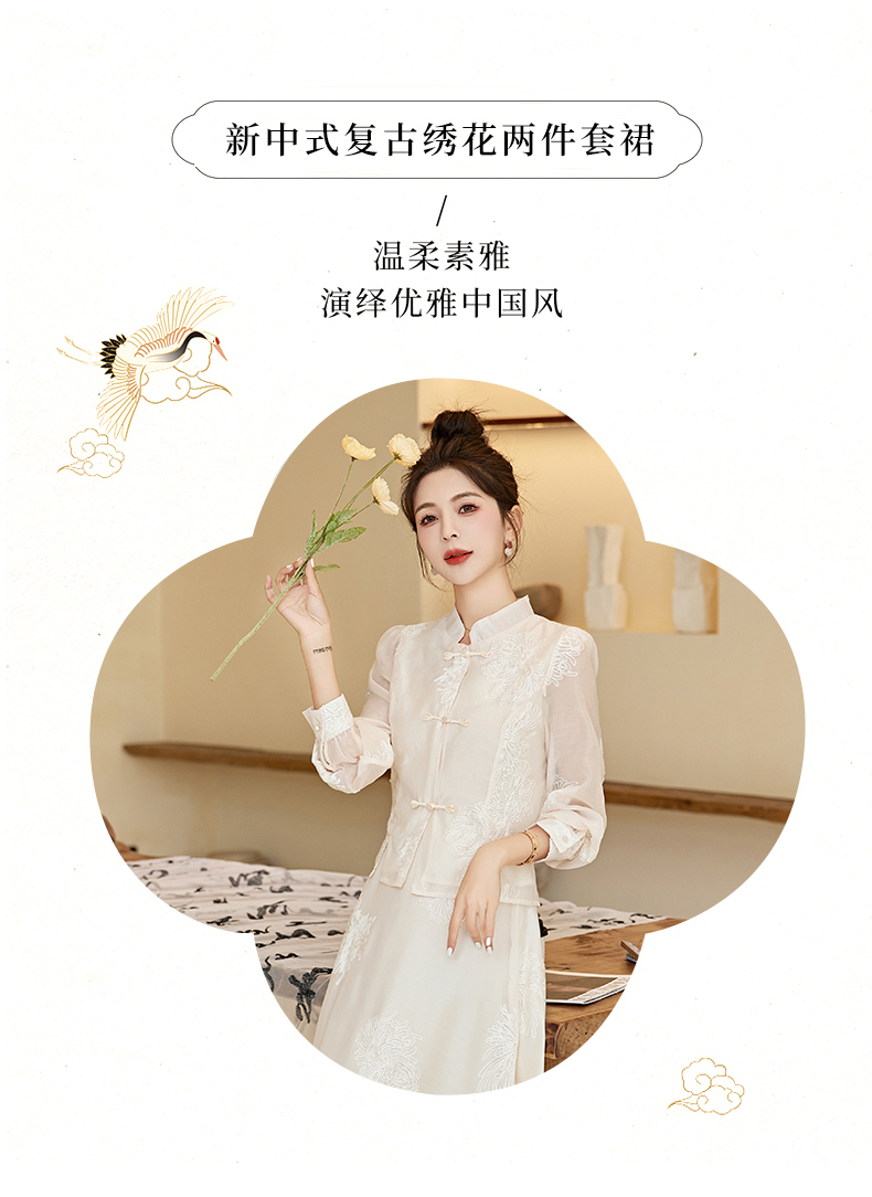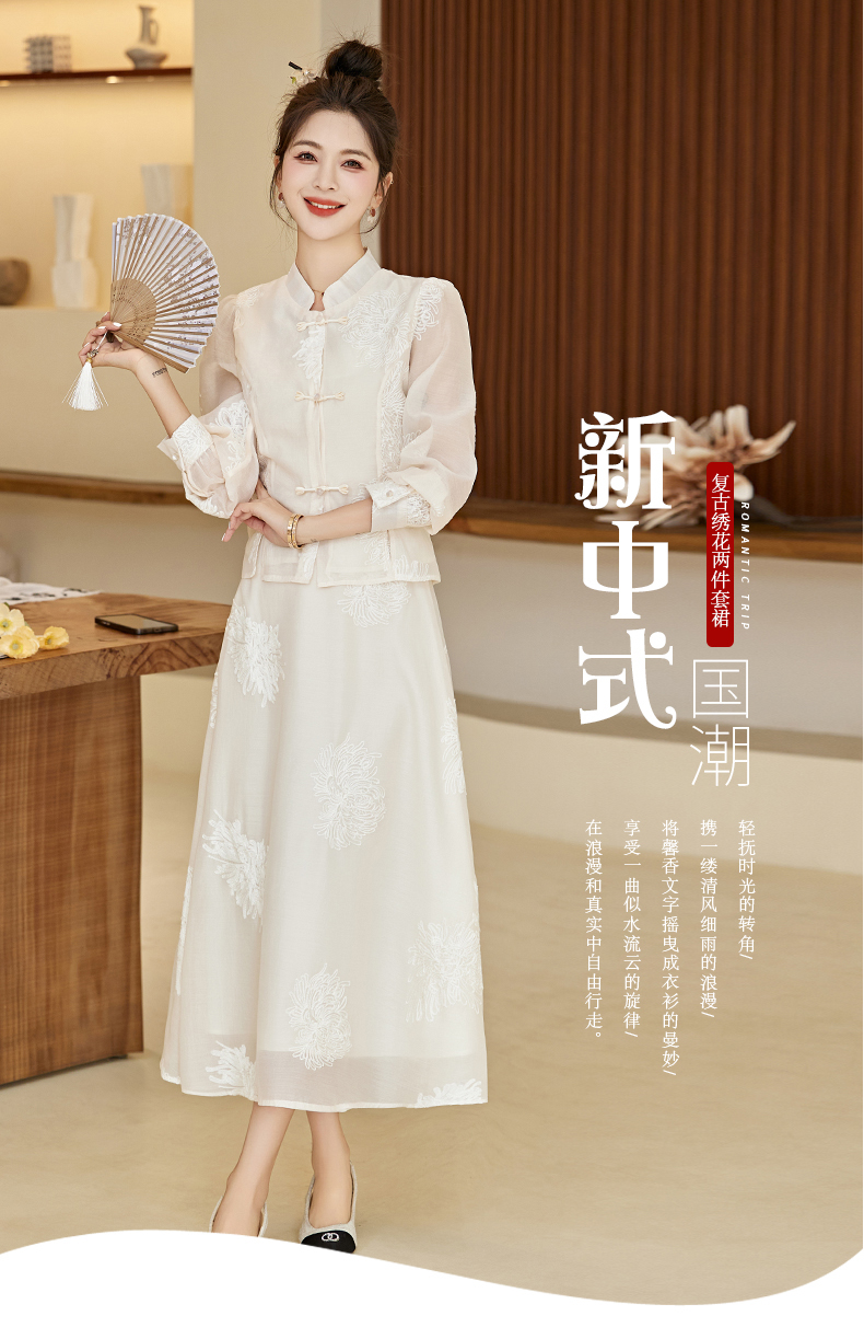 时尚中式连衣裙,绣花盘扣两件套HR-HRYZ9640