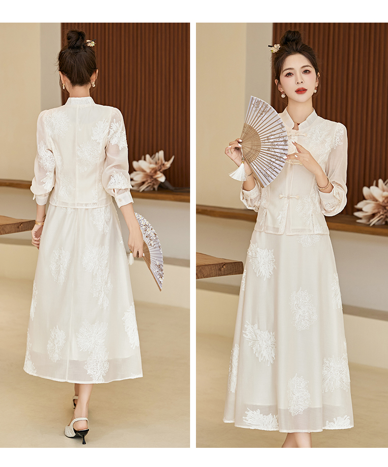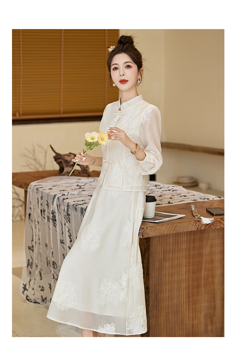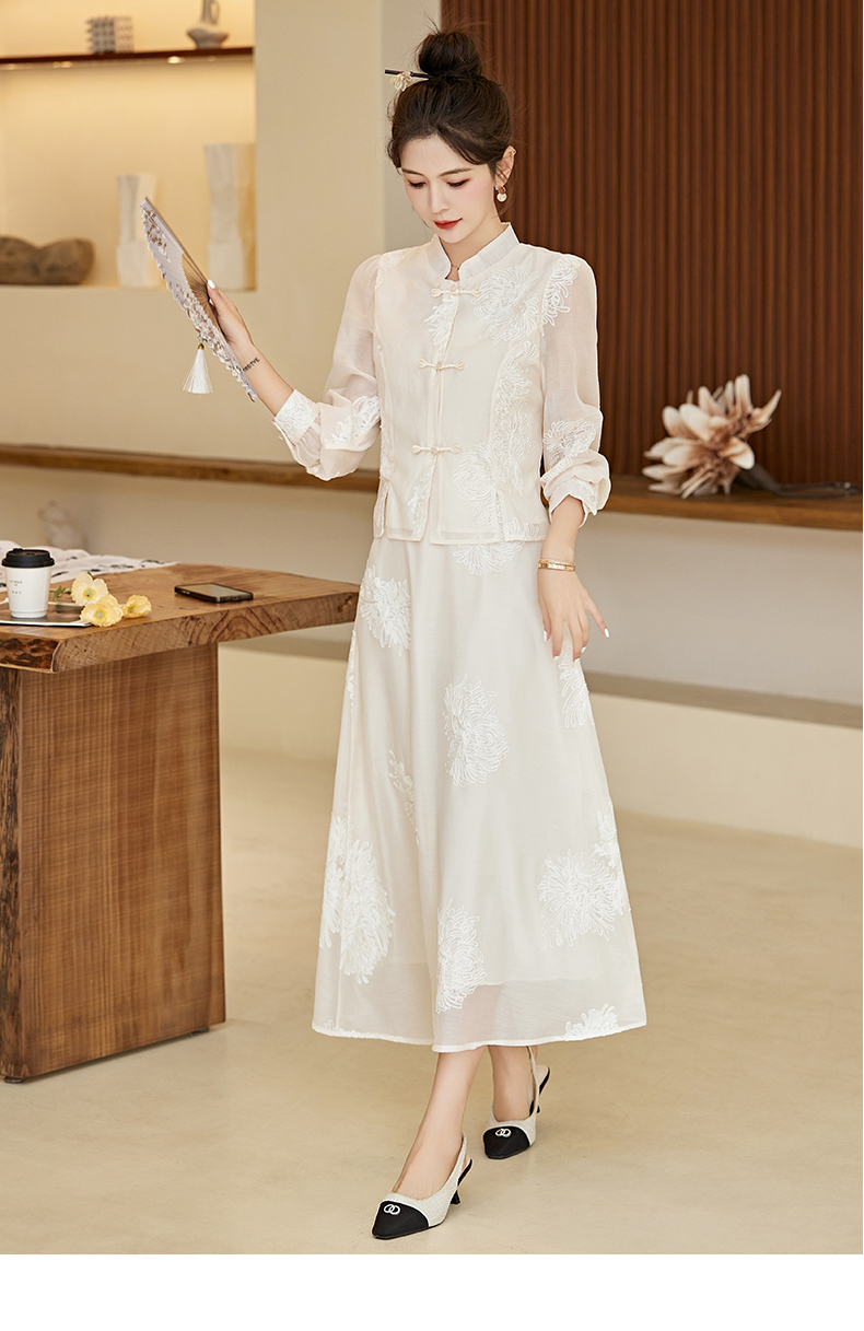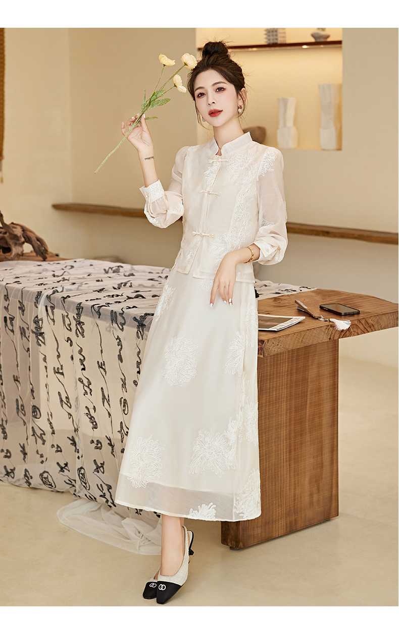 时尚中式连衣裙,绣花盘扣两件套HR-HRYZ9640