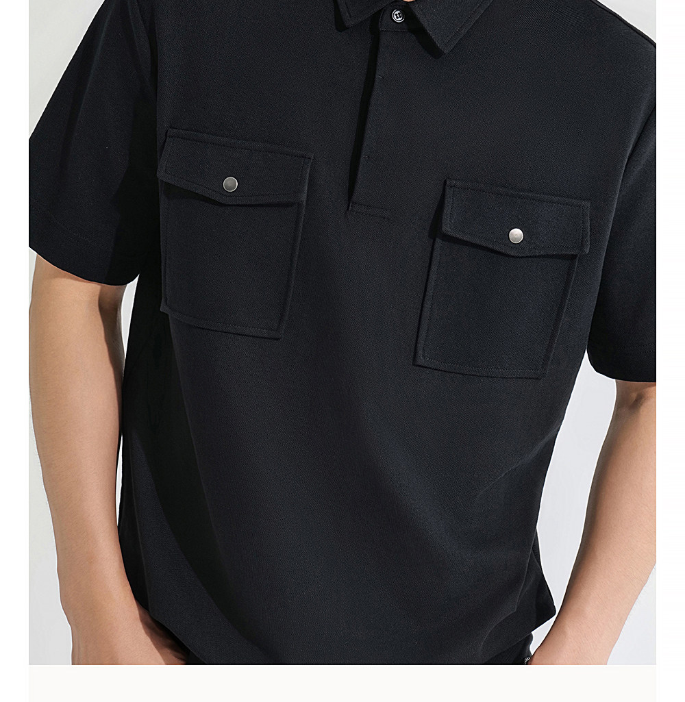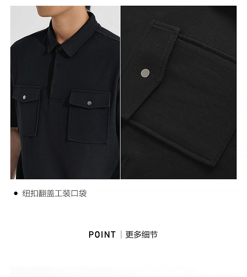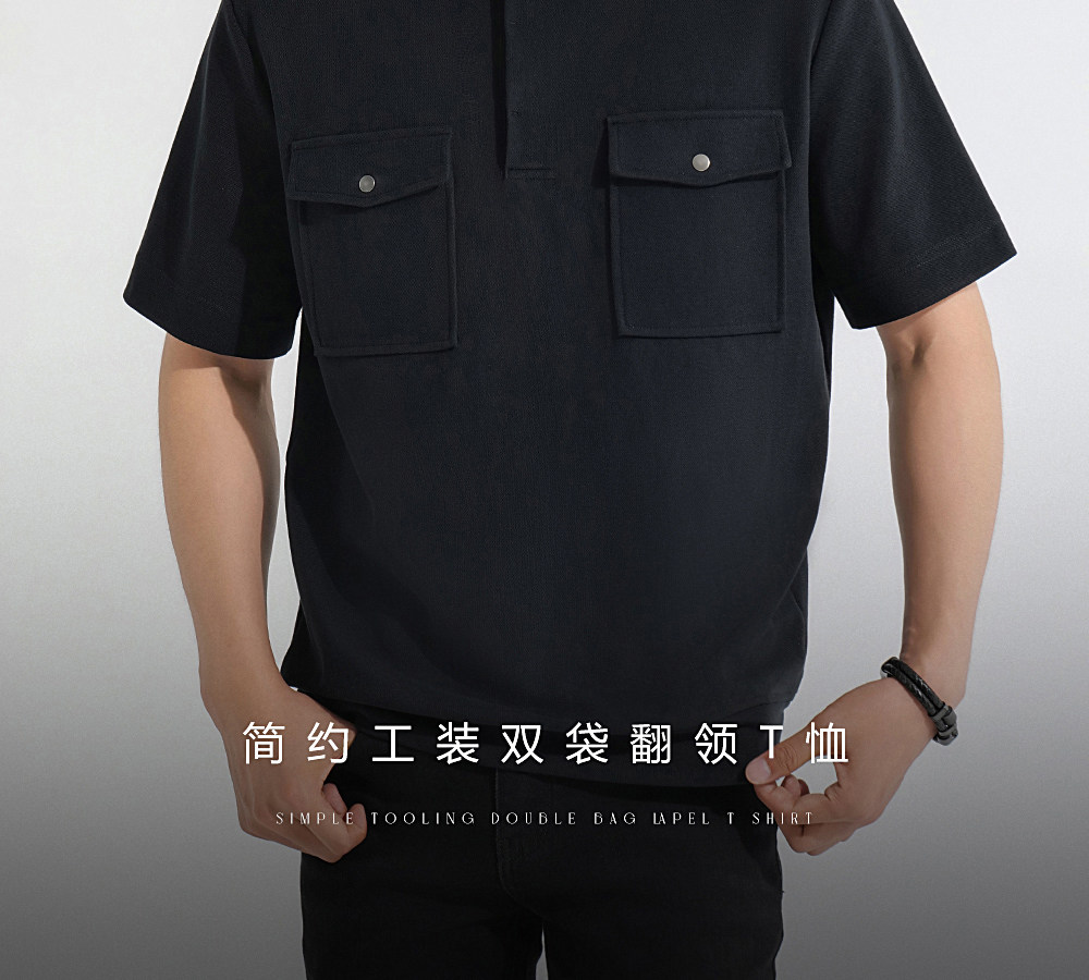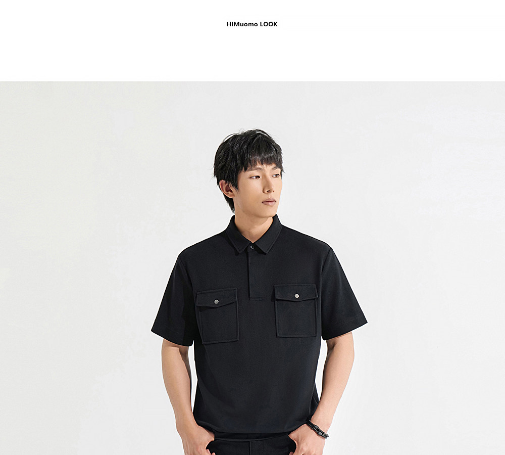 HIM漢崇 潮流工装口袋翻领T恤男士商务休闲短袖POLO衫 2026夏季