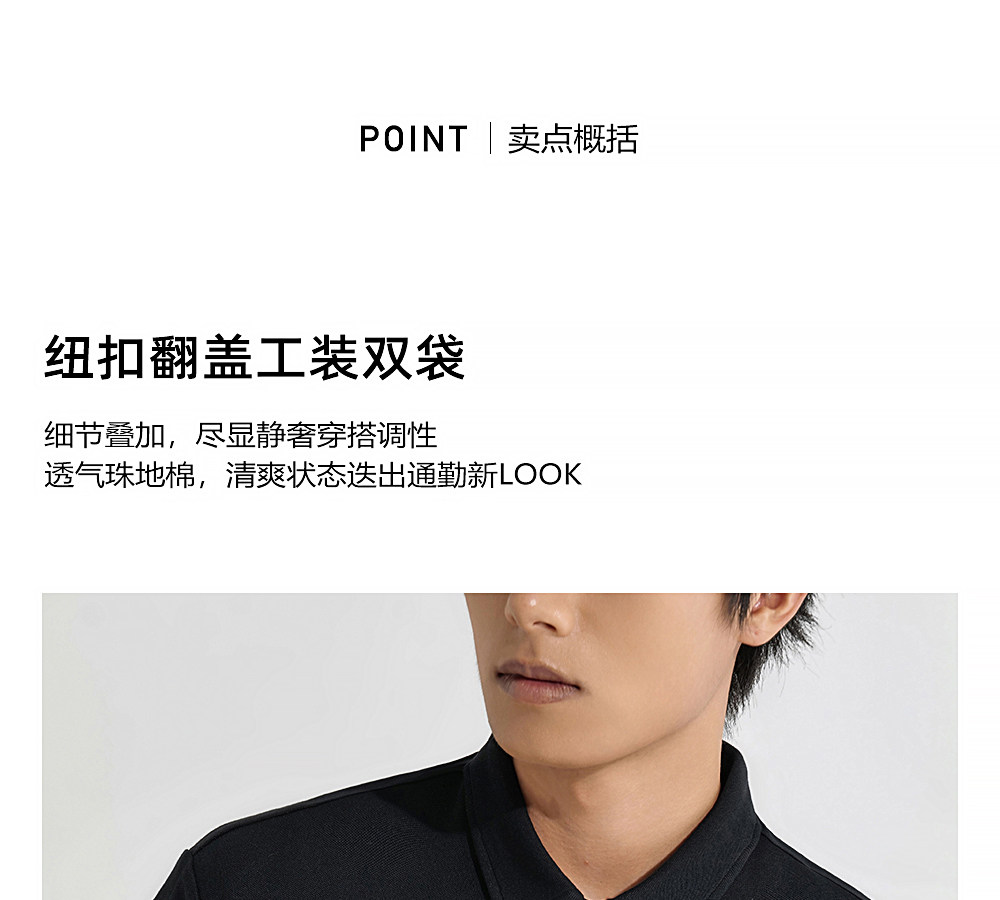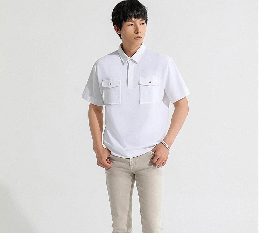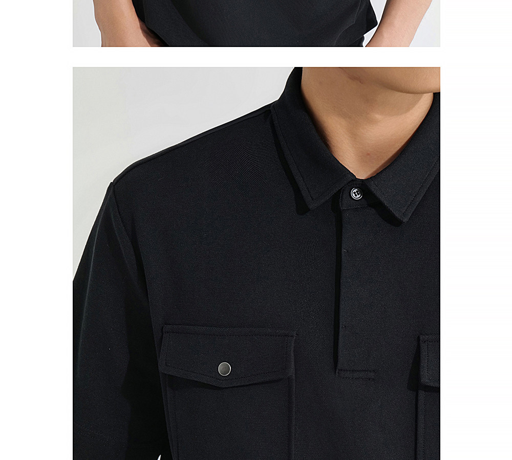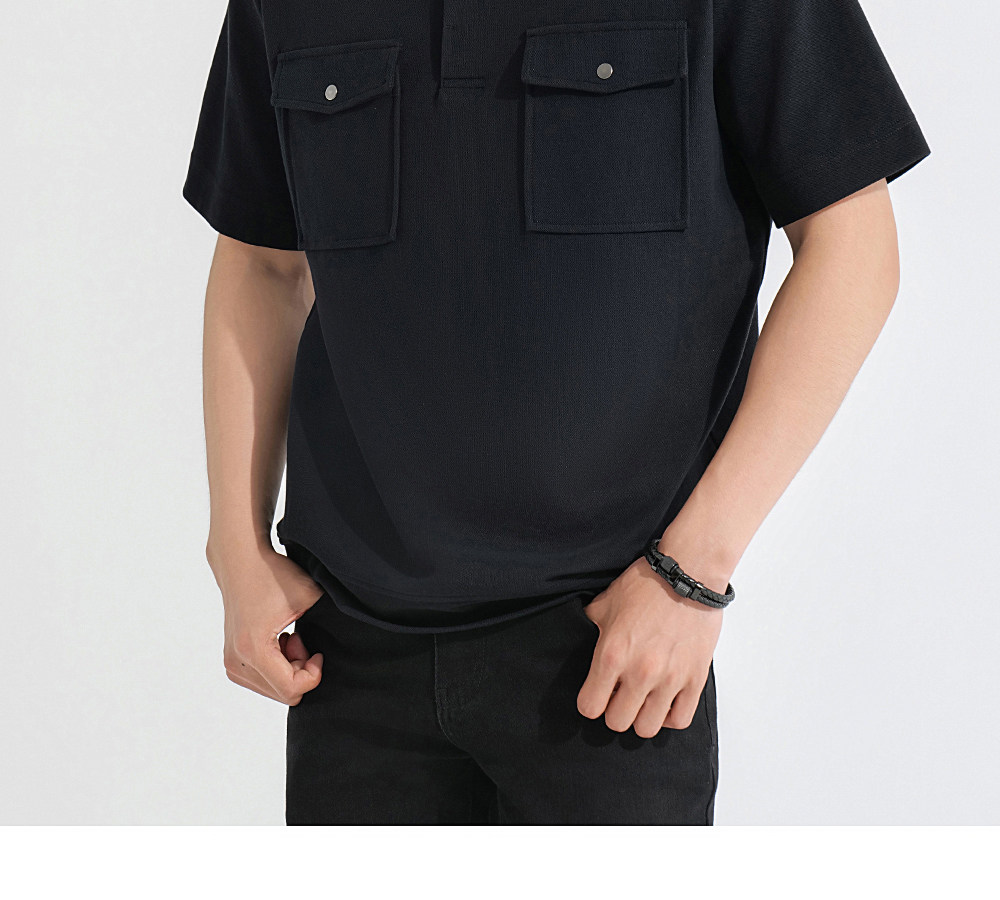 HIM漢崇 潮流工装口袋翻领T恤男士商务休闲短袖POLO衫 2026夏季