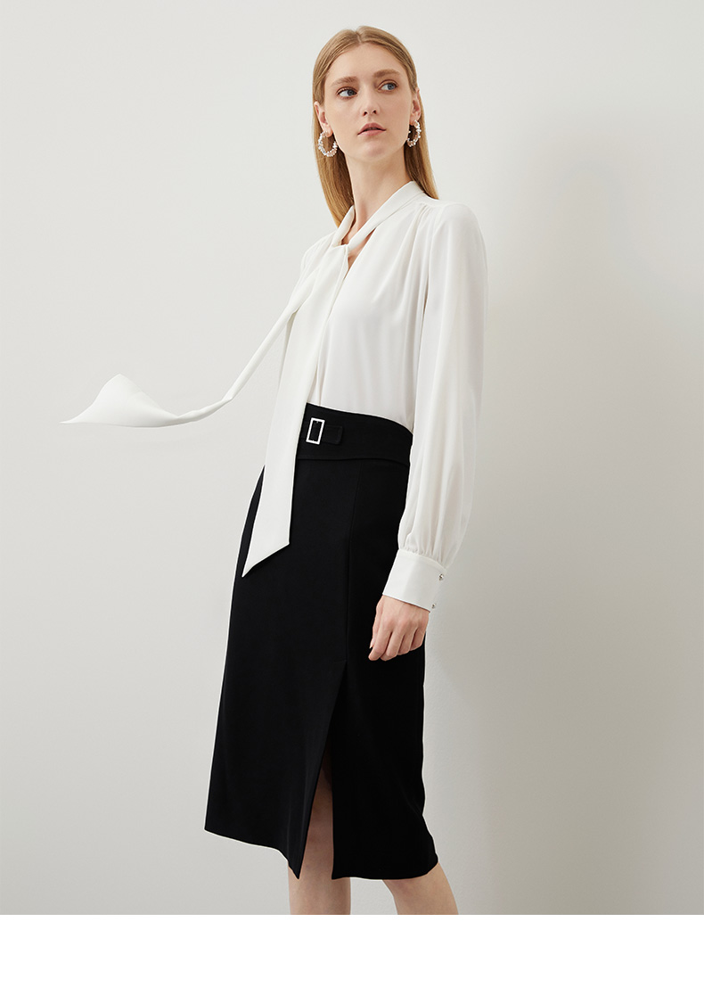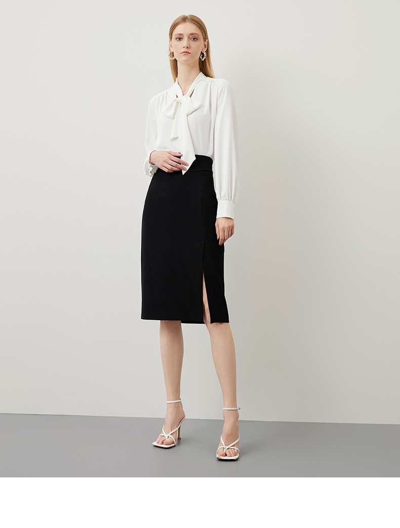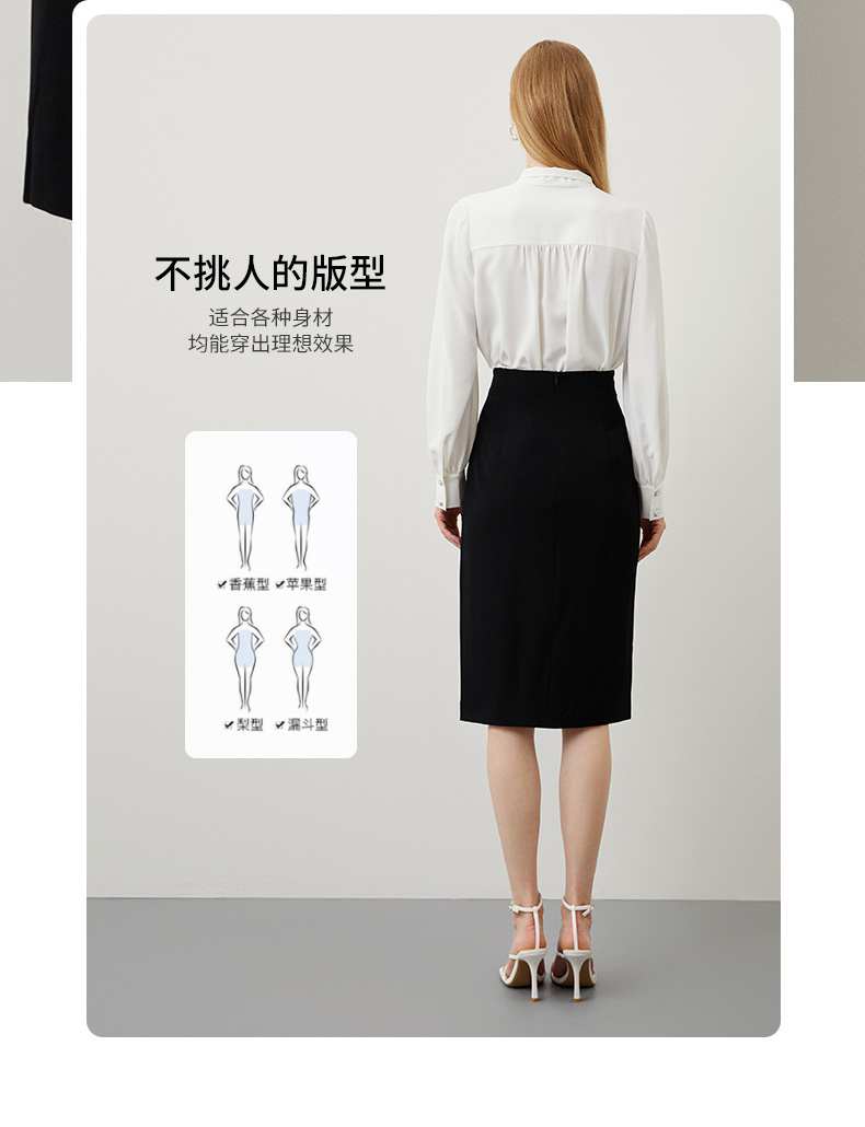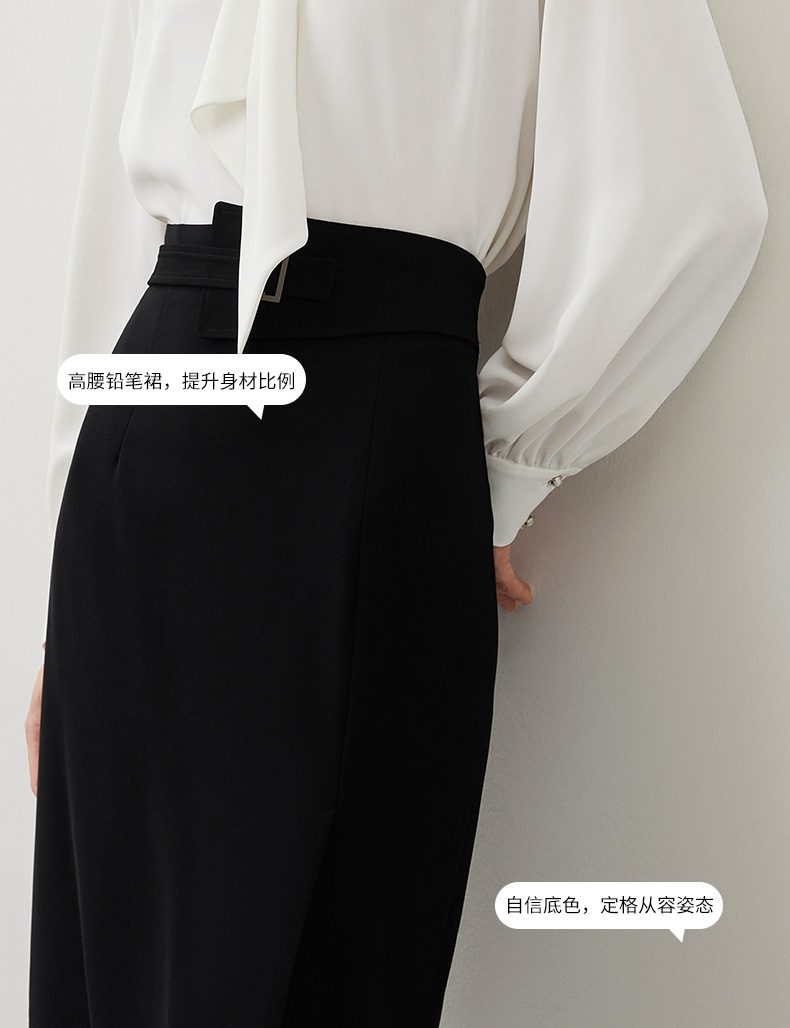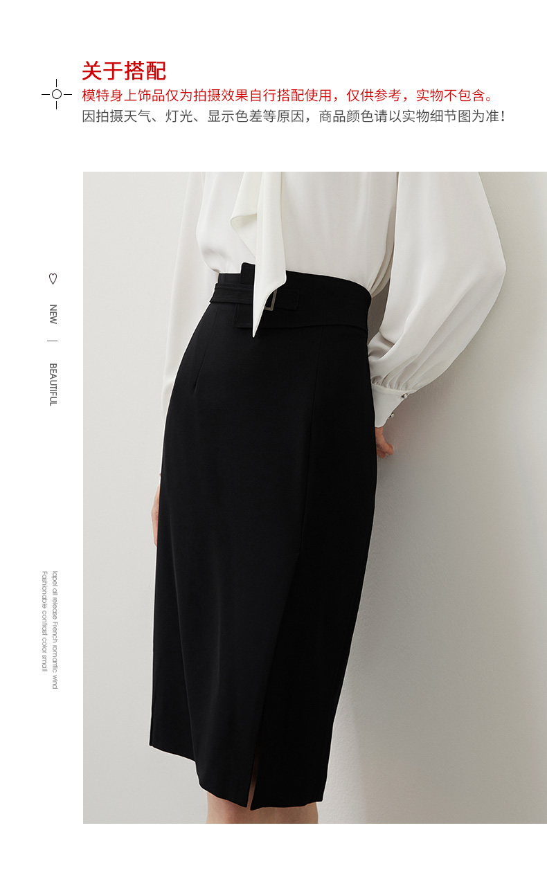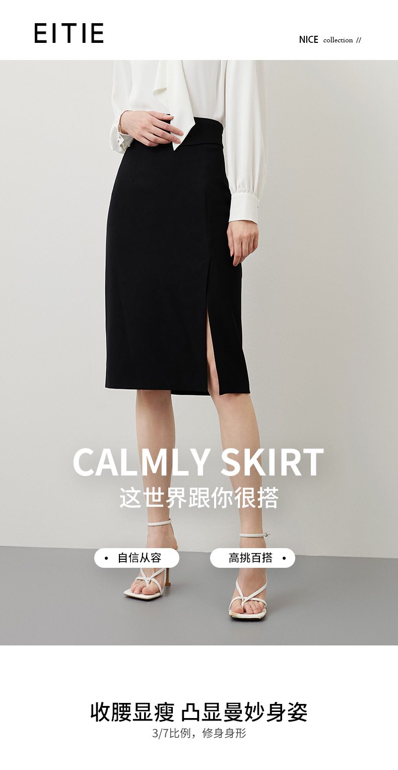 EITIE爱特爱秋冬新款优雅时尚高腰开叉百搭半身裙包臀裙女6706415