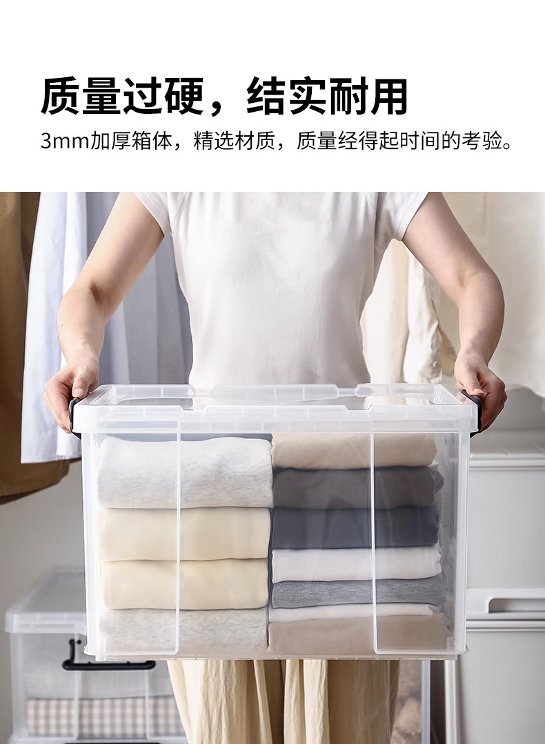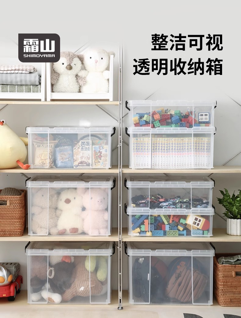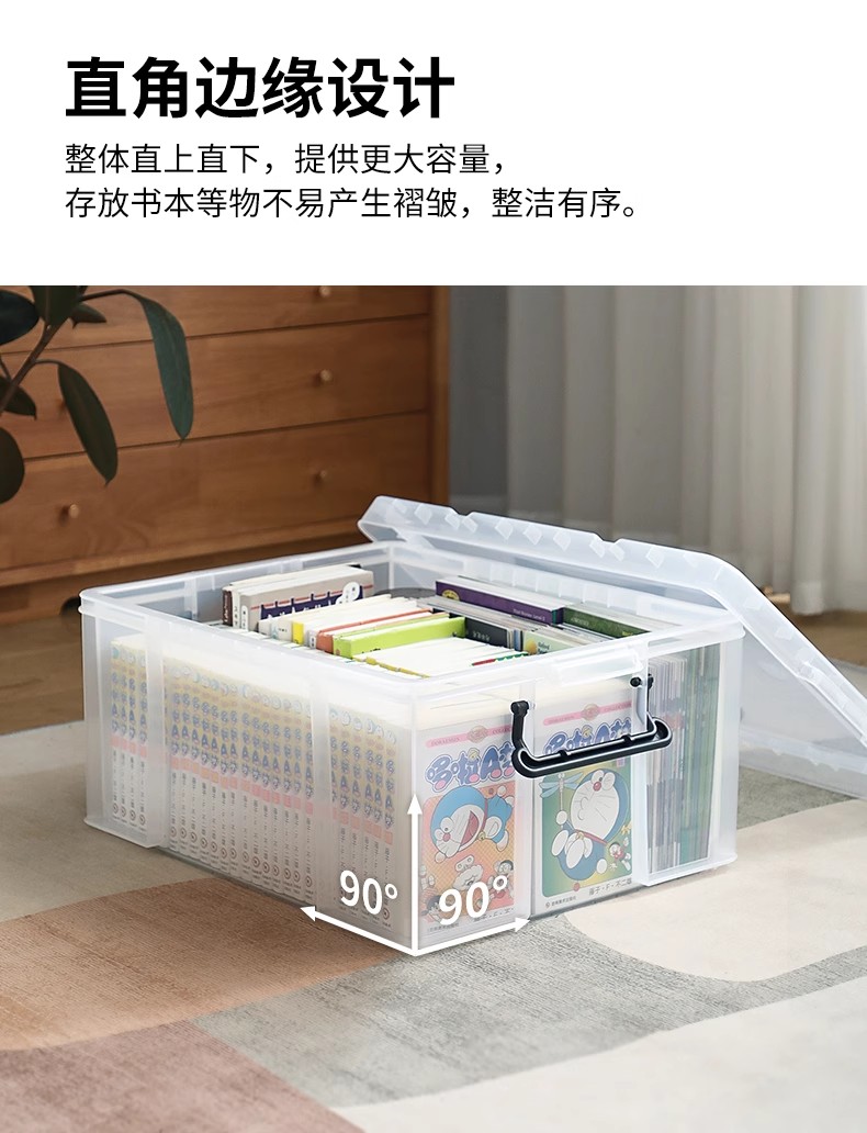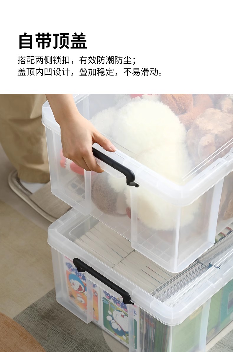霜山透明直角收纳箱被子漫画书衣物整理箱玩具玩偶车载后备储物箱