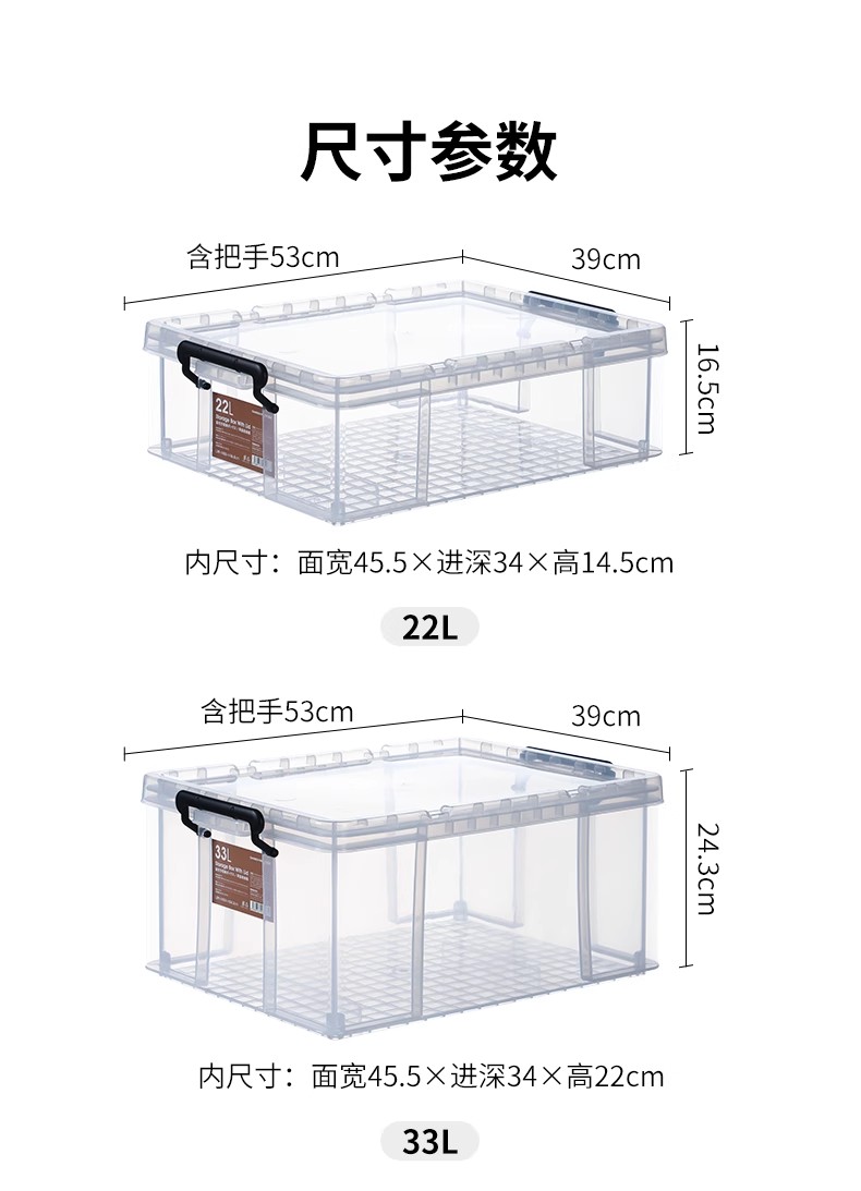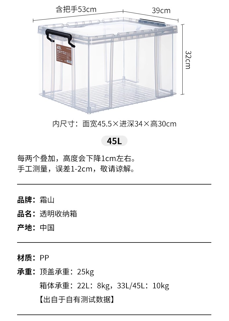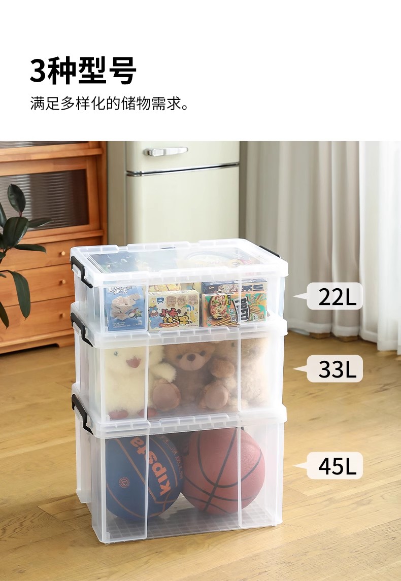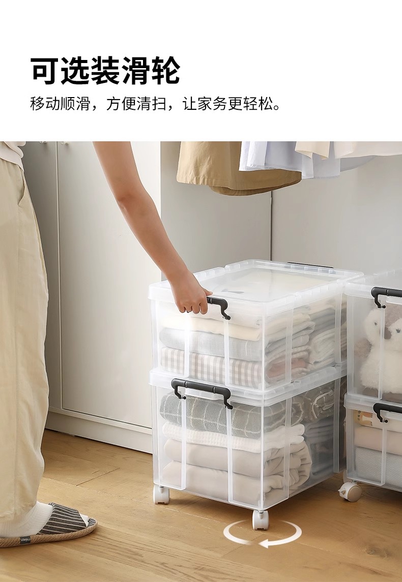 霜山透明直角收纳箱被子漫画书衣物整理箱玩具玩偶车载后备储物箱