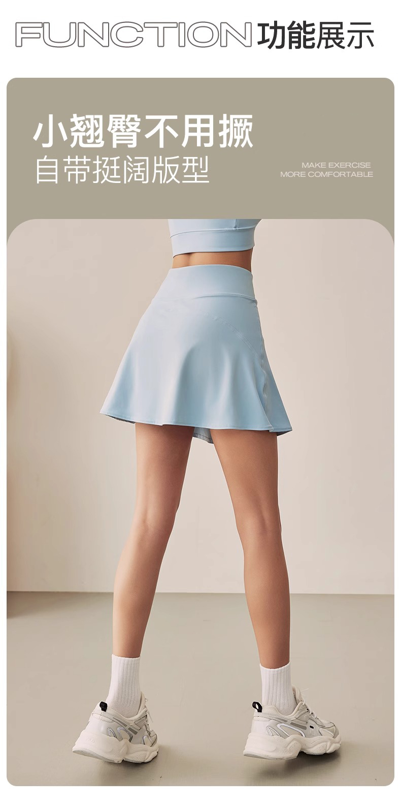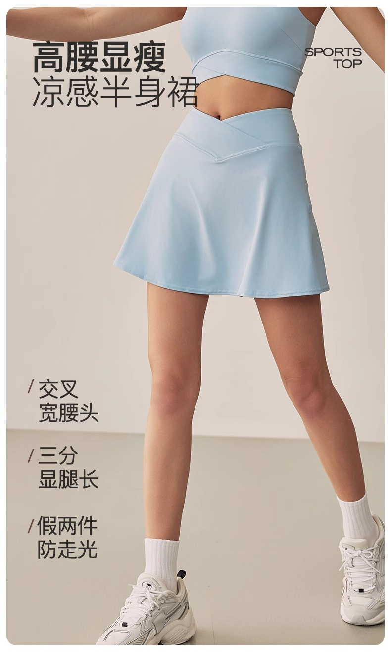 【3~5天发货】跃牌【美度空间】系列 冰薄荷夏季假两件运动短裙弹力交叉收腰瑜伽裙内侧口袋网球裙ADDQ41013