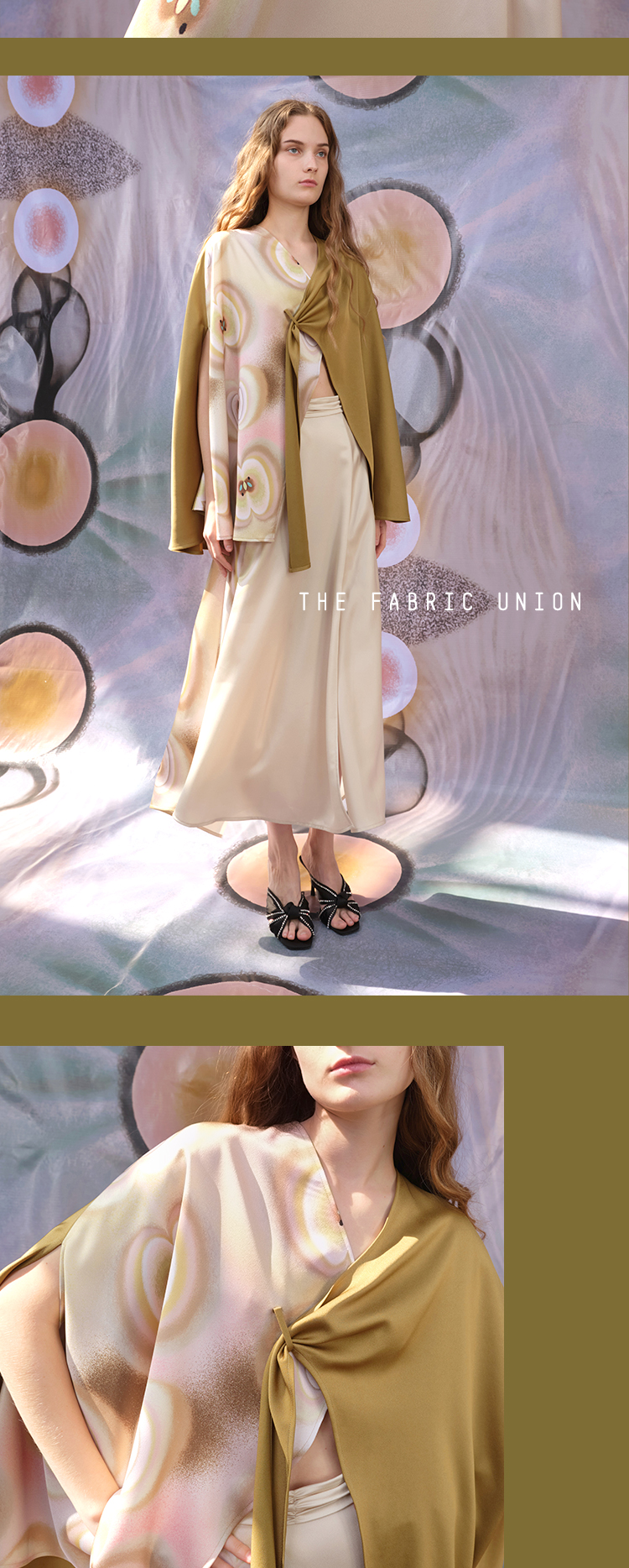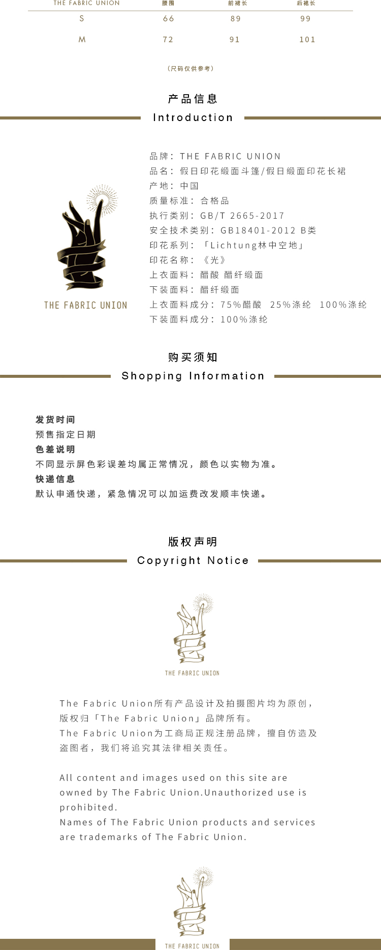 THE FABRIC UNION假日缎面印花斗篷假日缎面印花长裙