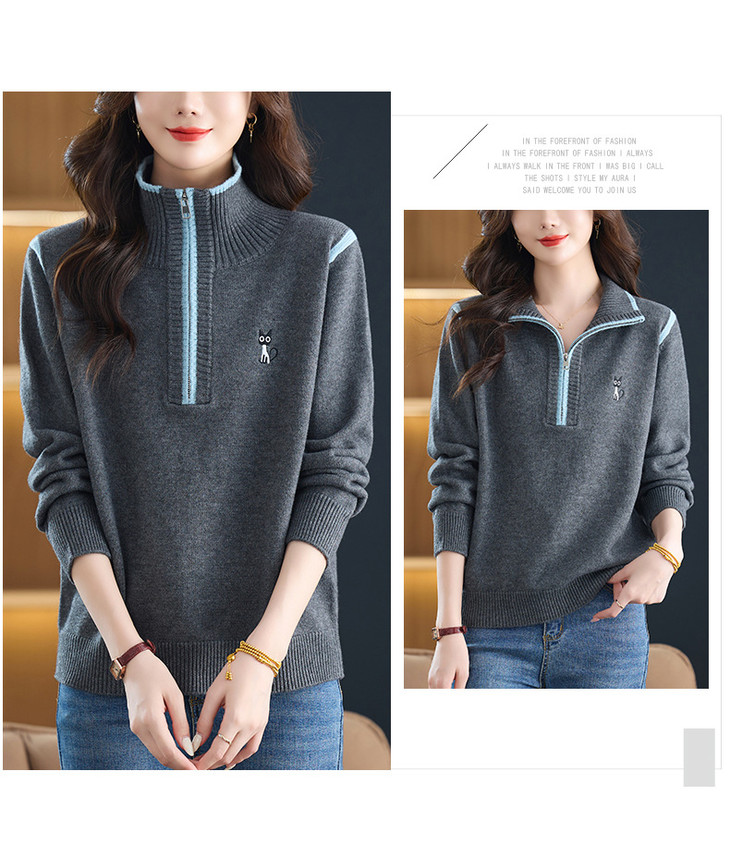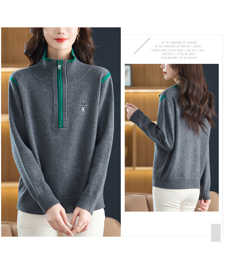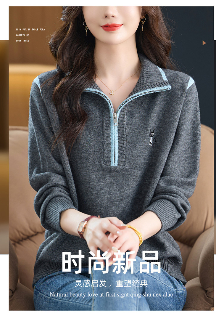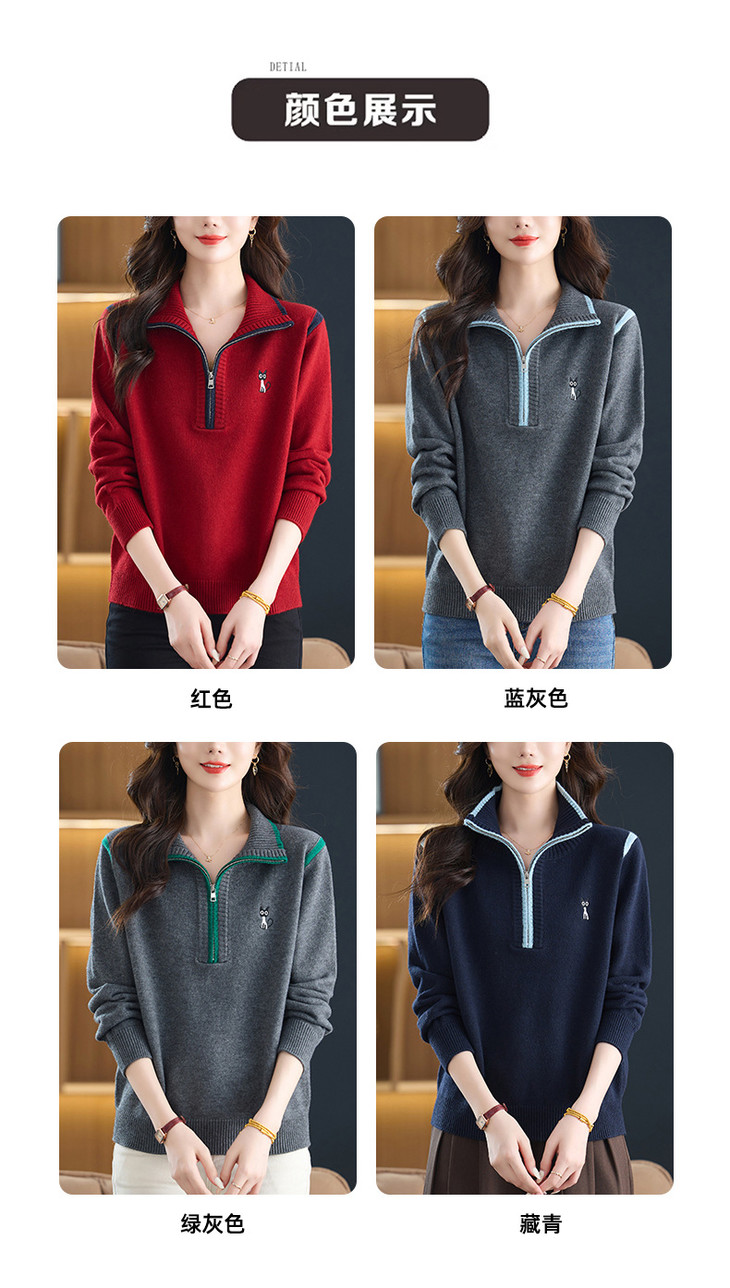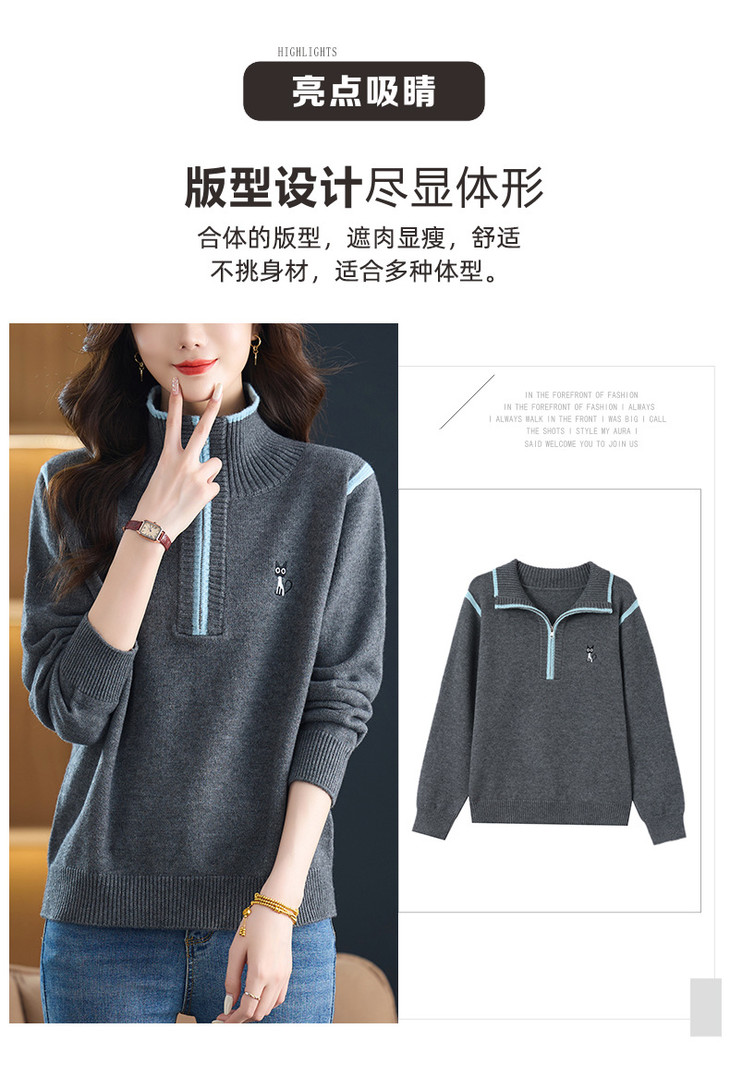 半拉链打底衫洋气时髦时尚毛衣,内搭可外穿妈妈针织上衣CC-26-9199