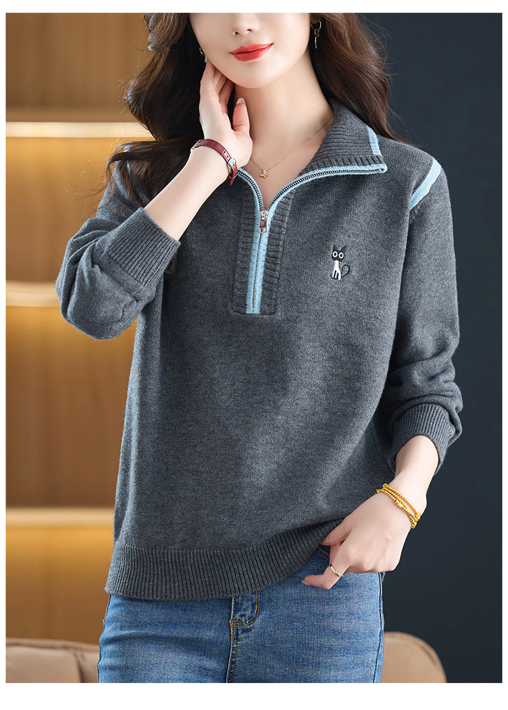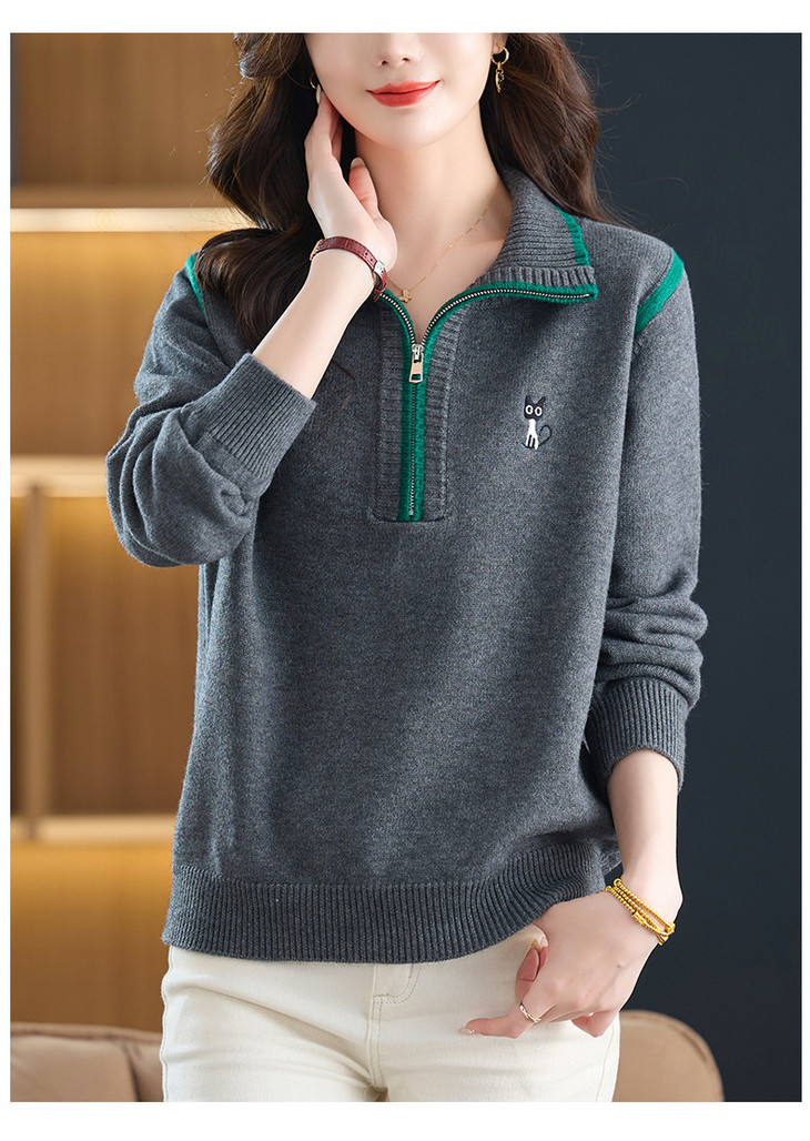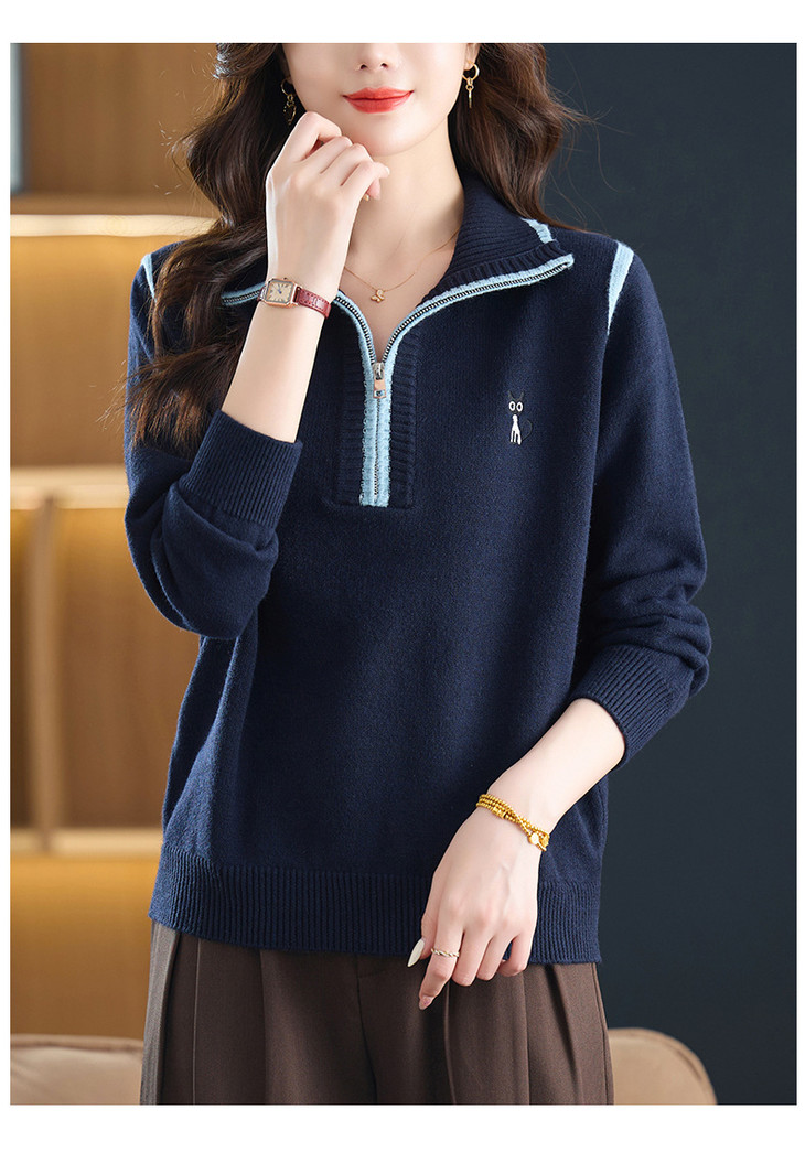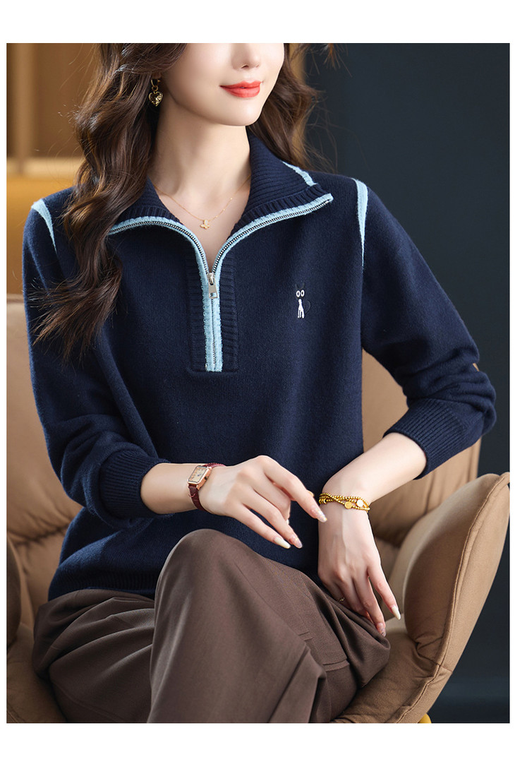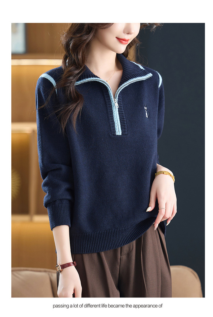 半拉链打底衫洋气时髦时尚毛衣,内搭可外穿妈妈针织上衣CC-26-9199