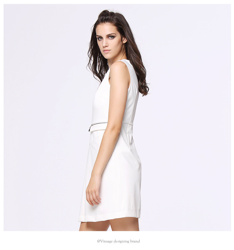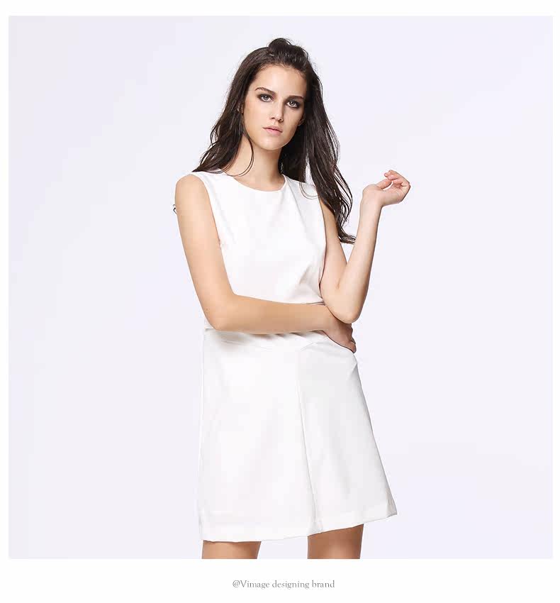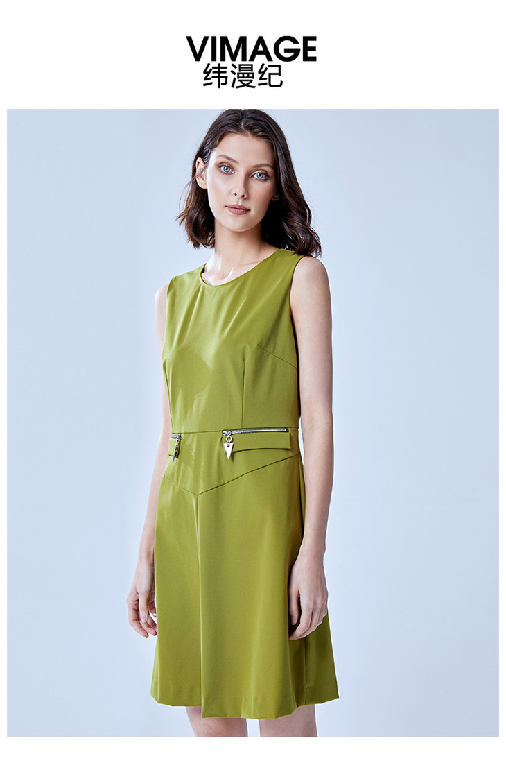 VIMAGE纬漫纪旗舰店商场同款夏季无袖高腰修身A字连衣裙短裙V707326
