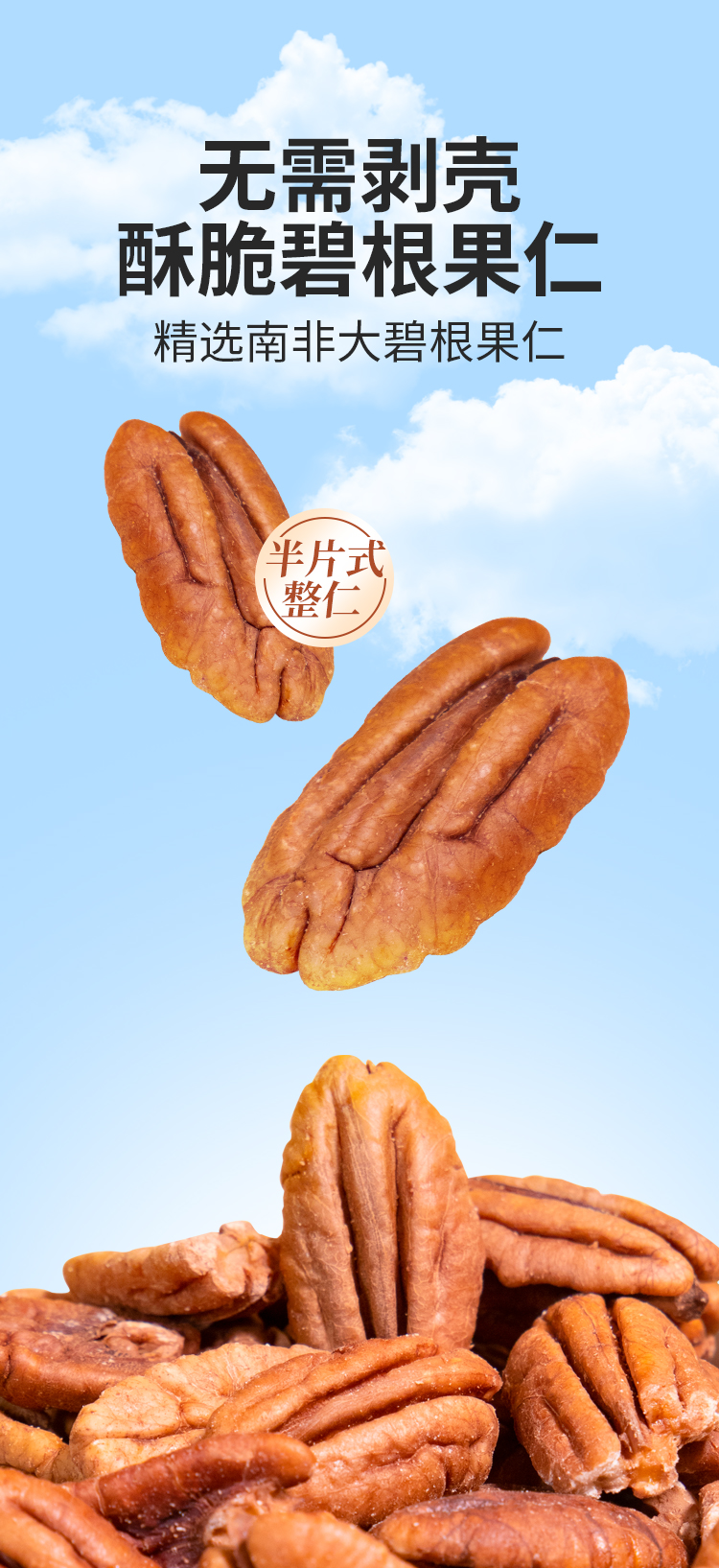 碧根果仁原味无需剥壳半片式果仁颗颗大而饱满200g/罐