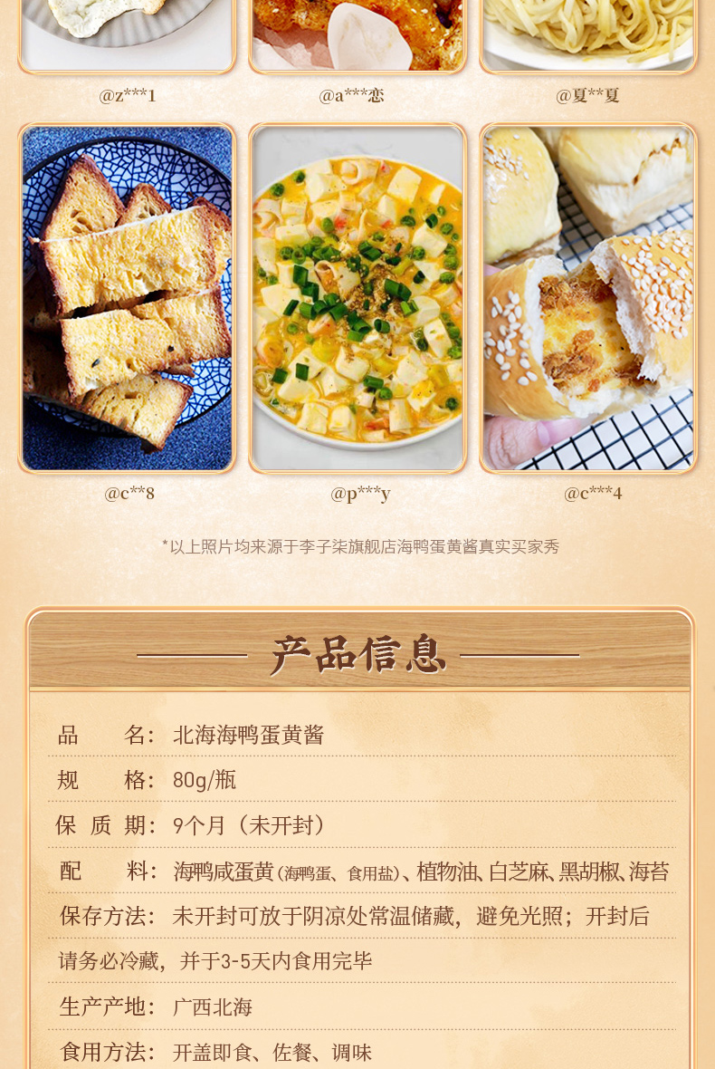 李子柒北海海鸭蛋黄酱流沙咸蛋黄酱流沙酱拌饭80g单瓶装