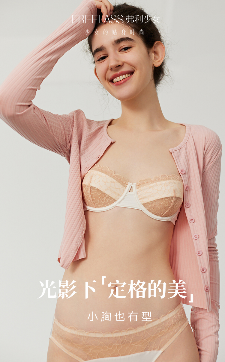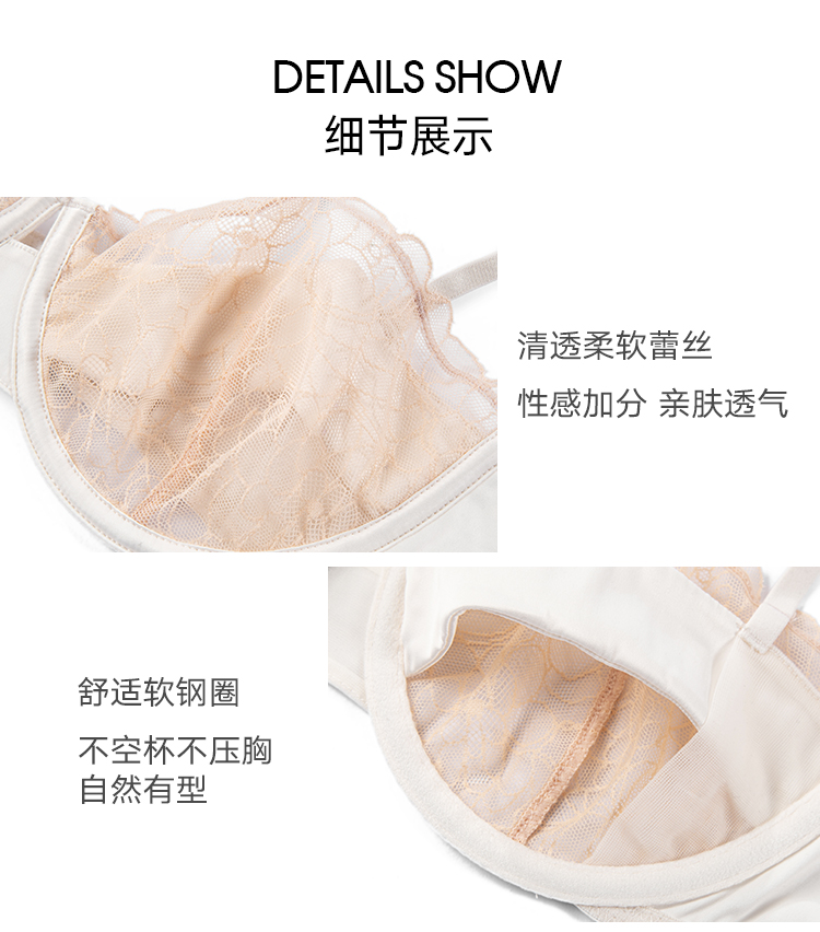 弗利少女蕾丝软钢圈内衣1/2半杯文胸超薄 宽肩带女士小胸胸罩套装