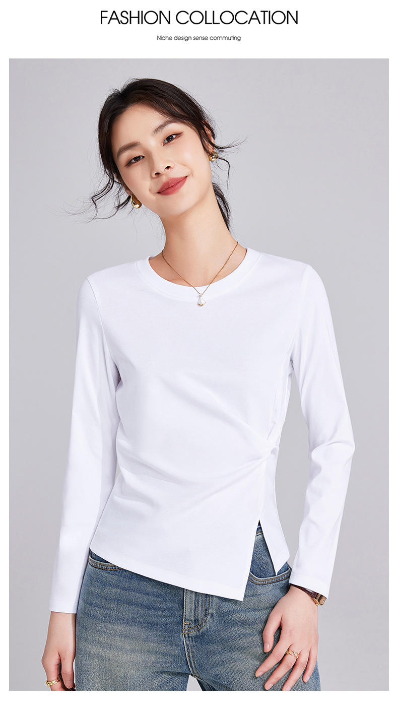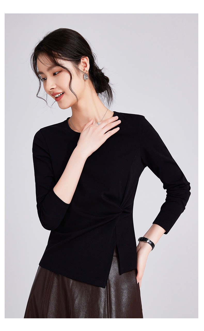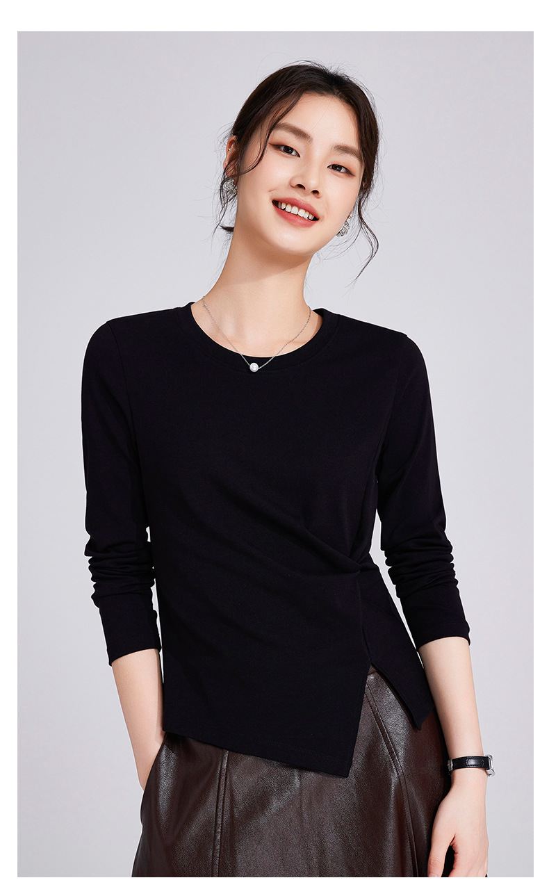 「自j」全新升级【铂金会员109/天猫149/差价40】(04236)洛诗琳新款圆领不规则长袖T2025秋季褶皱设计感打底衫上衣