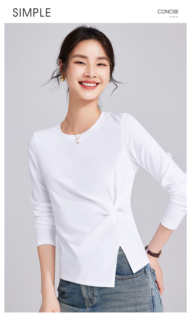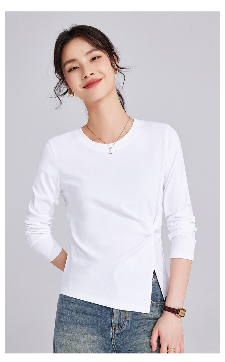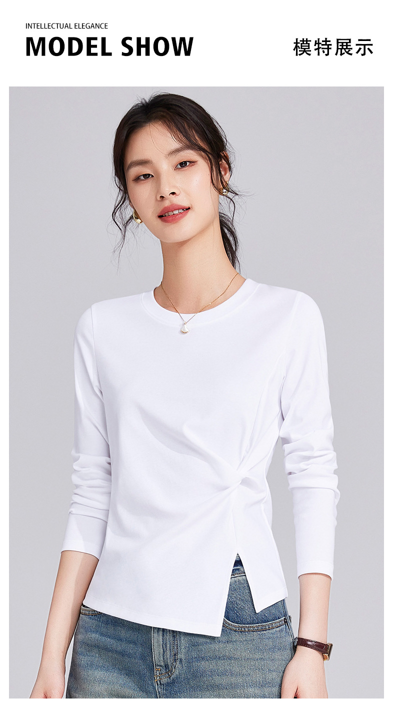 「自j」全新升级【铂金会员109/天猫149/差价40】(04236)洛诗琳新款圆领不规则长袖T2025秋季褶皱设计感打底衫上衣