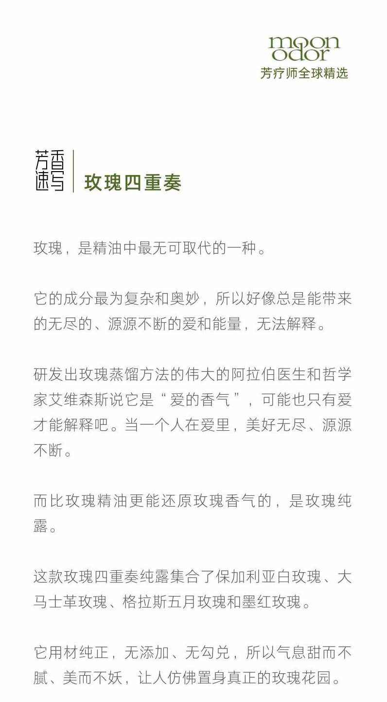 由四种玫瑰纯露制成