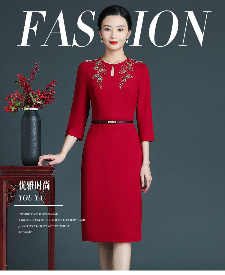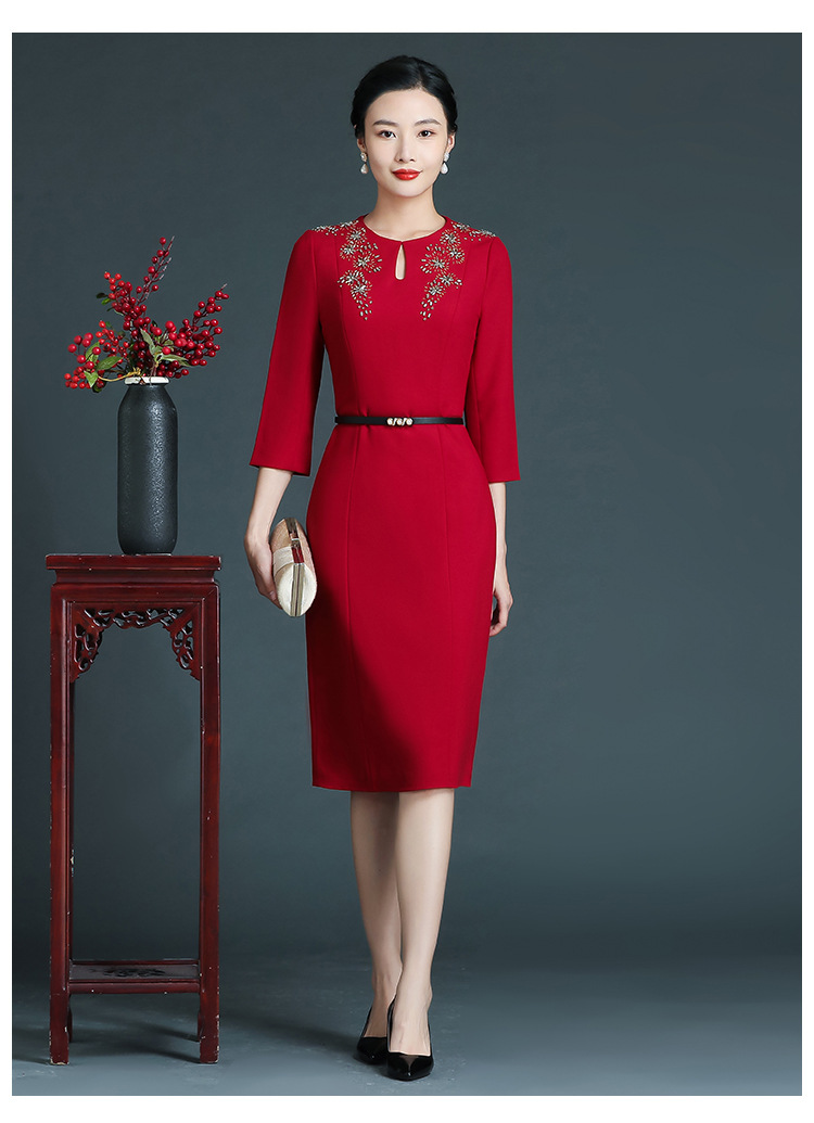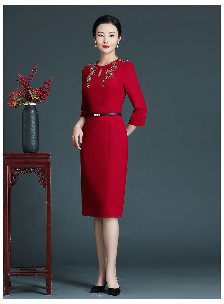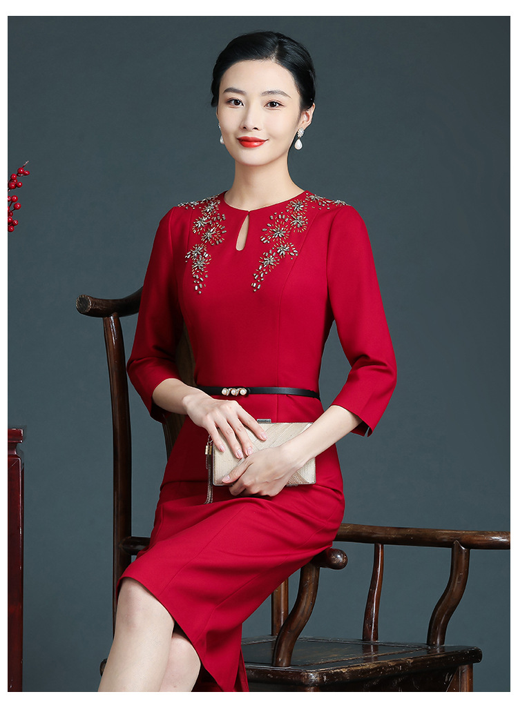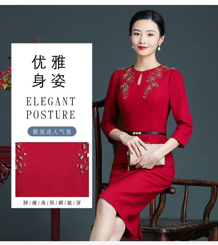 上海旗袍厂ZY-Q5746新款欧美风时尚气质宴会礼服秋装重工订钻连衣裙