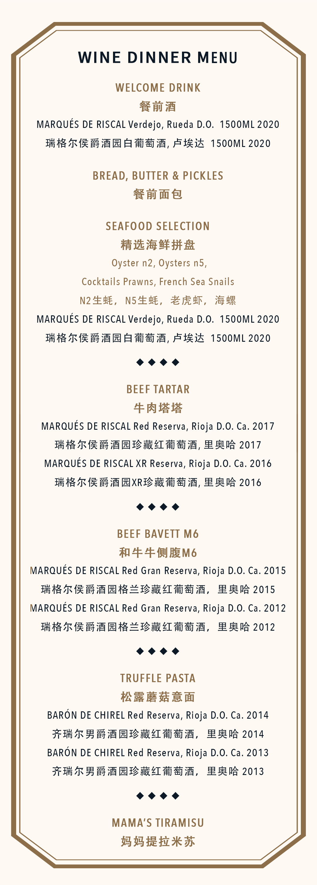 【11.11门票 Ticket】瑞格尔侯爵标杆系列尊享晚宴 Marqués de Riscal Benchmark Wine Tasting