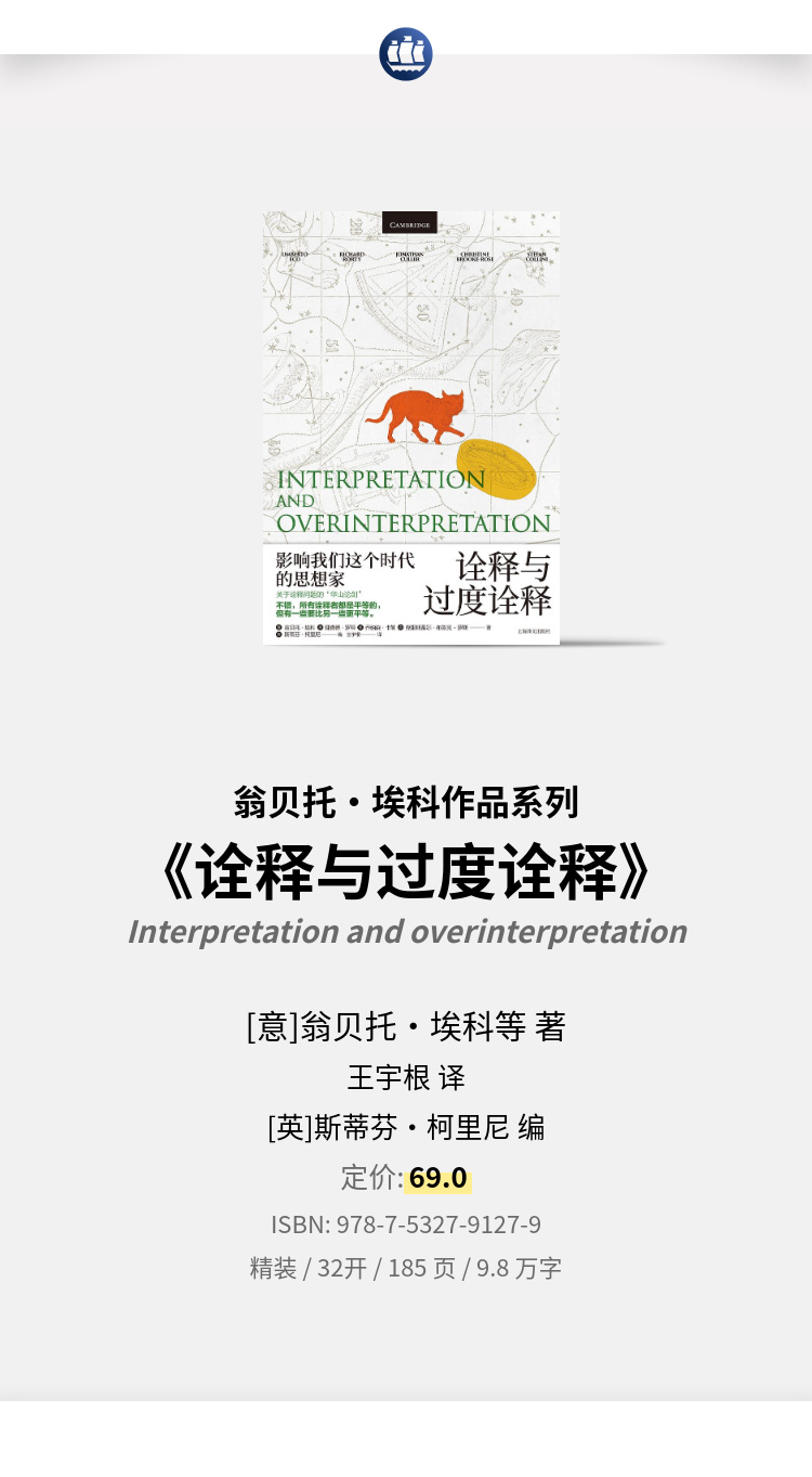 一九九〇年,在剑桥大学著名的“坦纳讲座”上,翁贝托·埃科与理查德·罗蒂、乔纳森·卡勒和克里斯蒂娜·布鲁克-罗斯就有关“诠释”的问题展开生动热烈的辩论,这场社会文化胜景吸引了众多知名学者、批评家和剑桥学子。