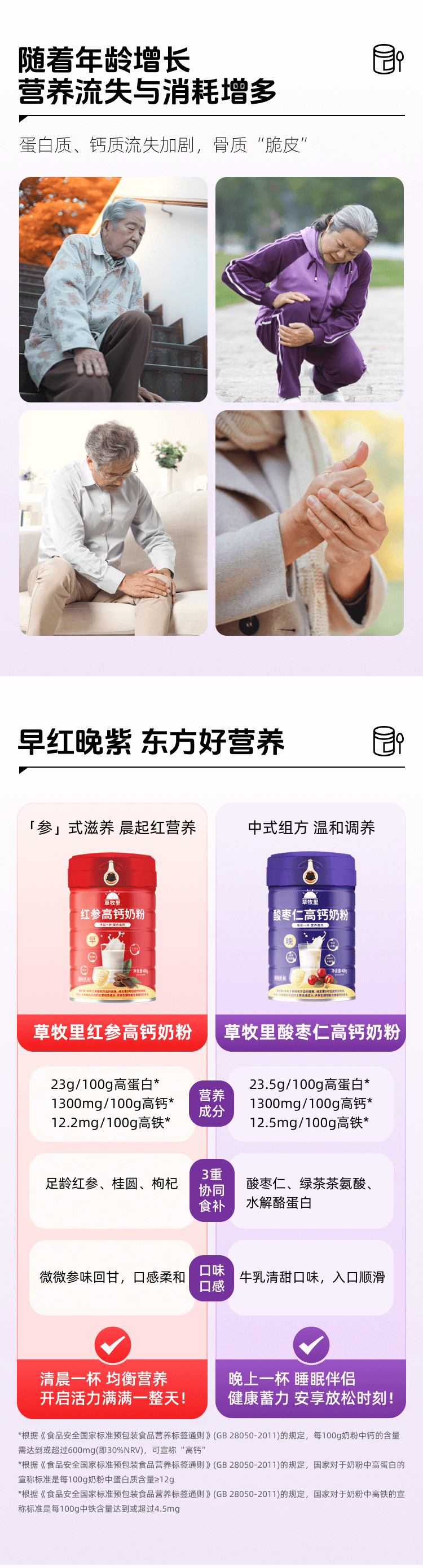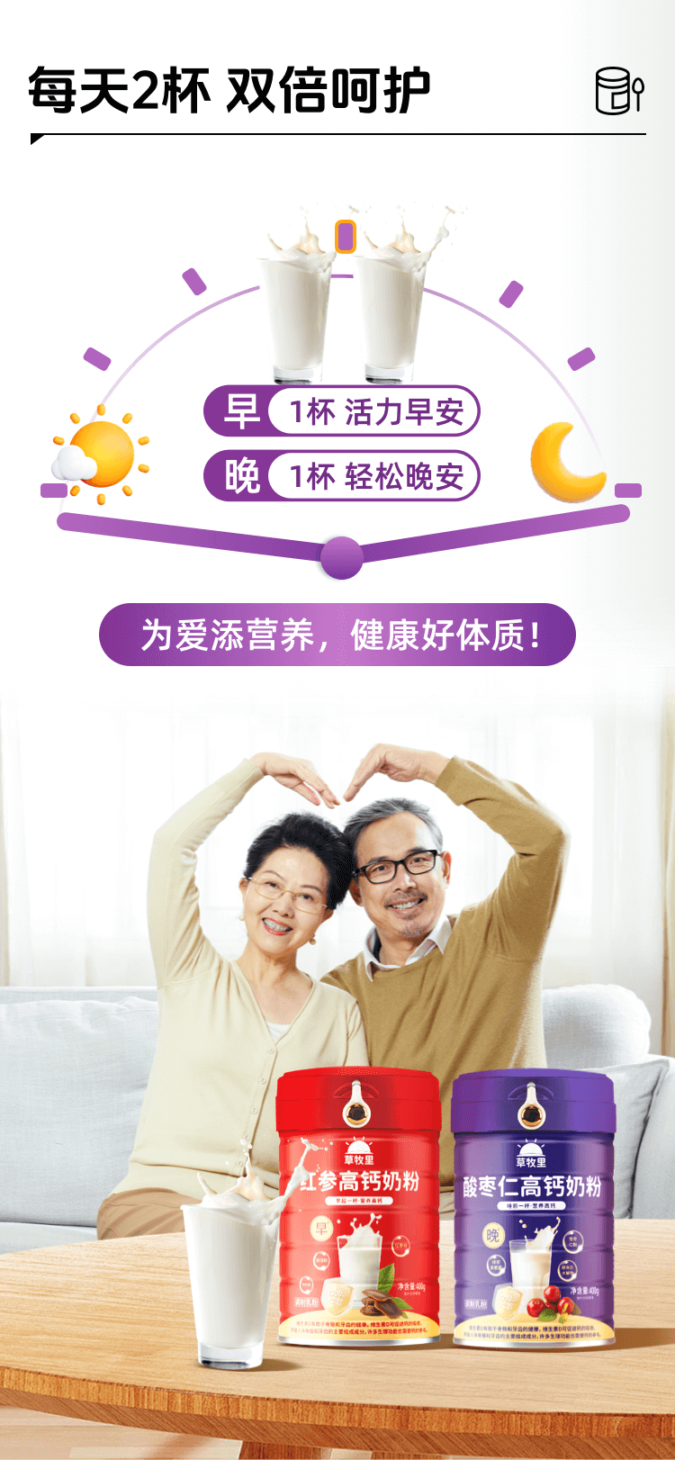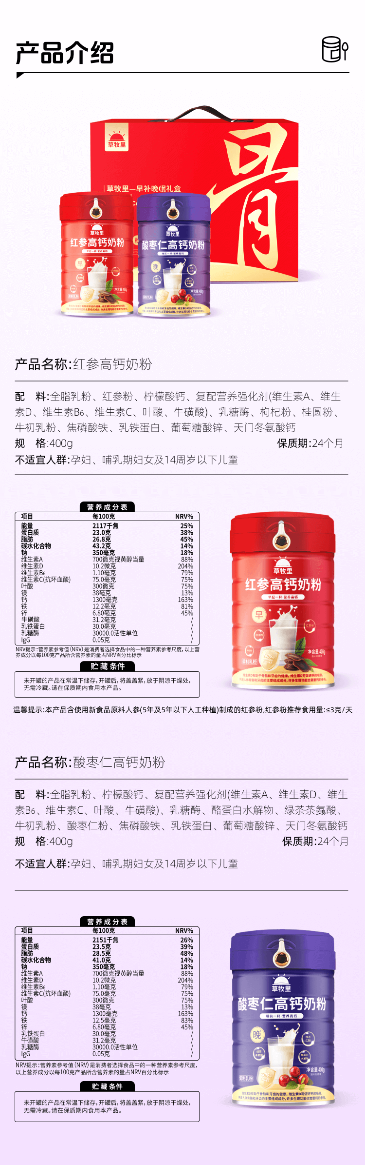 【供货】草牧里 早补晚眠礼盒 (红参高钙奶粉*1罐+酸枣仁高钙奶粉*1罐) 礼见心意贴心之选