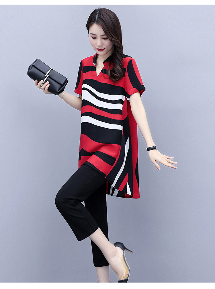 HT-8018夏装新款200斤胖mm洋气时髦宽松遮肚子显瘦两件套装