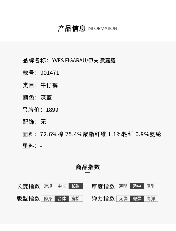 YvesFigarau伊夫·费嘉罗商务休闲直筒宽松弹力舒适长牛仔裤901471