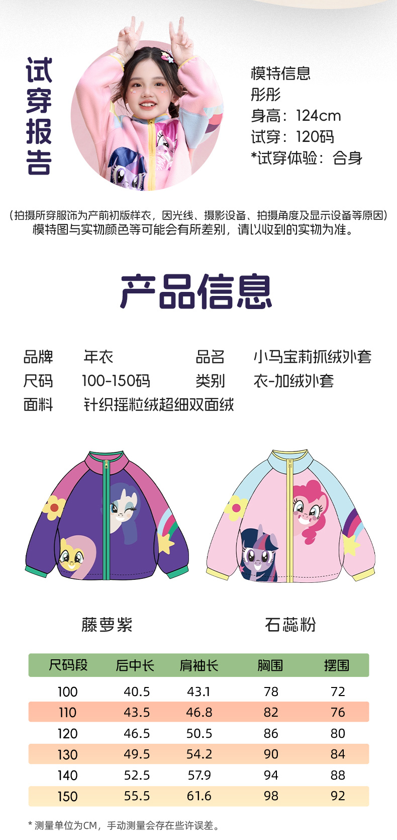 【年衣】童装儿童抓绒外套25秋冬新款卡通摇粒绒小马宝莉抓绒外套