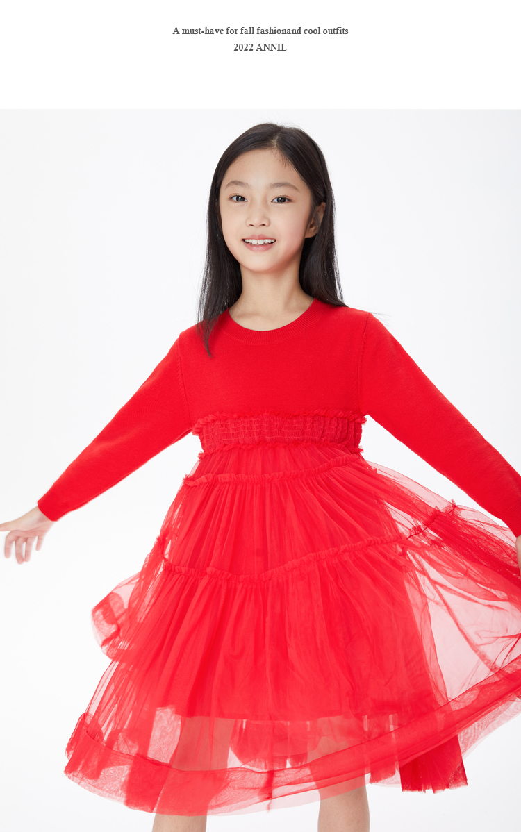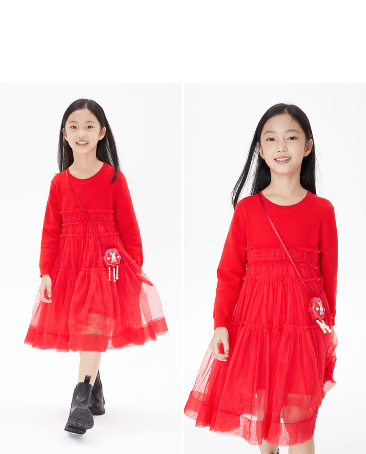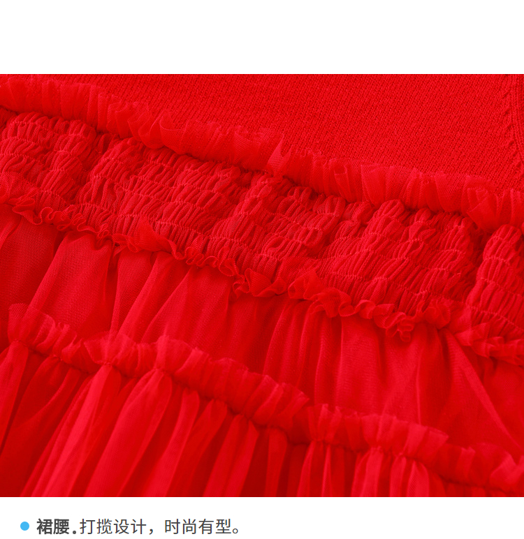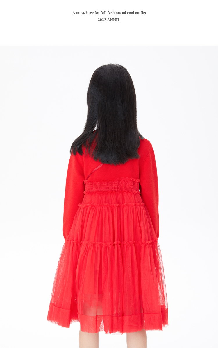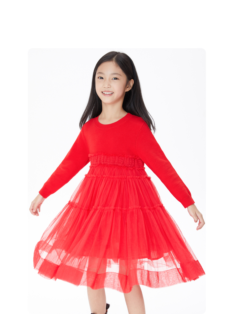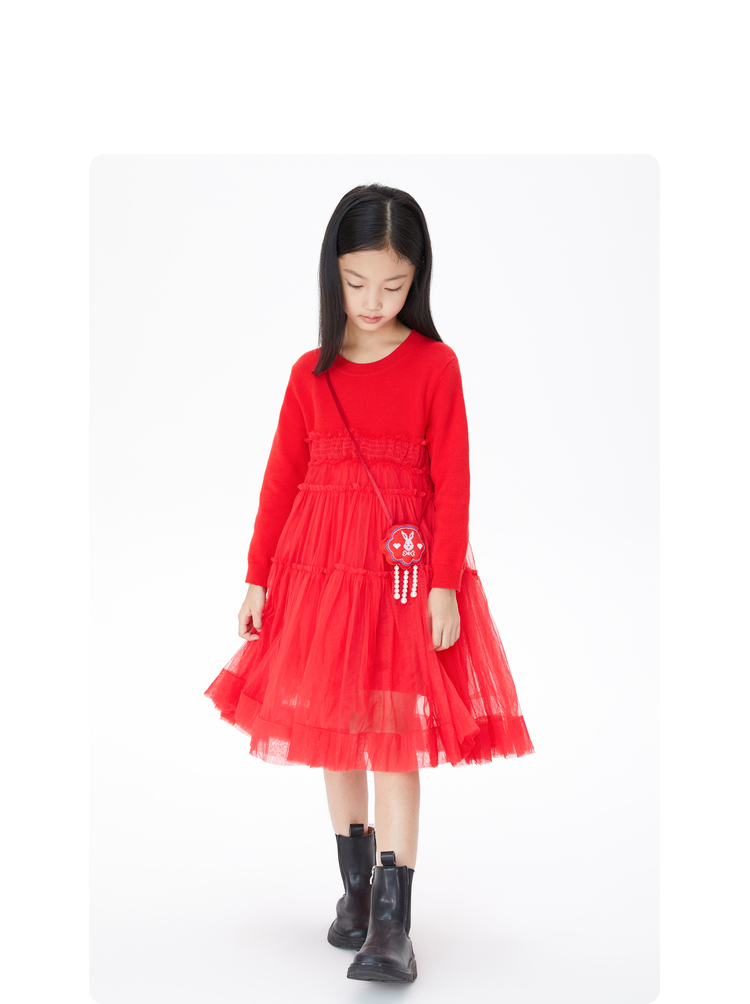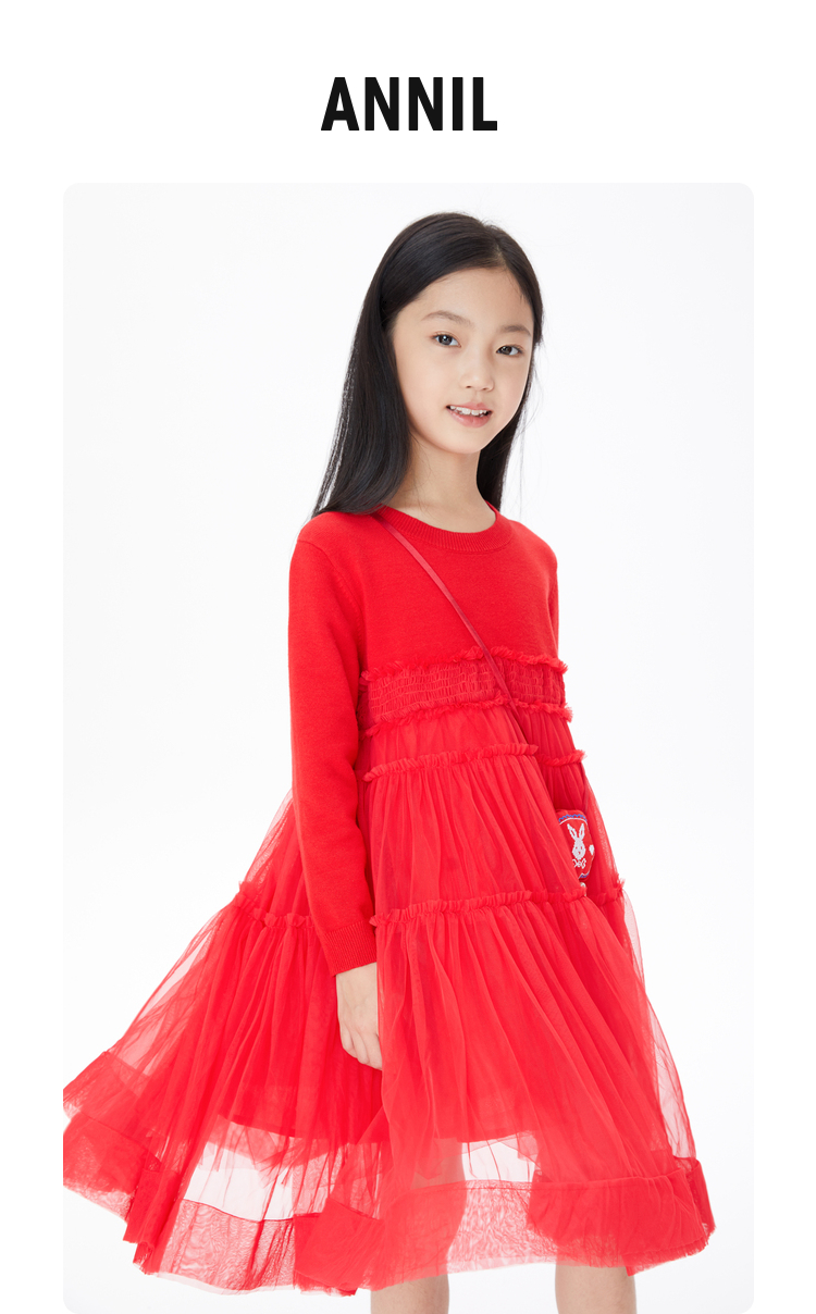 【实体店同款】【新年红】女童连衣裙纱裙秋新款长袖公主裙安奈儿童装AG313548