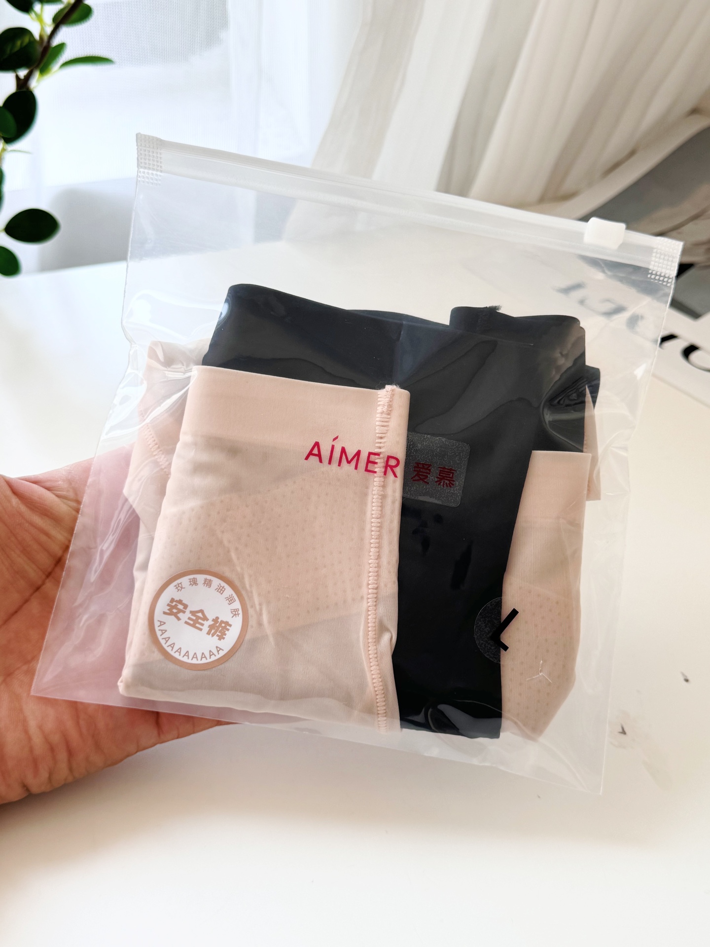 内裤不退换💰39一包(一包2条不同色)艾 爱慕家X型收腹塑身安全裤到货!轻薄 裸感冰肌大弹力面料,轻盈如风 空气裸感零负重 滑爽不油腻 炎夏久穿不闷热 薄透速干 给您全天后的舒适体验。高腰版型设计,腹部X型交叉微压 巧妙收腹塑形 小肚子瞬间隐形 多维度贴合包裹 紧致赘肉 改善假胯宽 展现完美曲线!3D立体桃心全包裹软支撑 贴合臀型 收拢赘肉 塑造蜜桃翘臀 不夹臀 不卡裆!底档10A级抑菌面料 内含玫瑰精油 舒缓滋润 呵护敏感区 告别异味 贴身穿更安心!大货2个色:隐形肤和黑色 ,2个尺码:L 和XL (尺码穿戴说明:L 适合120斤以下妹子,XL 适合120-150斤妹子)