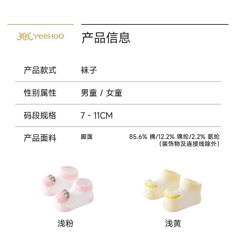【商场同款】英氏儿童袜子男女童春夏可爱短袜新款婴儿公仔袜