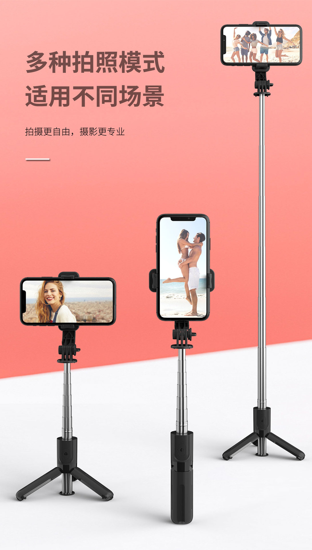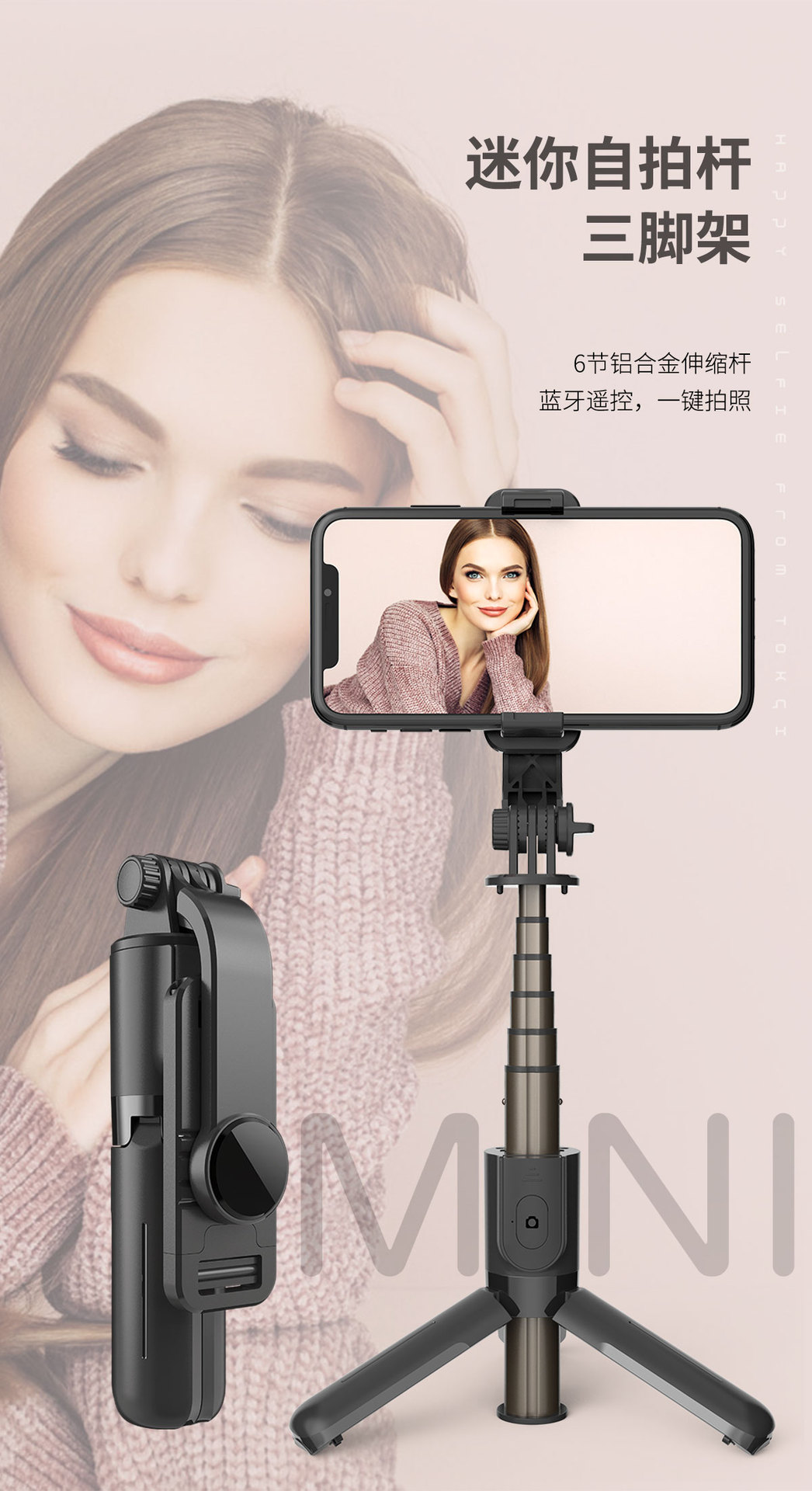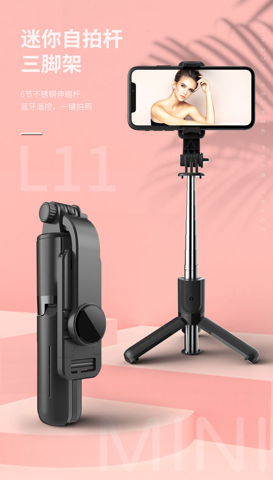 【迷你自拍杆三脚架】新款L10手机自拍杆迷你便携蓝牙遥控铝合金自拍杆多功能直播支架。ry