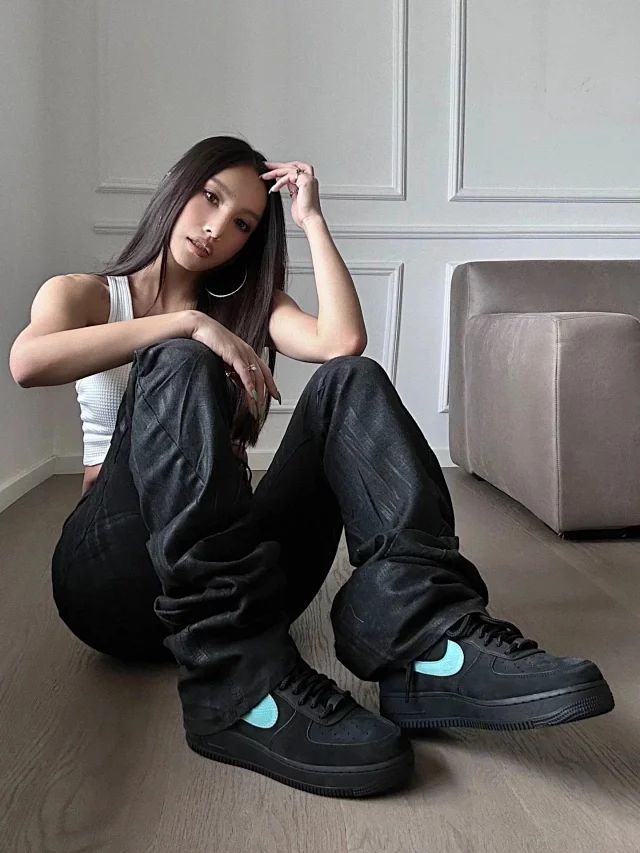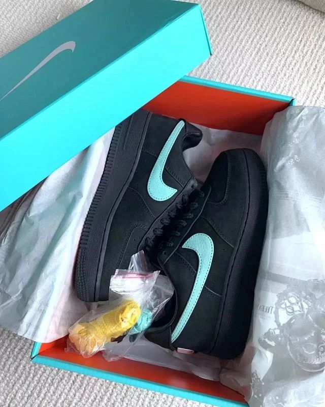 雾面哑光黑 经典蒂芙尼蓝 配上AF1的鞋型 又酷又可爱
