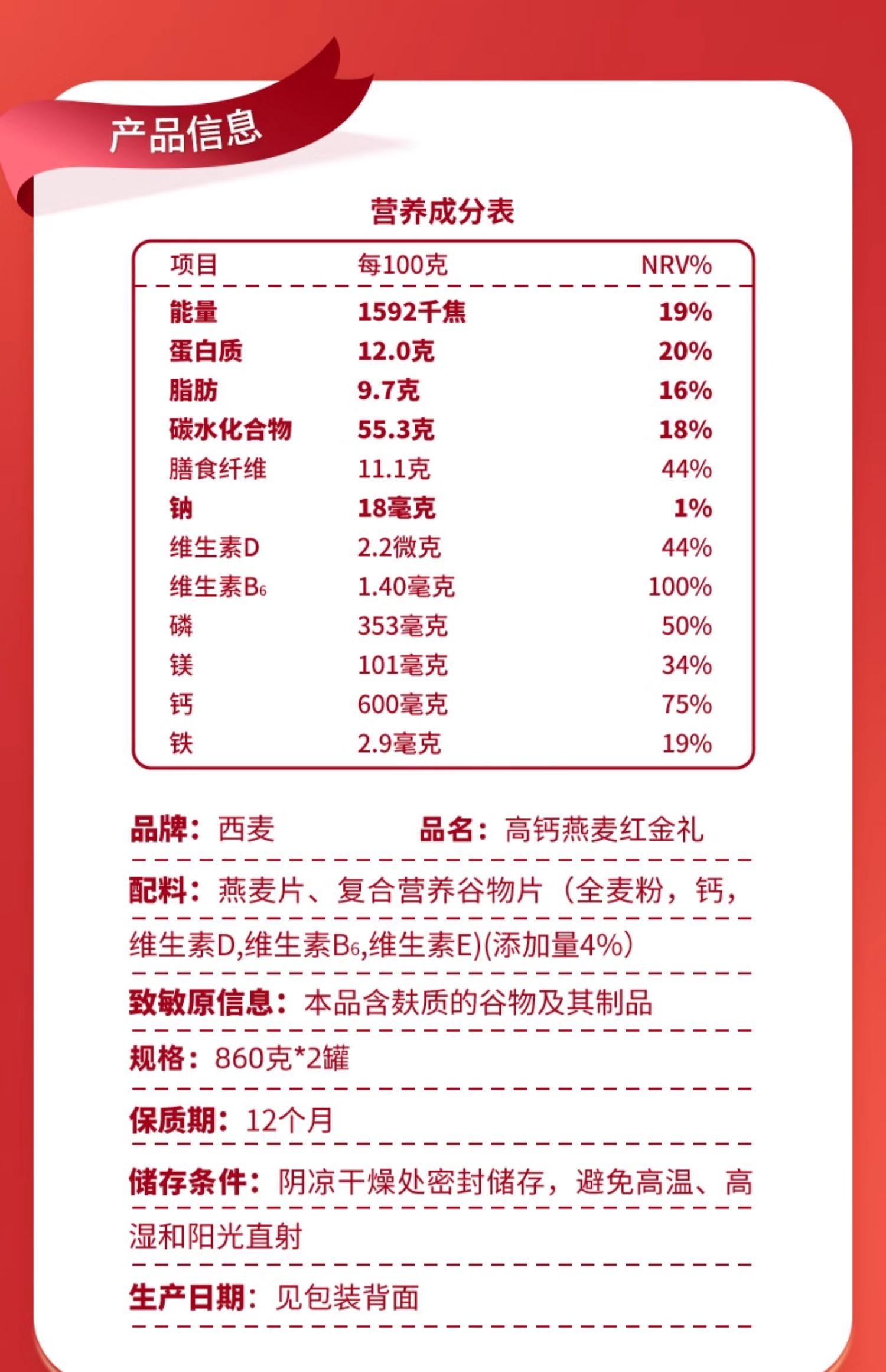 【礼盒】西麦高钙维生素D燕麦片礼盒装X2盒