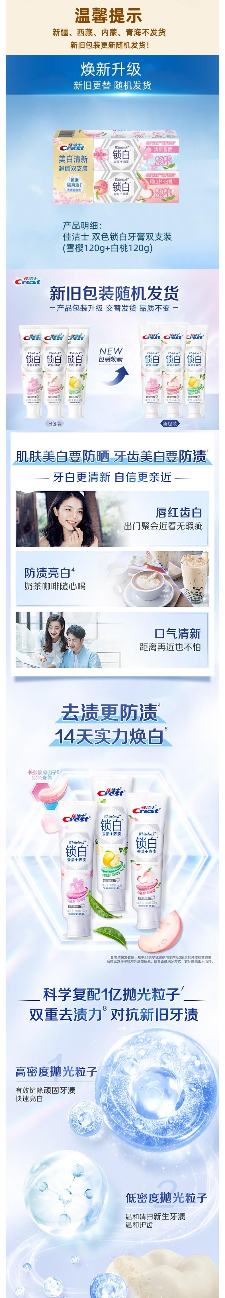 佳洁士 锁白牙膏120g*2支(雪樱+白桃) pg-sb2zyt