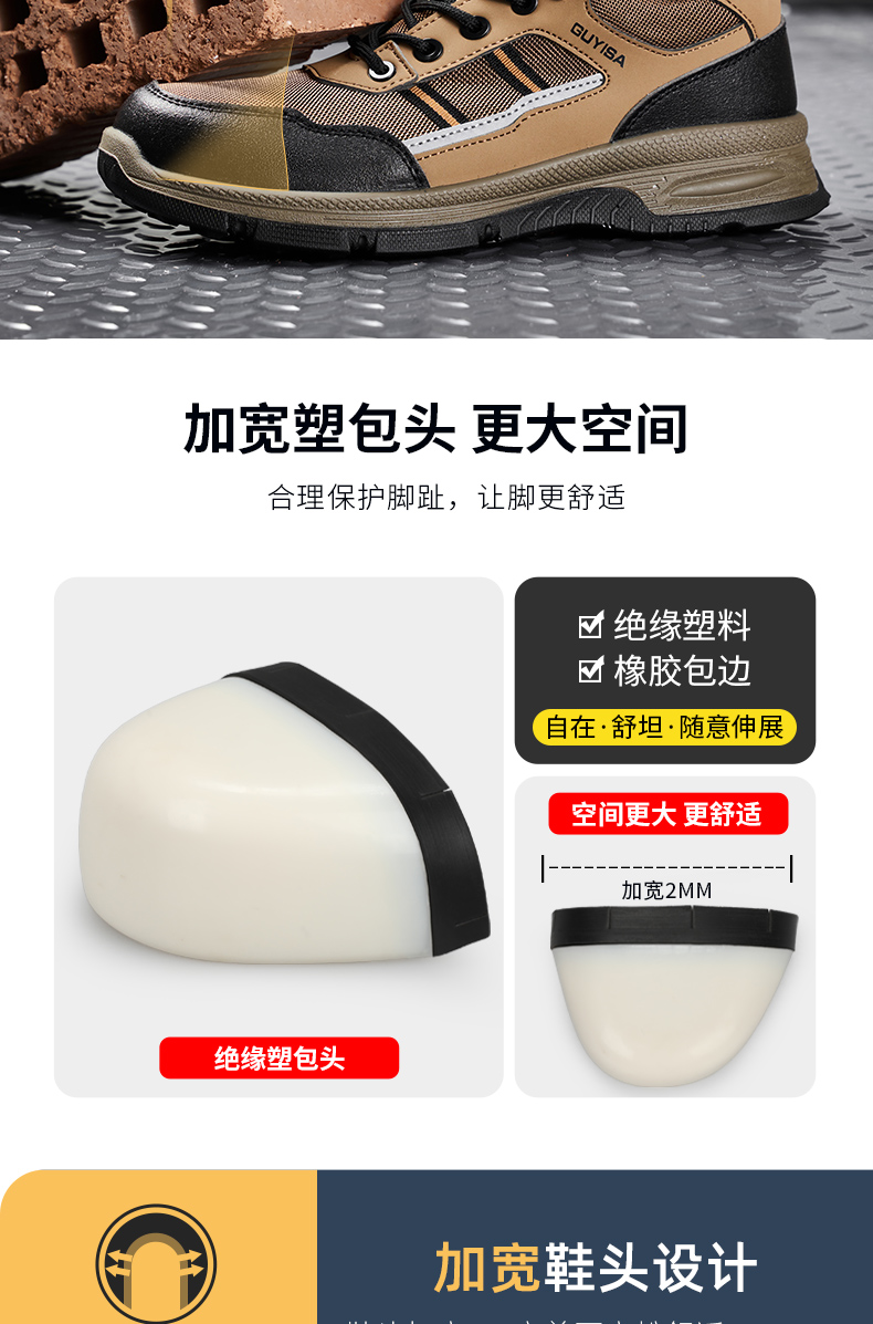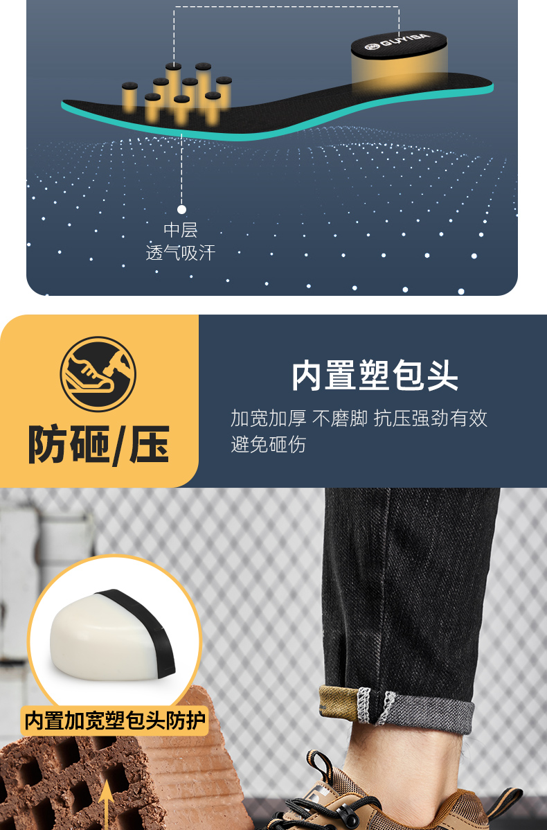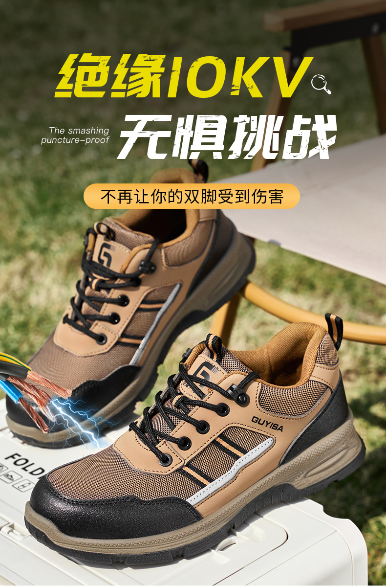 2024新款棕色绝缘鞋透气男士防砸防刺劳保鞋实心底耐磨