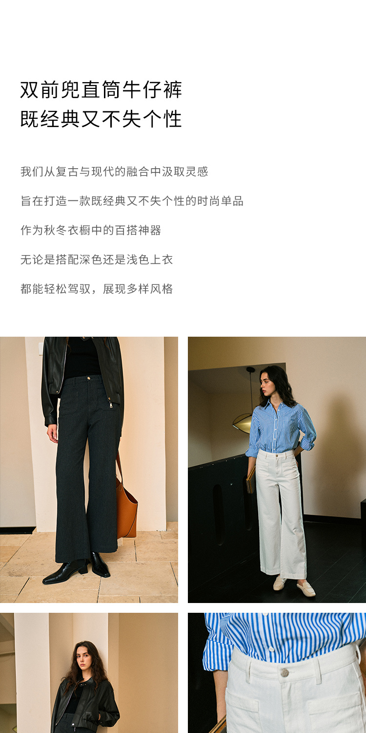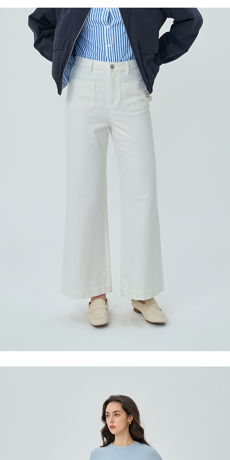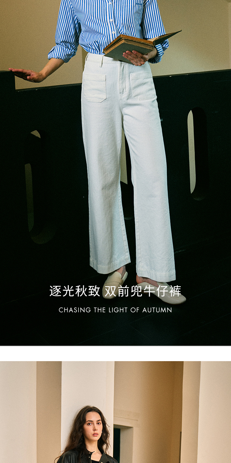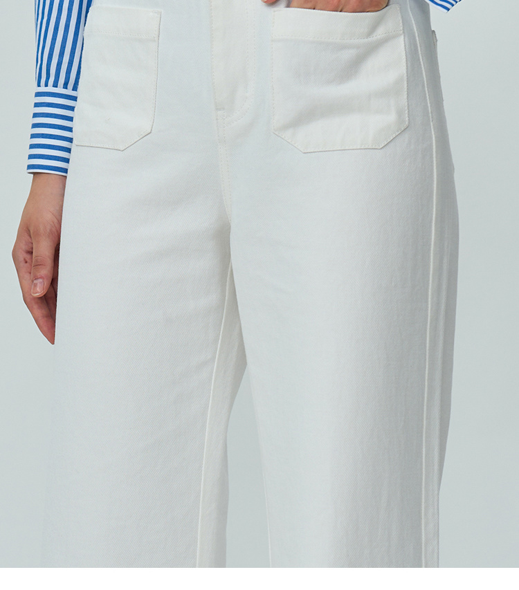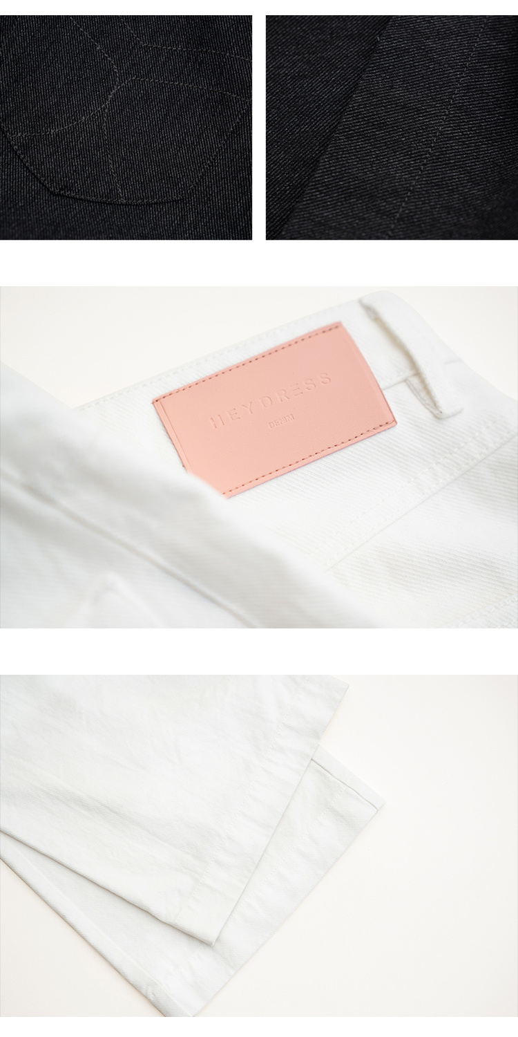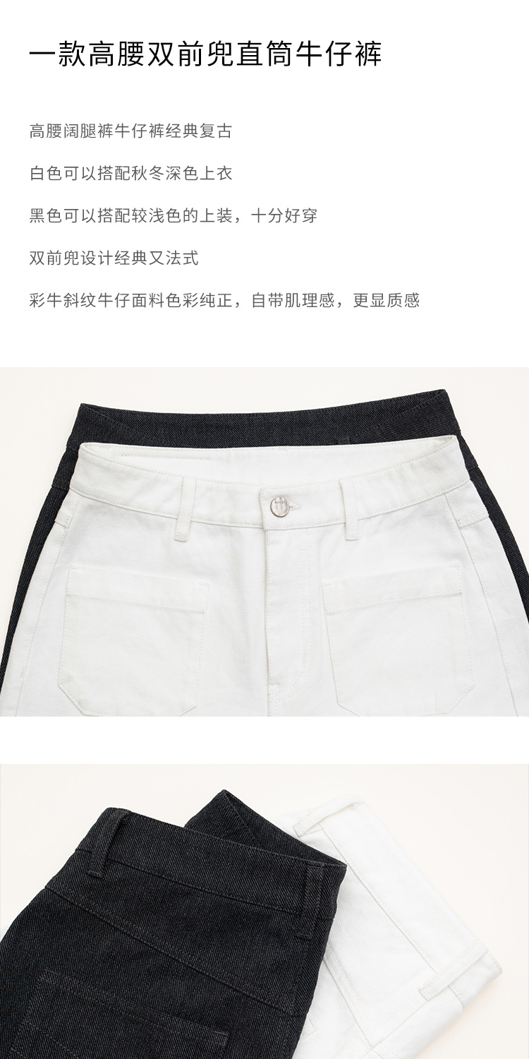 Heydress双前兜高腰牛仔裤女秋季法式白色阔腿裤纯棉宽松百搭裤子