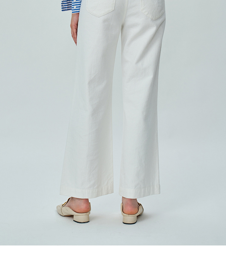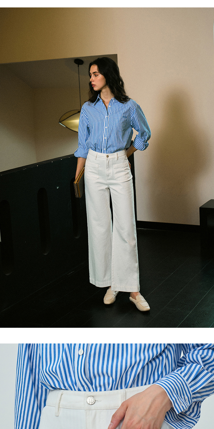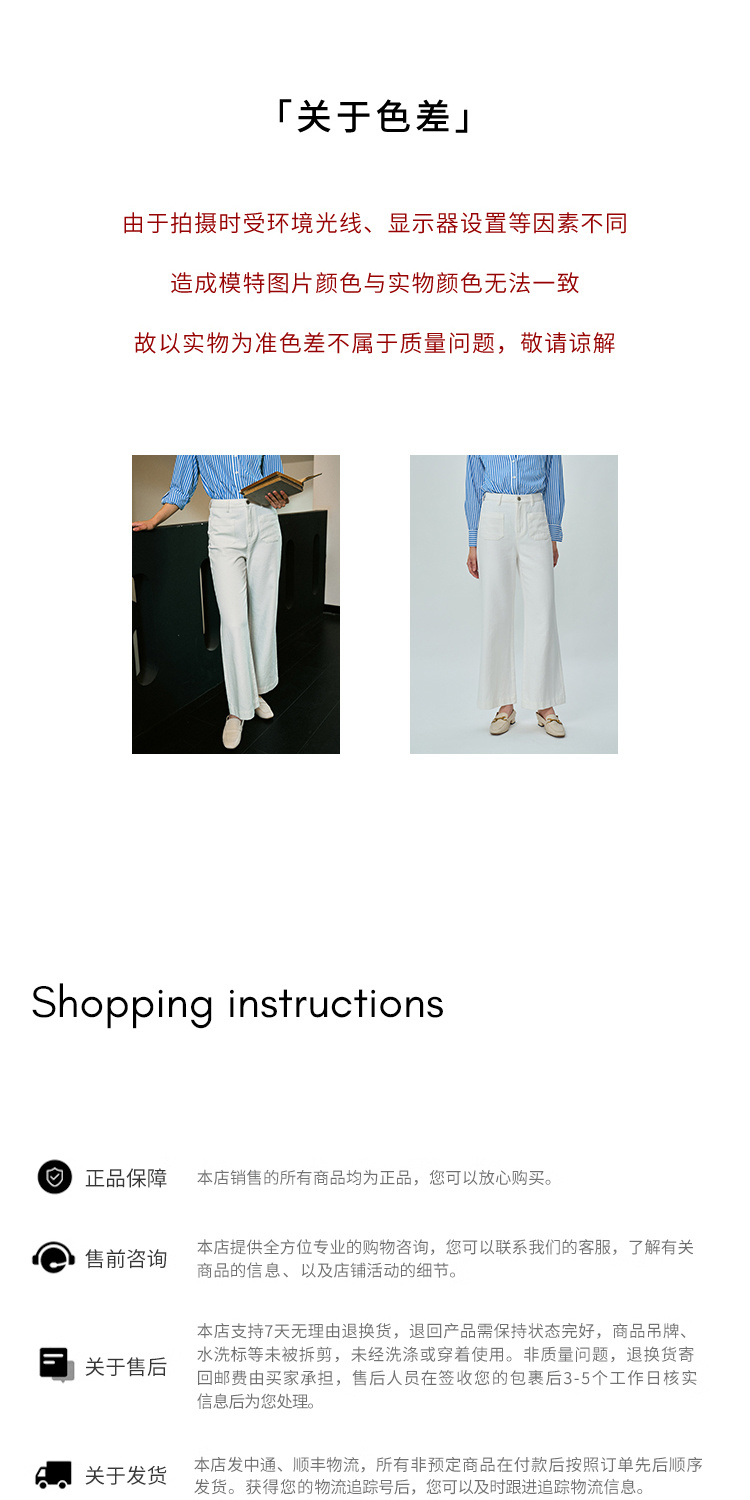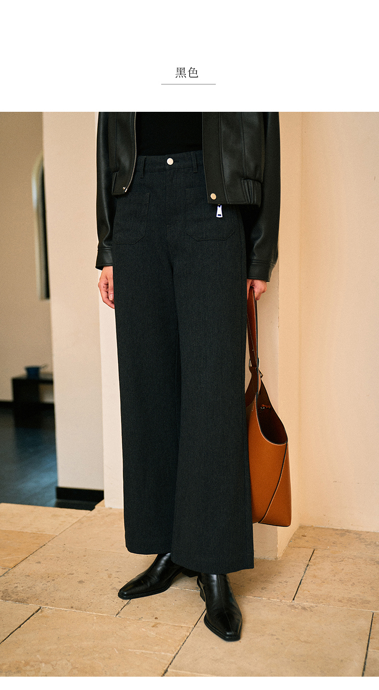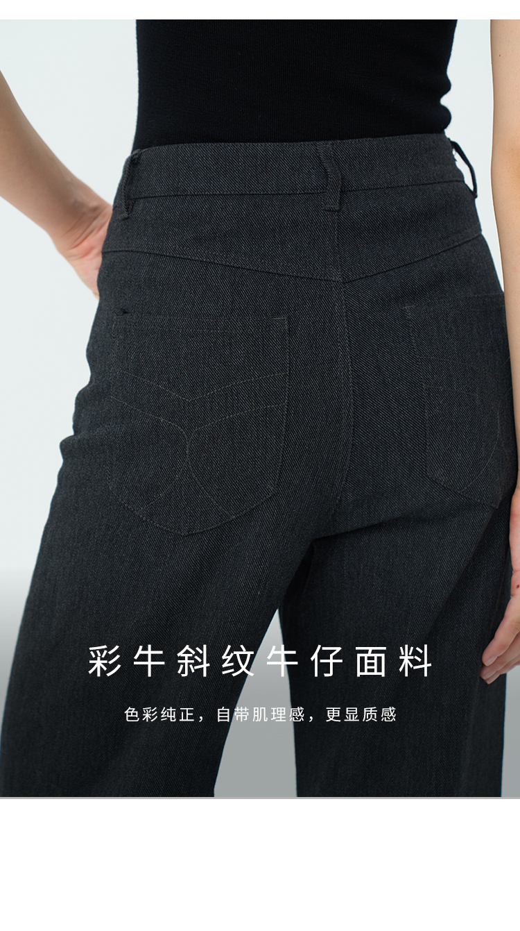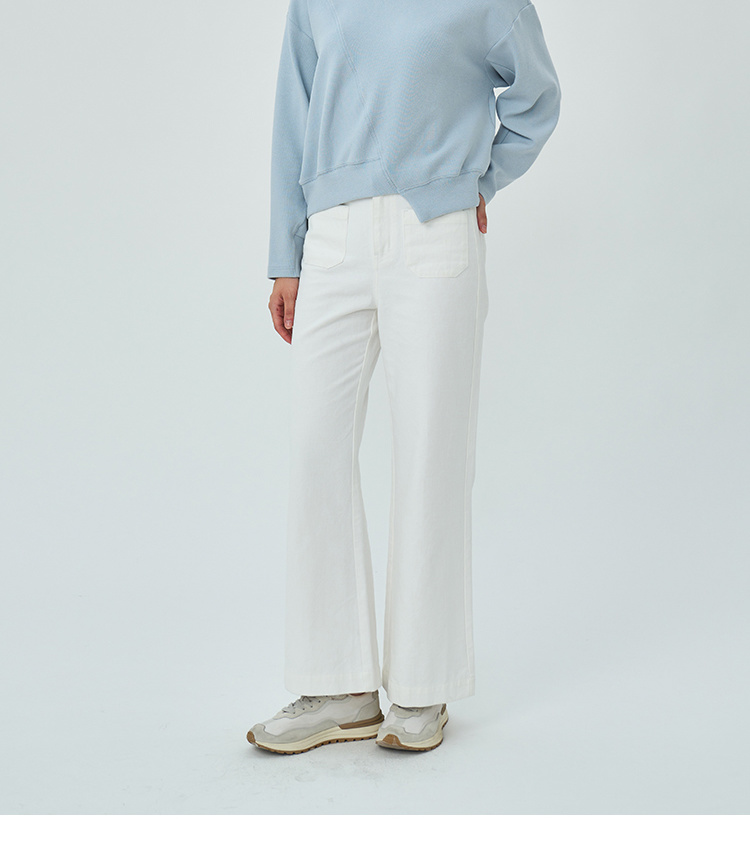 Heydress双前兜高腰牛仔裤女秋季法式白色阔腿裤纯棉宽松百搭裤子