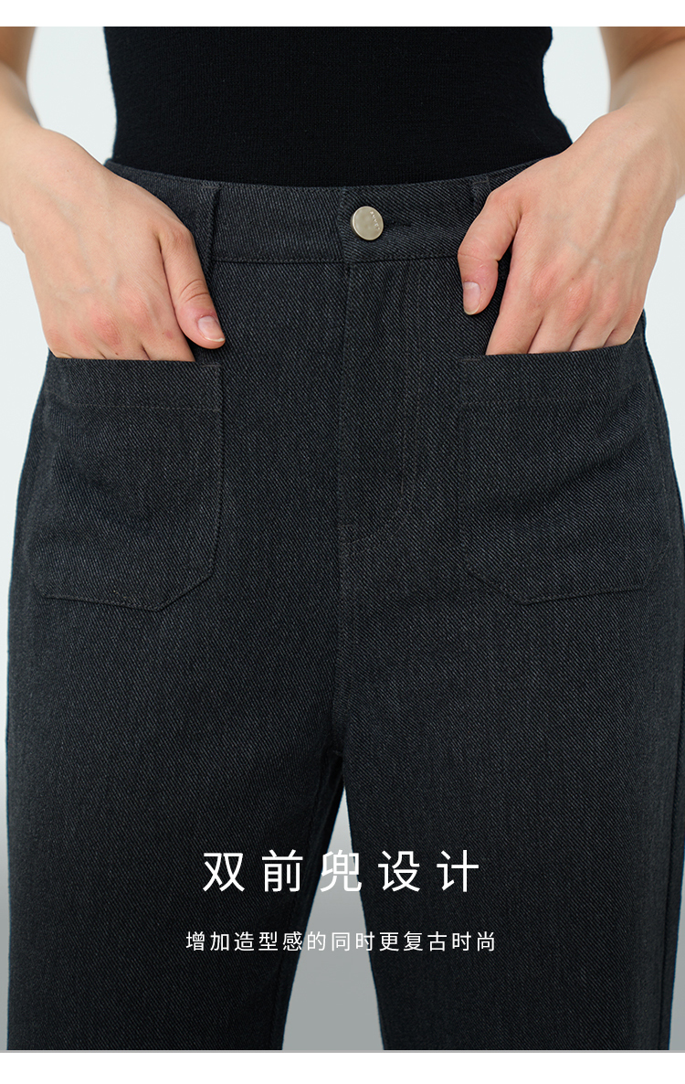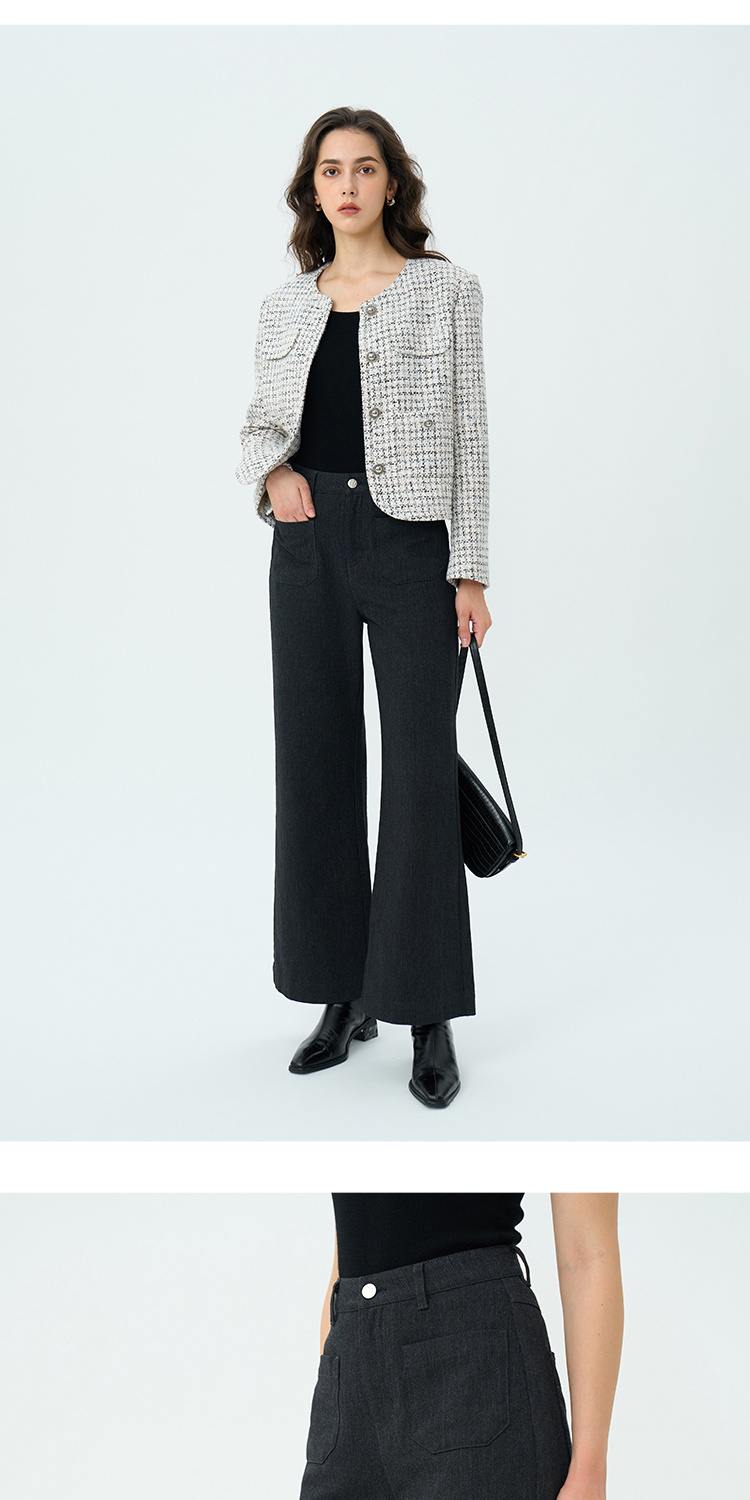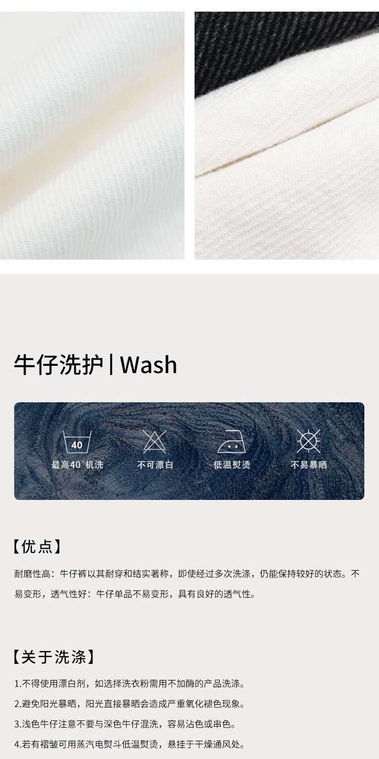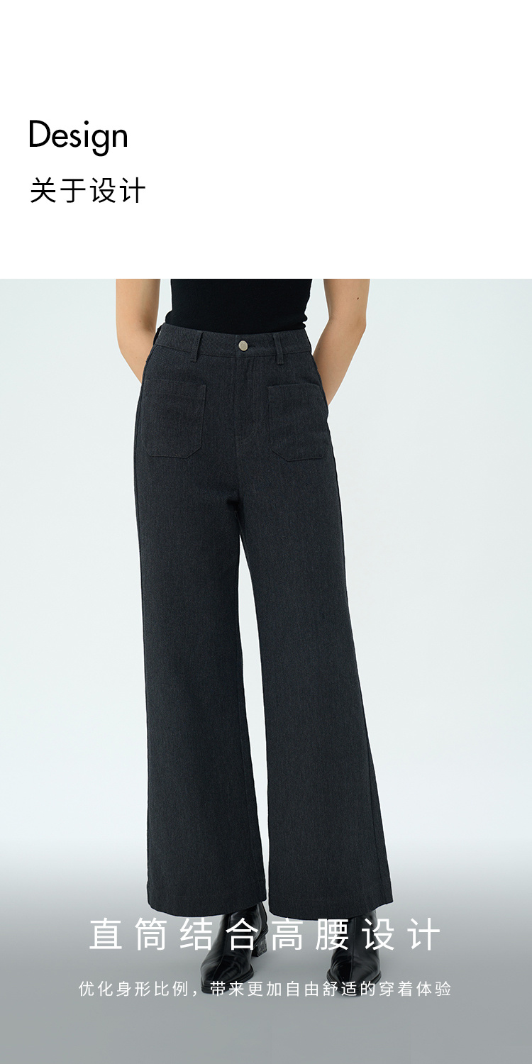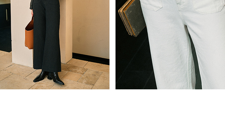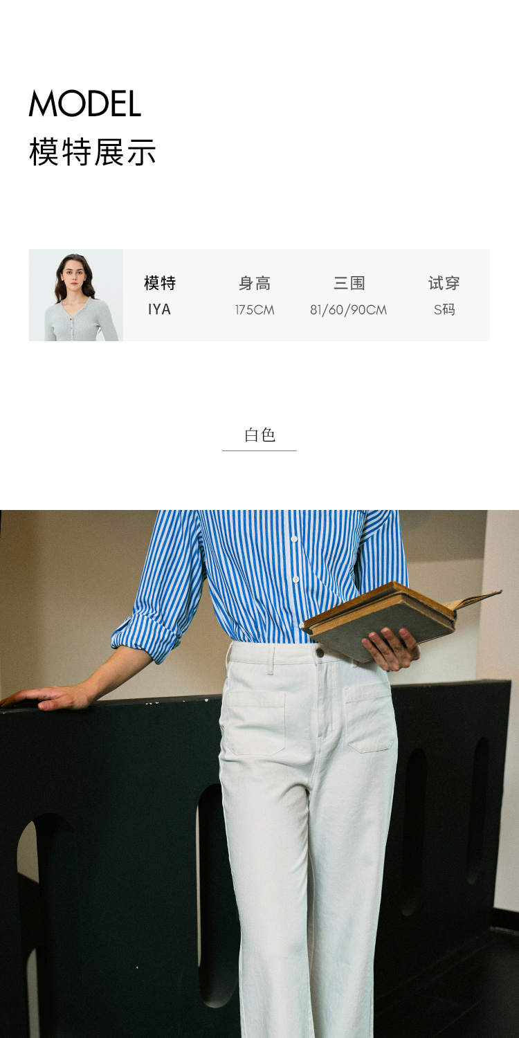 Heydress双前兜高腰牛仔裤女秋季法式白色阔腿裤纯棉宽松百搭裤子