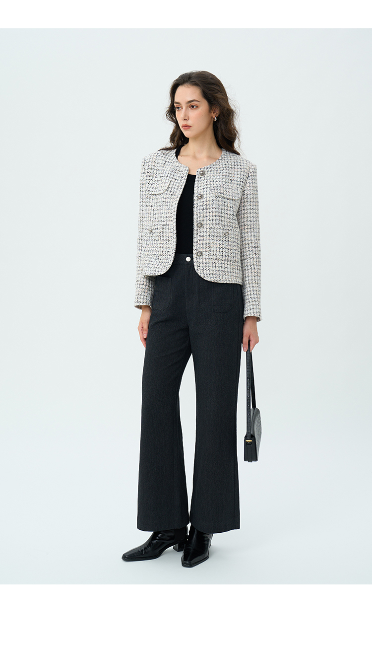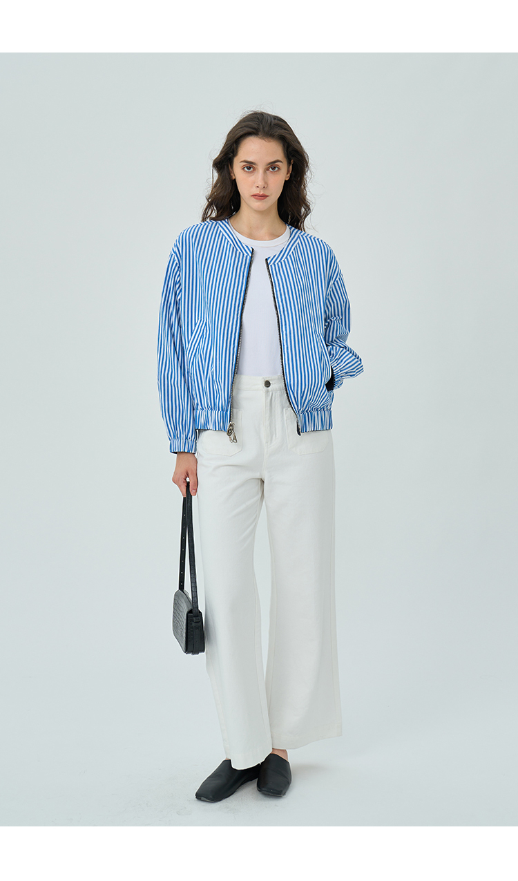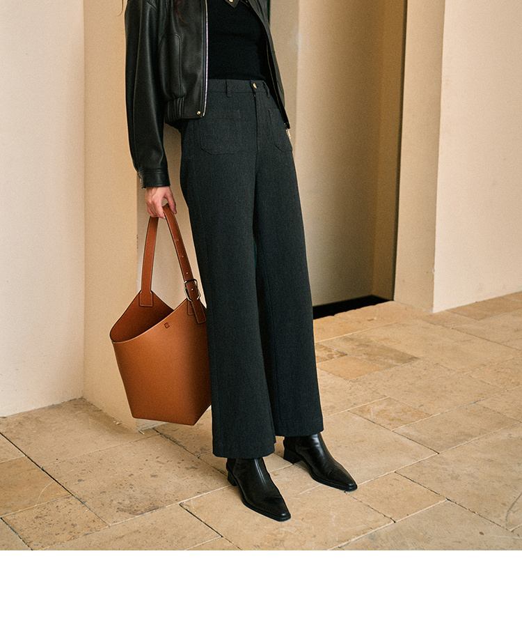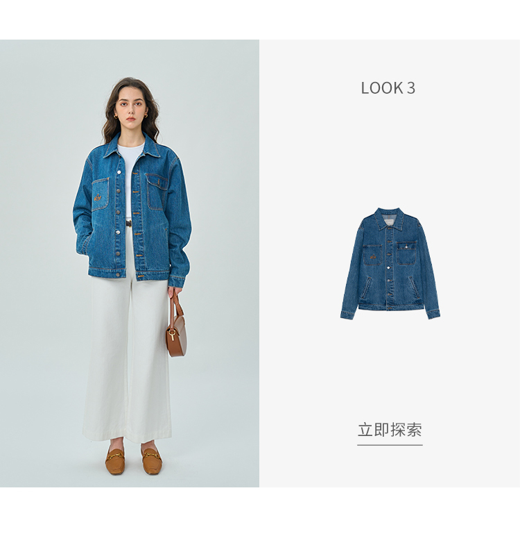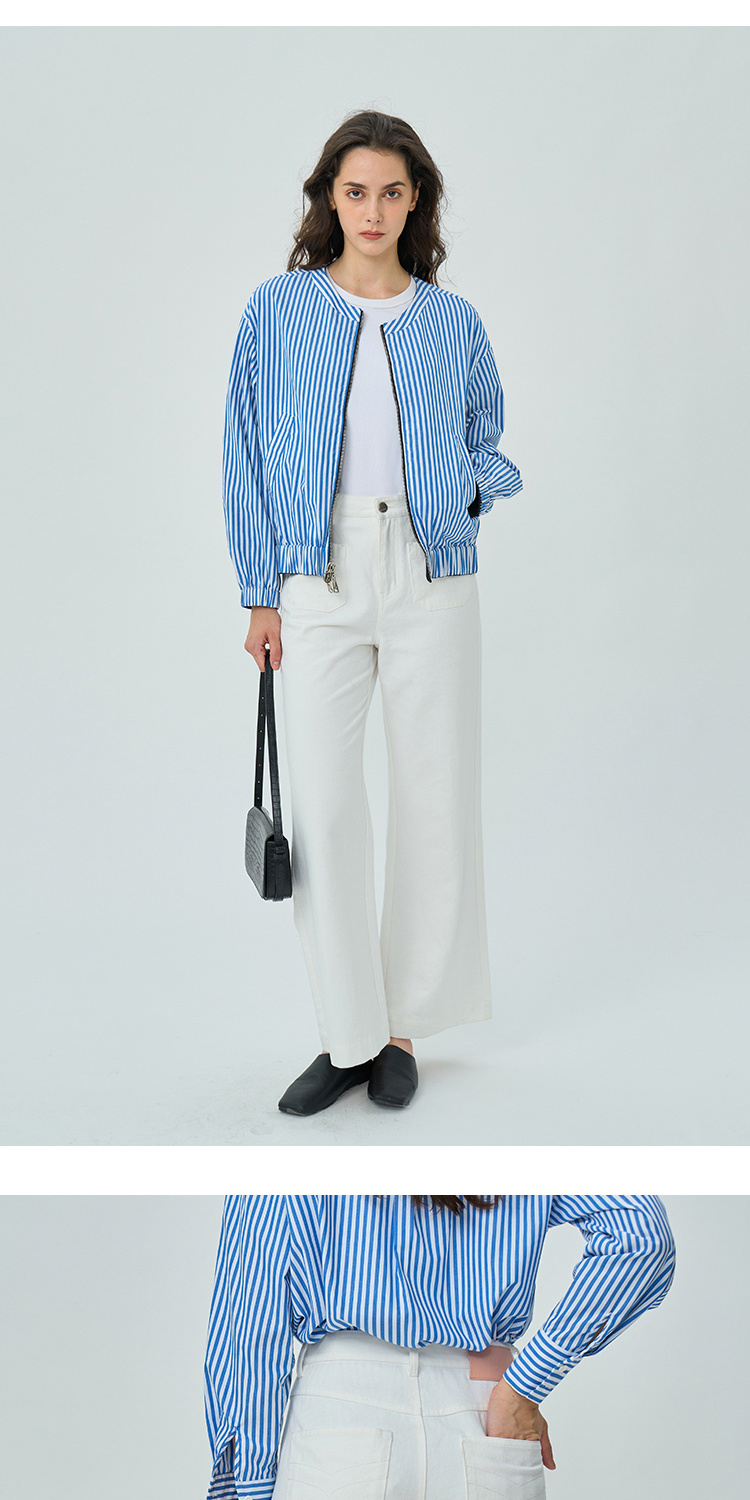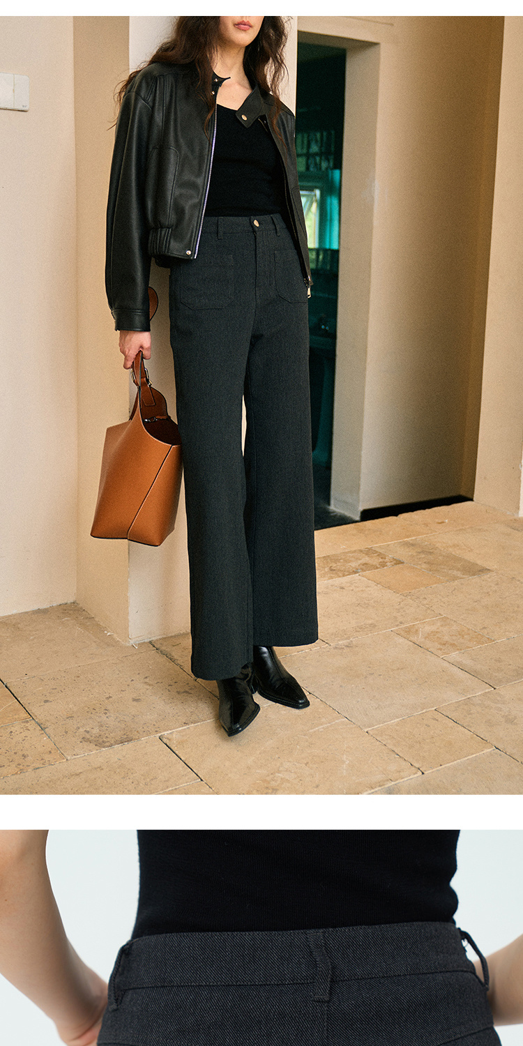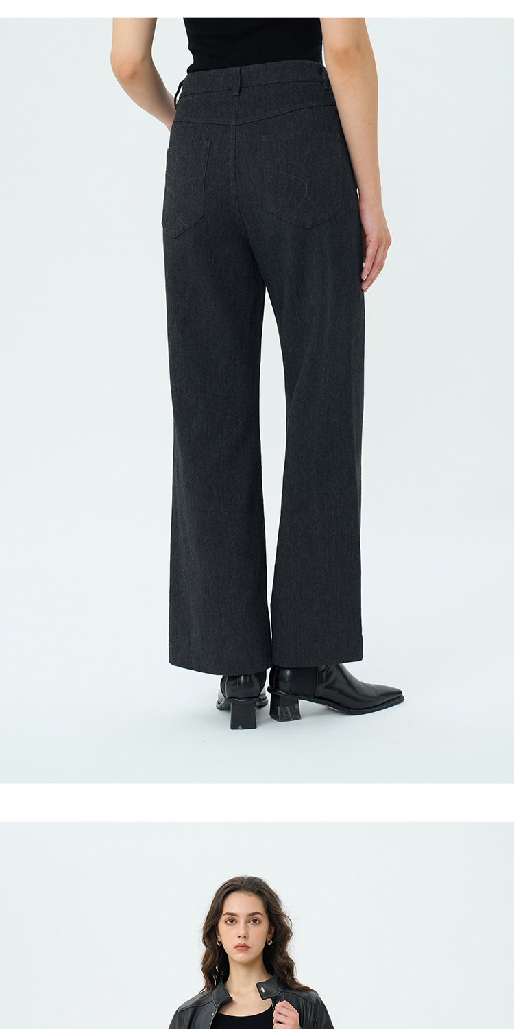 Heydress双前兜高腰牛仔裤女秋季法式白色阔腿裤纯棉宽松百搭裤子